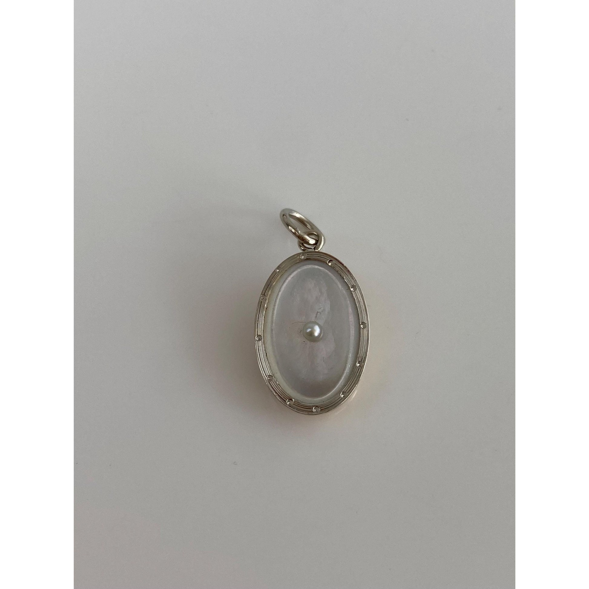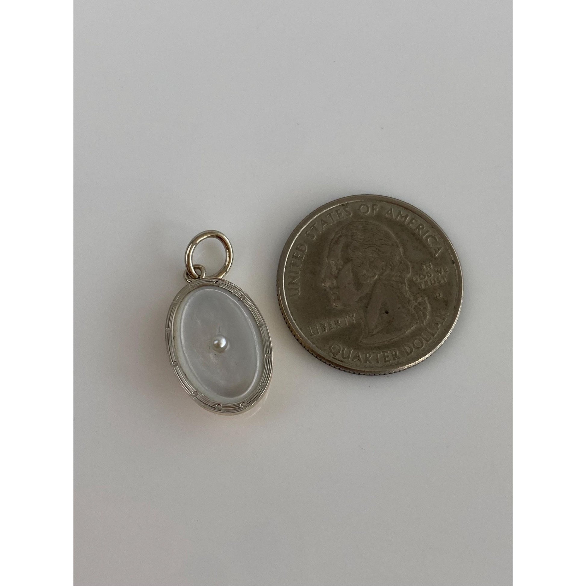 Vintage 14k White & Yellow Gold Seed Pearl MOP Oval Cufflink Conversion Charm