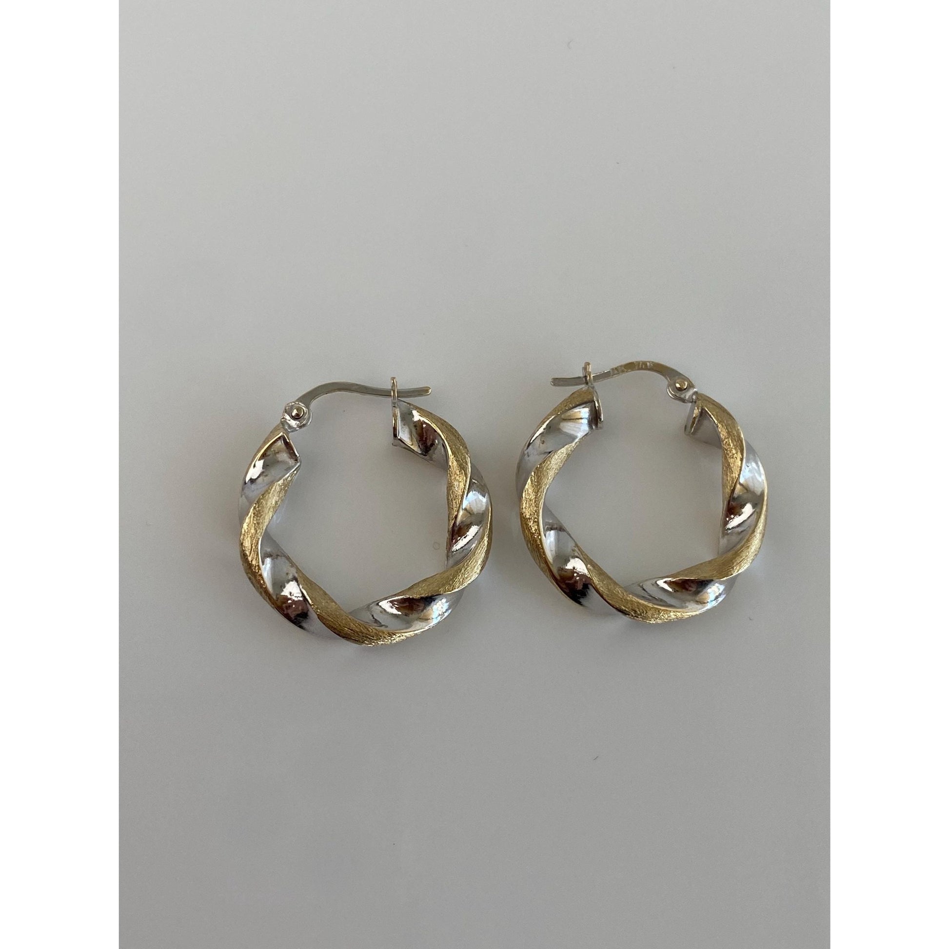 Vintage 14k White & Yellow Gold Twist Hoop Earrings