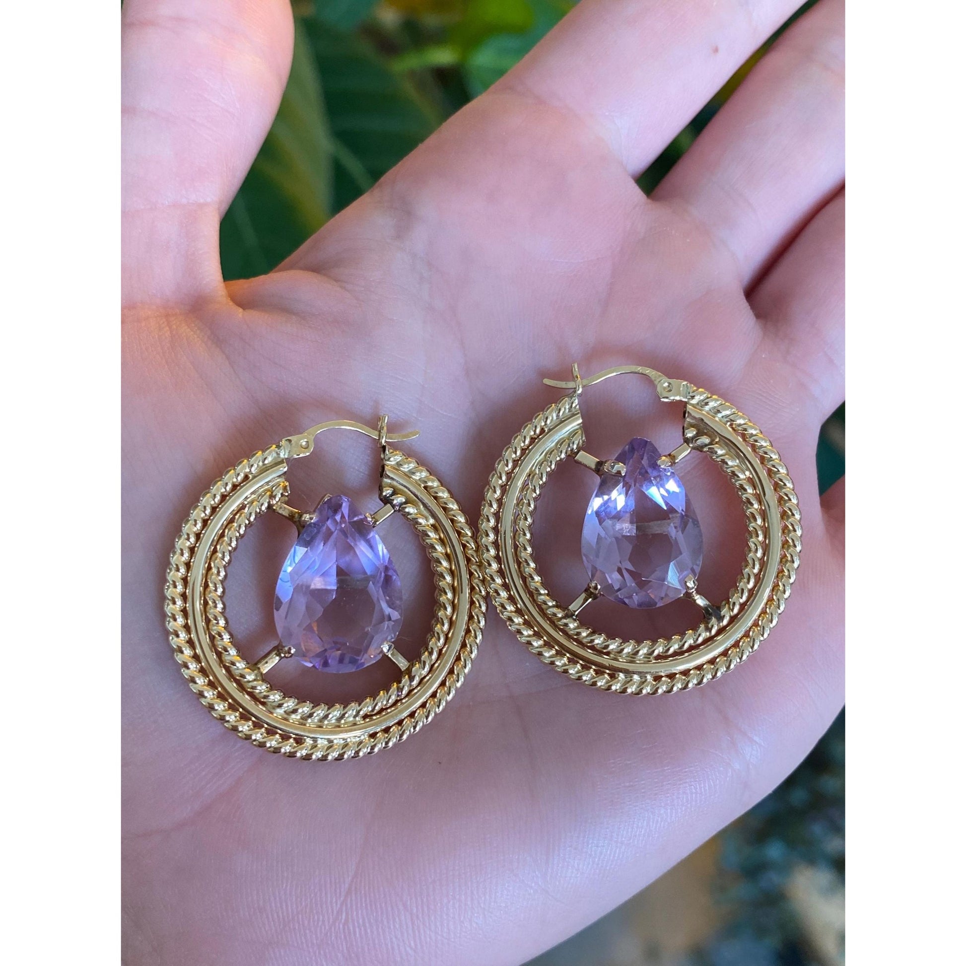 Vintage 14k Yellow Gold Amethyst Hoop Earrings