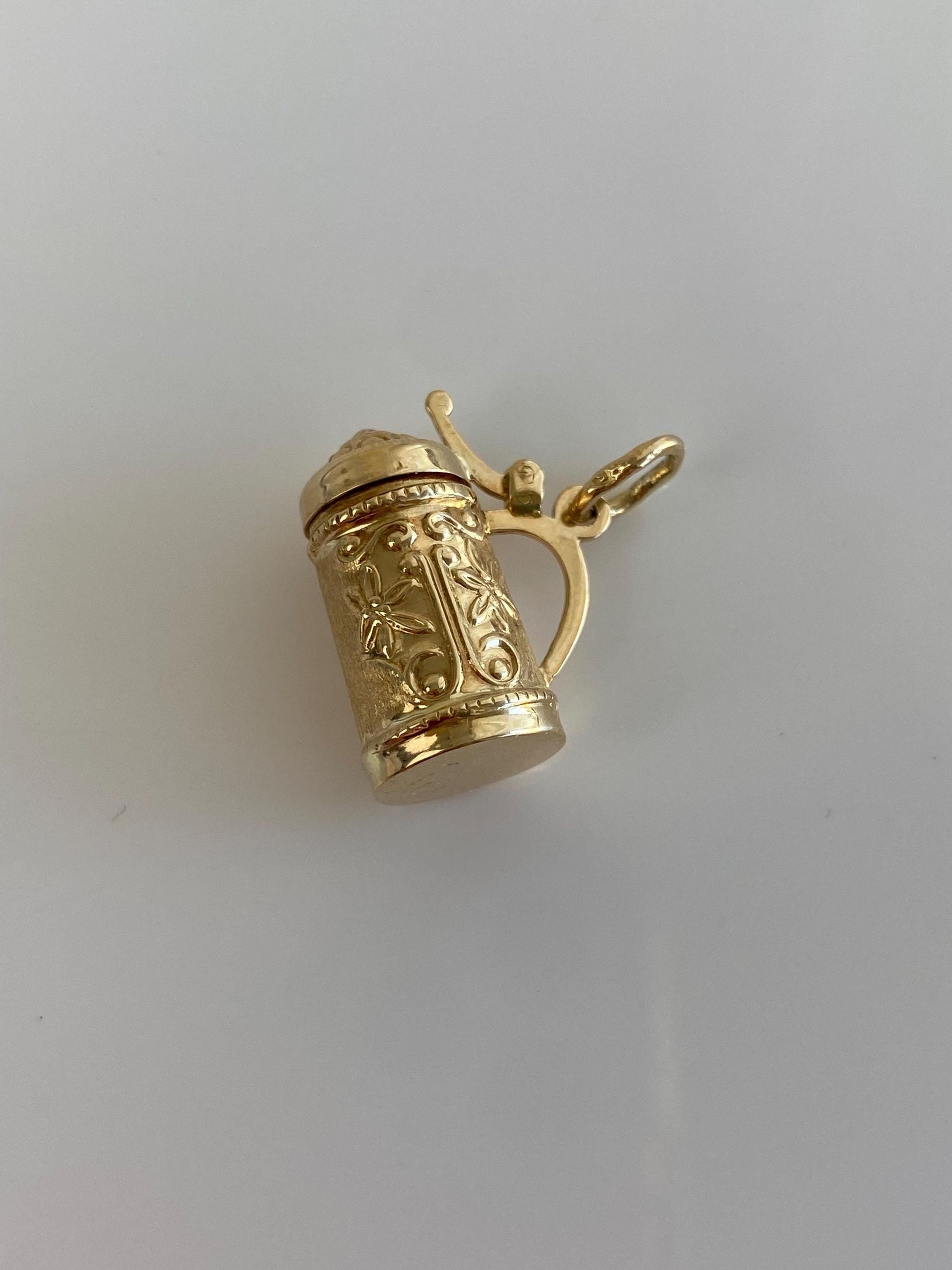 Vintage 14k Yellow Gold Articulated Floral Beer Stein Charm