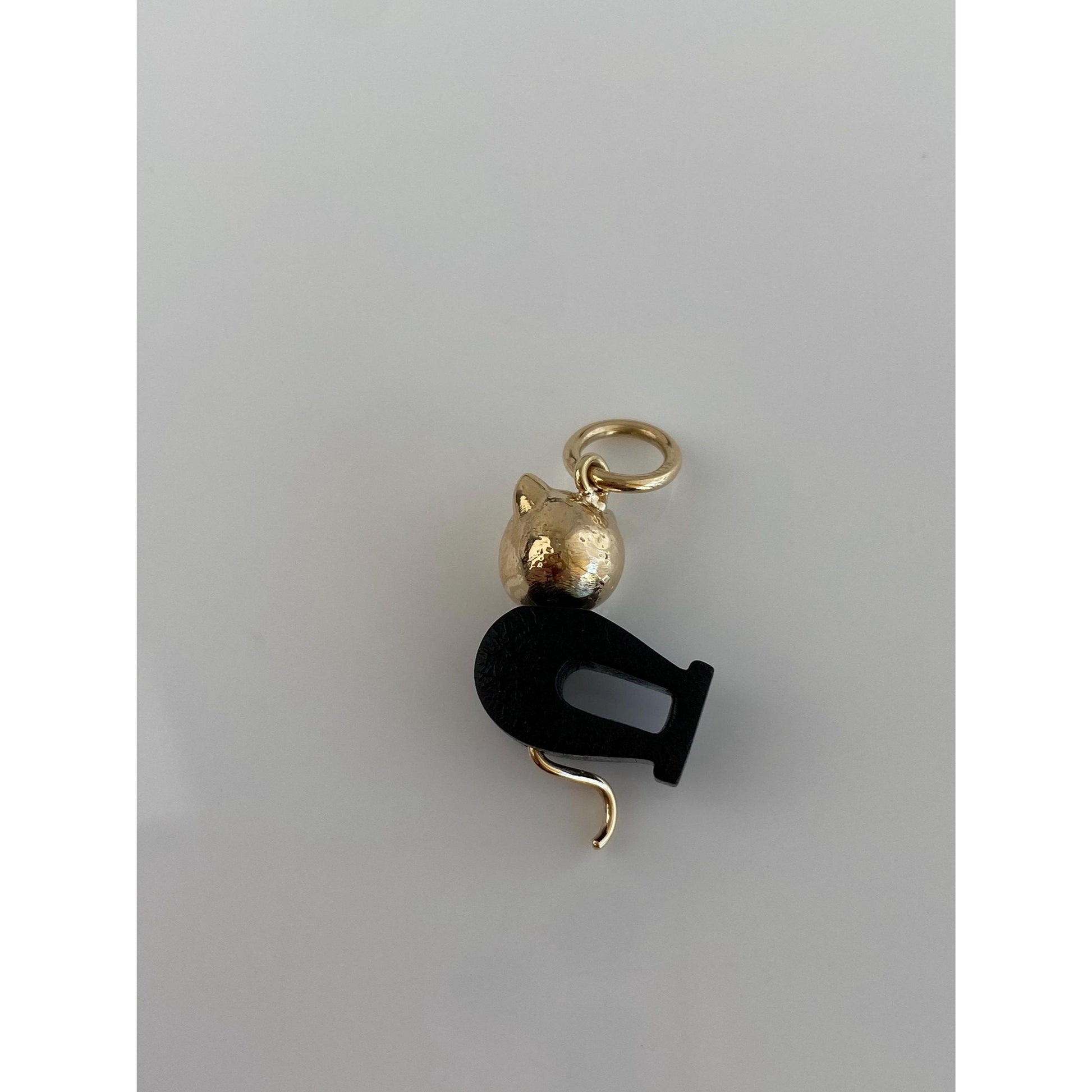 Vintage 14k Yellow Gold Black Resin Cat Charm