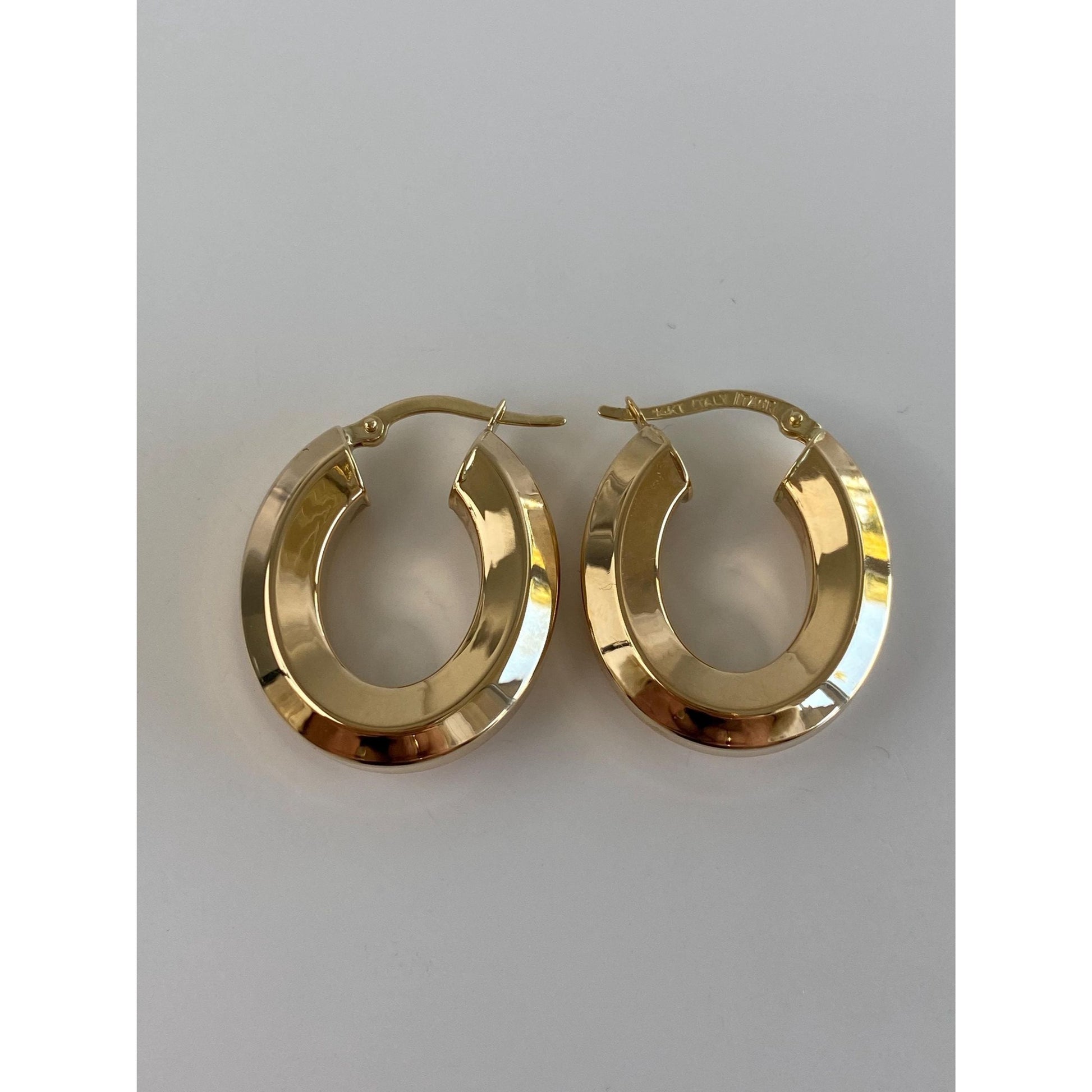 Vintage 14k Yellow Gold Chunky Oval Hoop Earrings