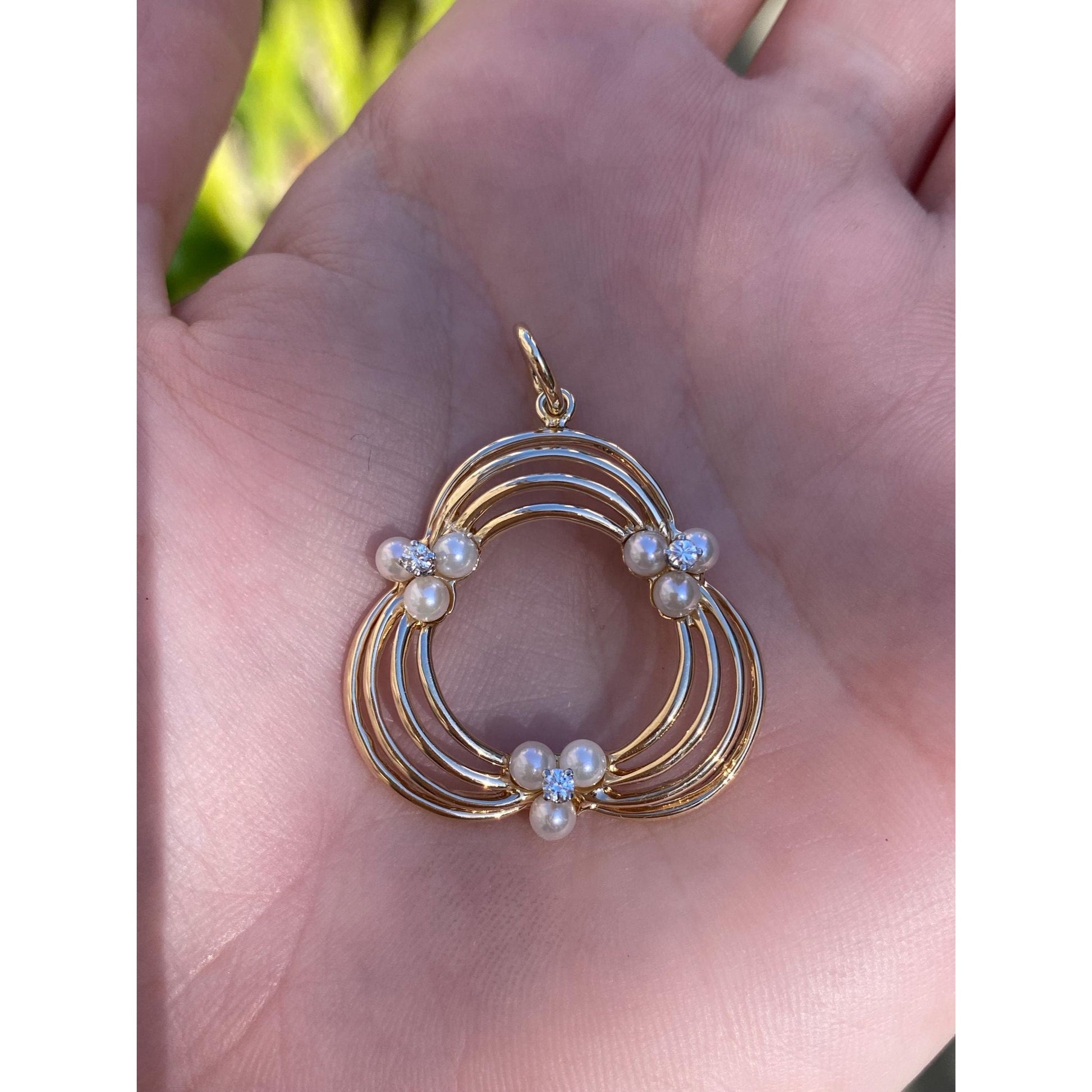 Vintage 14k Yellow Gold Clear Sapphire Pearl Charm