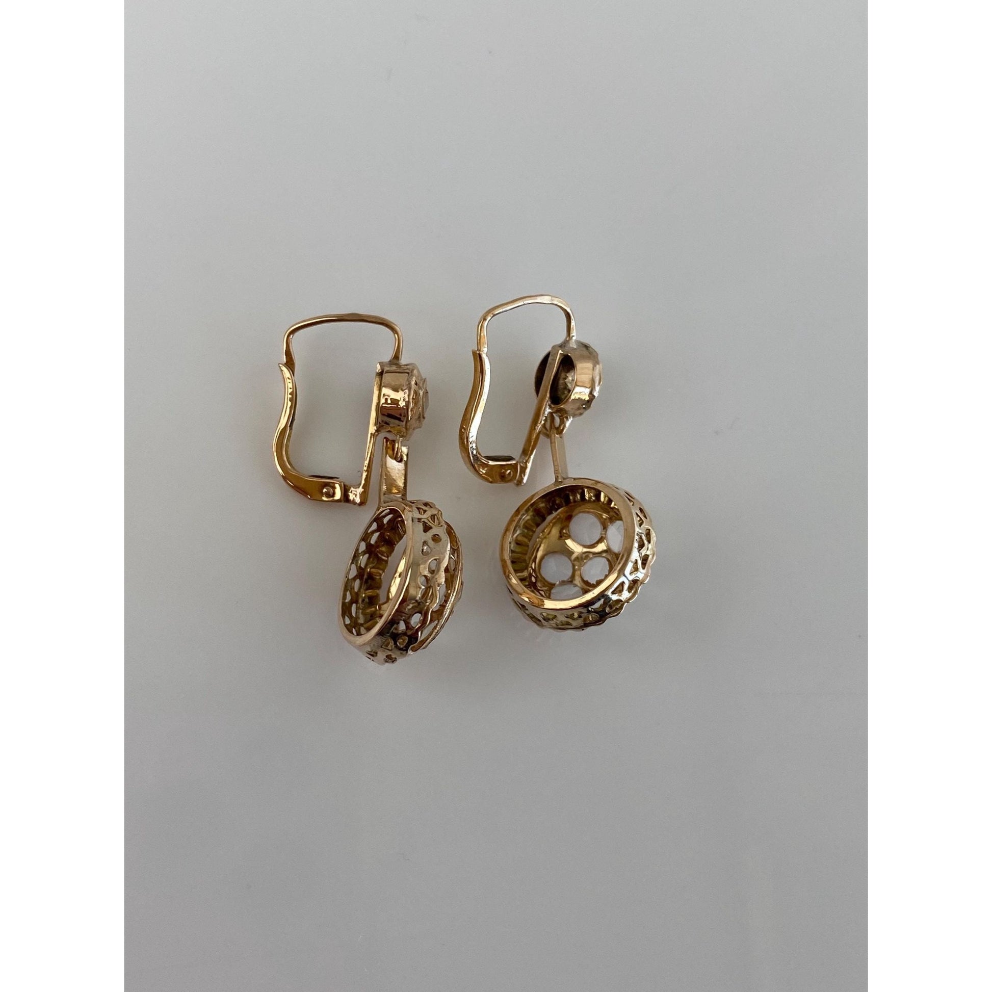 Vintage 14k Yellow Gold Clear Spinel Dangle Earrings