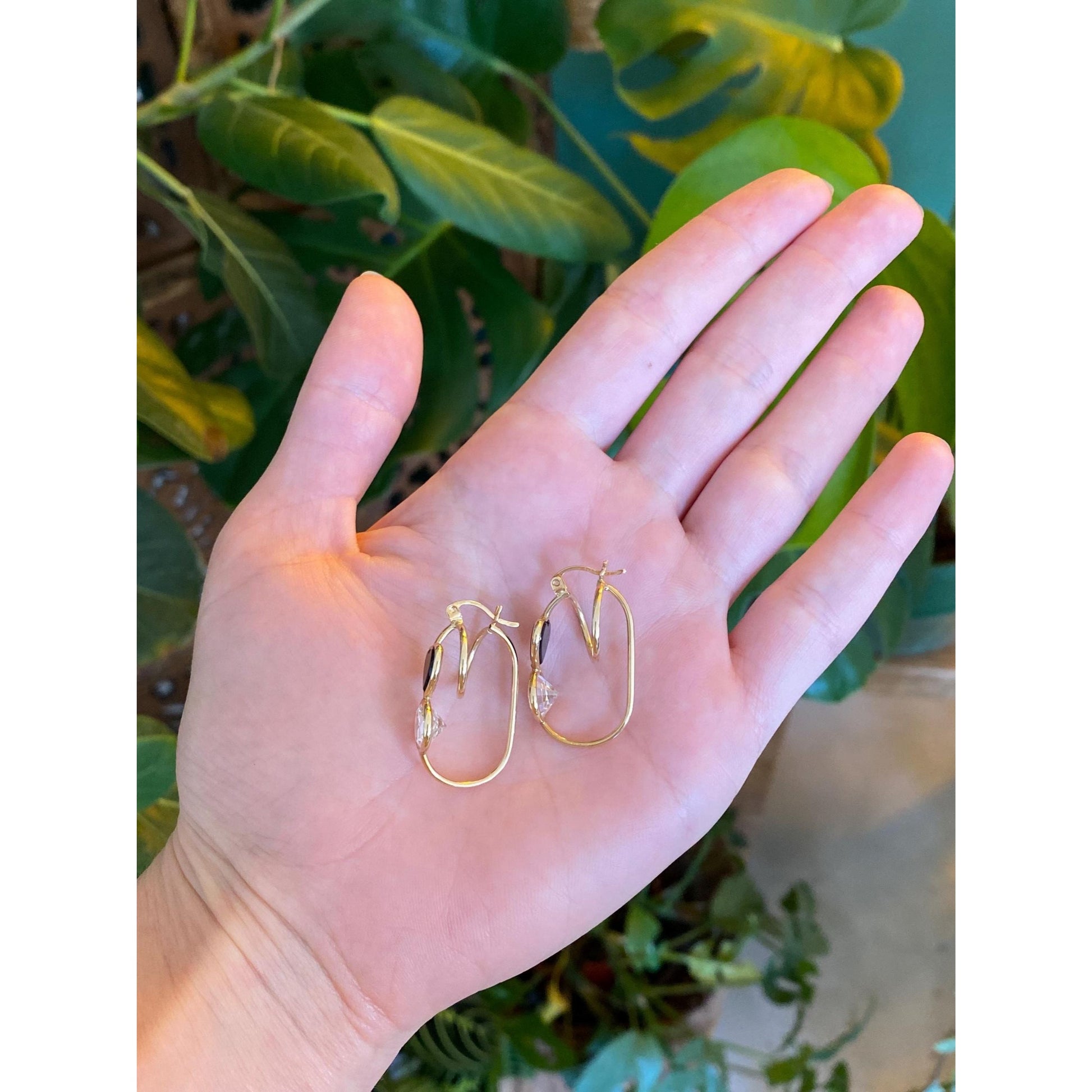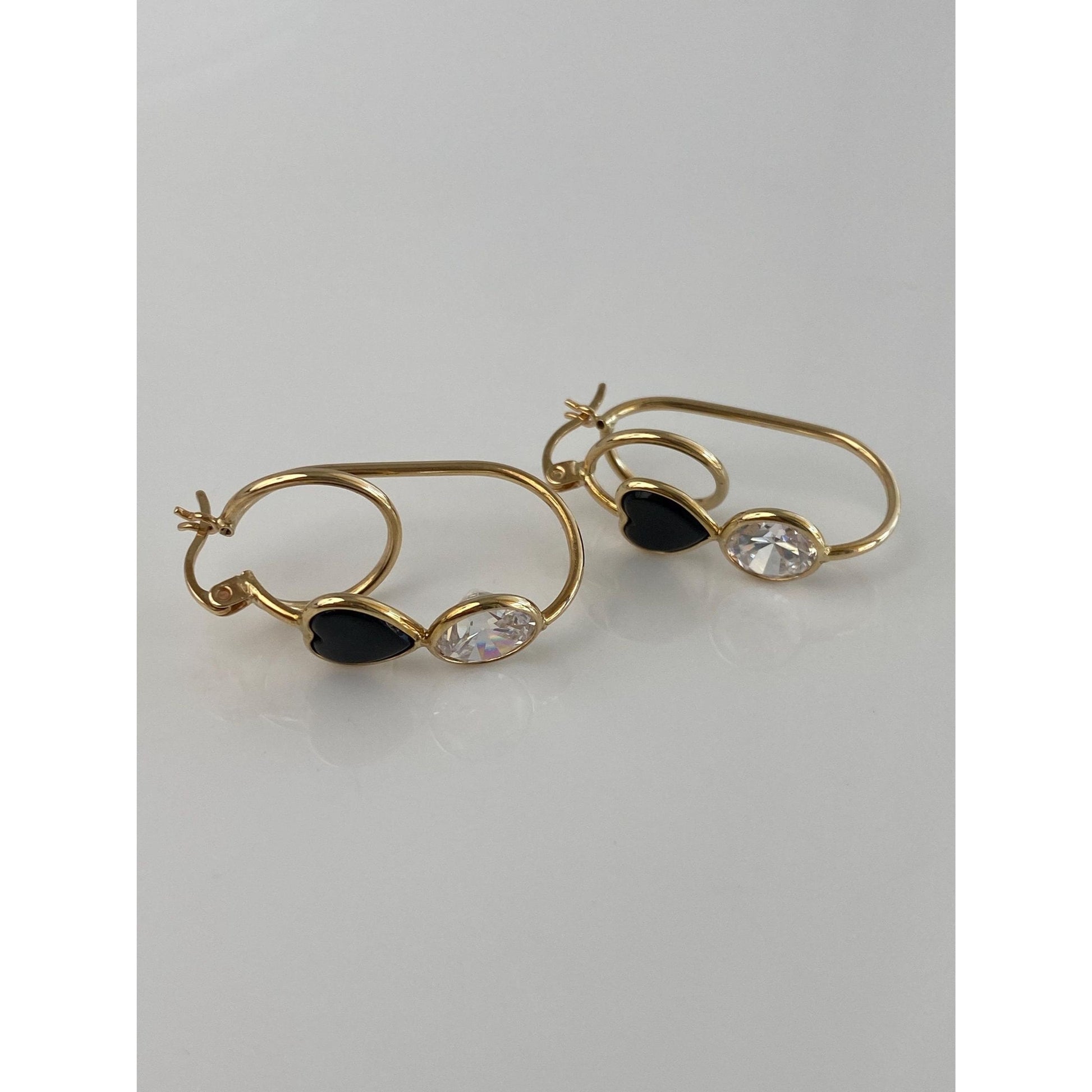 Vintage 14k Yellow Gold Cubic Zirconia Black Onyx Heart Hoop Earrings