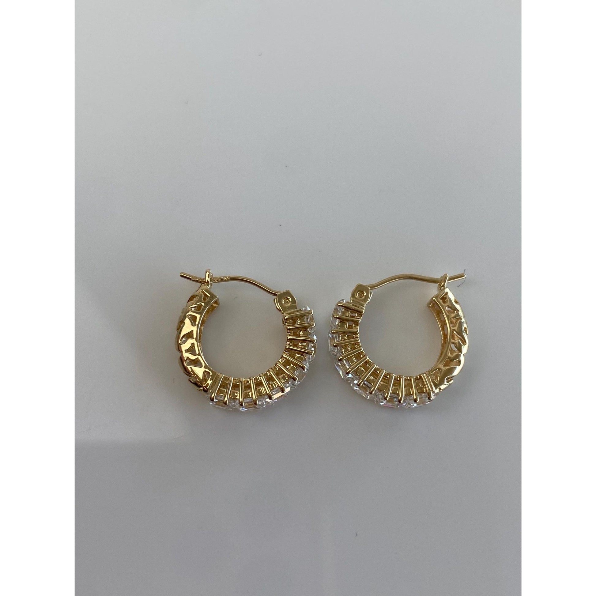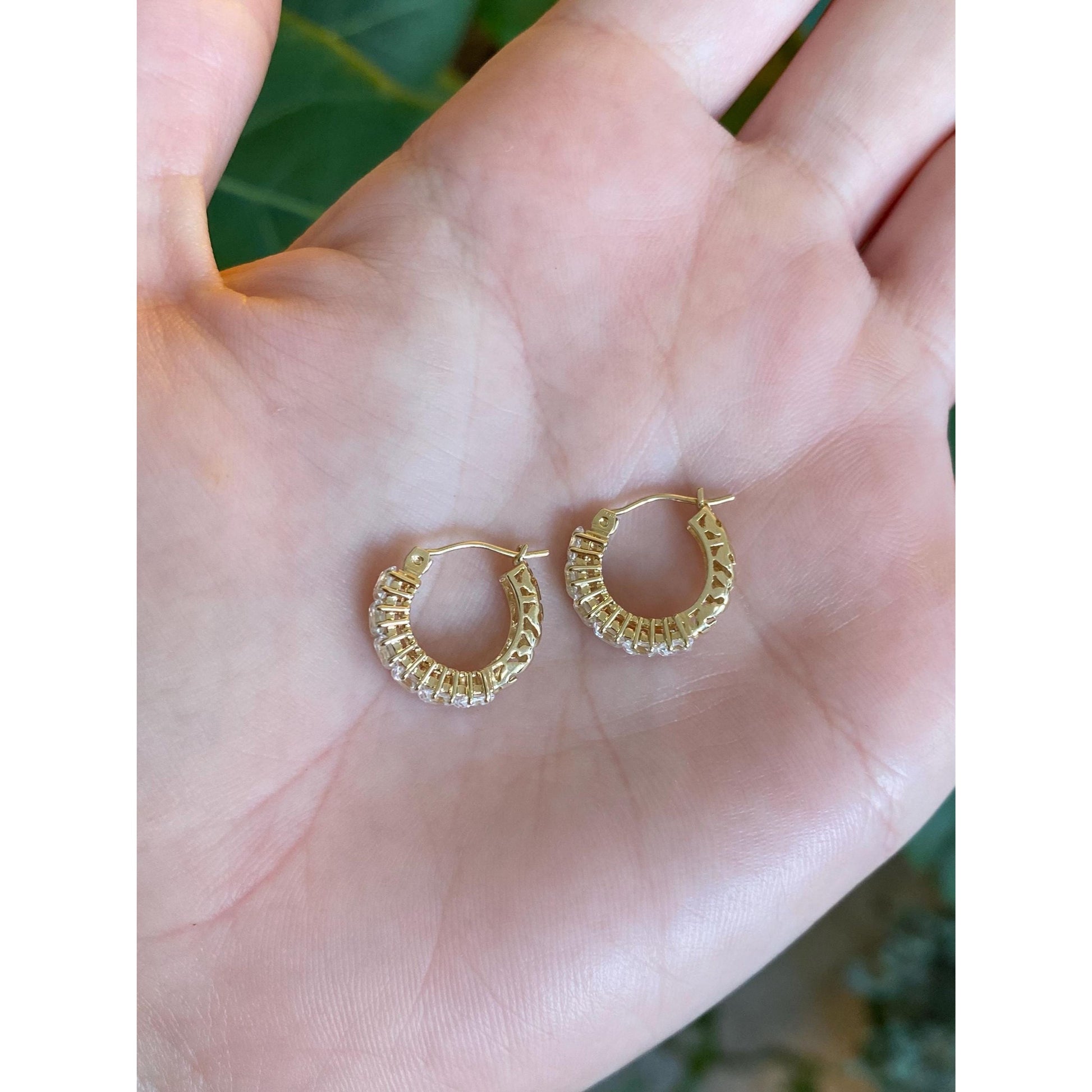 Vintage 14k Yellow Gold Cubic Zirconia Little Hoop Earrings