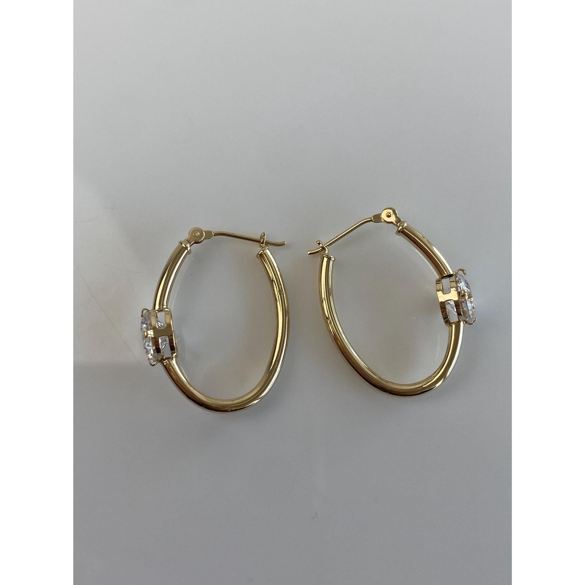 Vintage 14k Yellow Gold Cubic Zirconia Oval Hoop Earrings