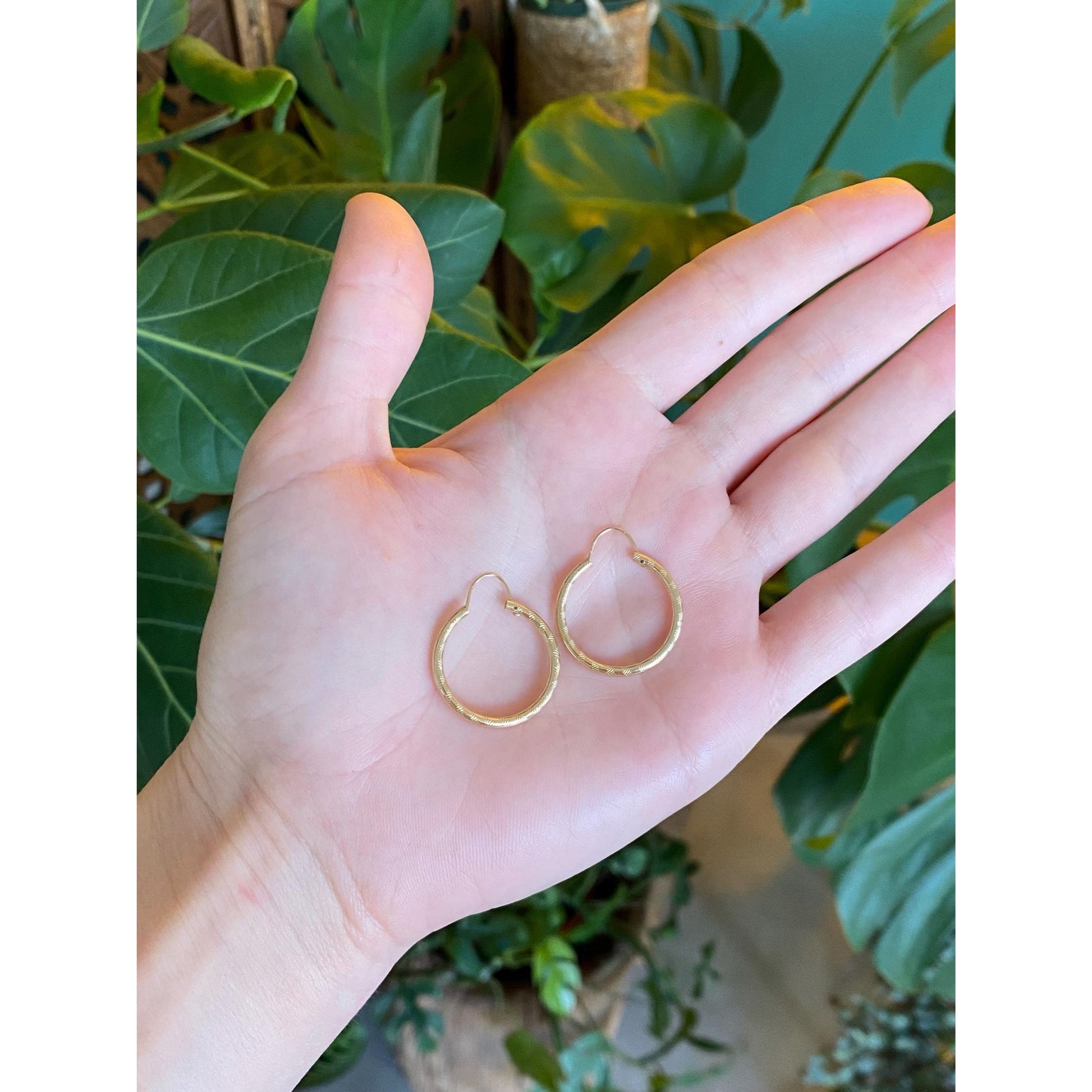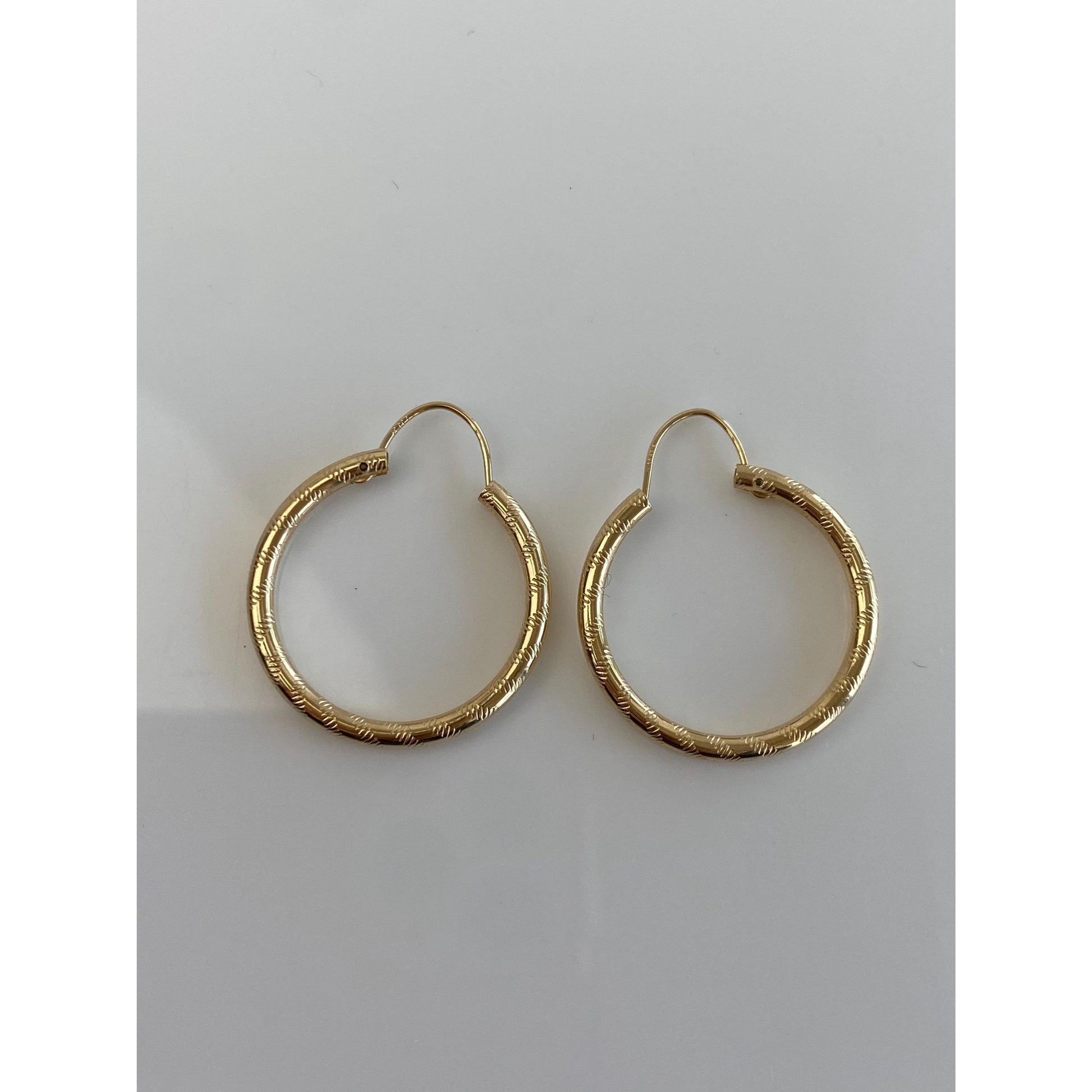 Vintage 14k Yellow Gold Designed Hoop Earrings