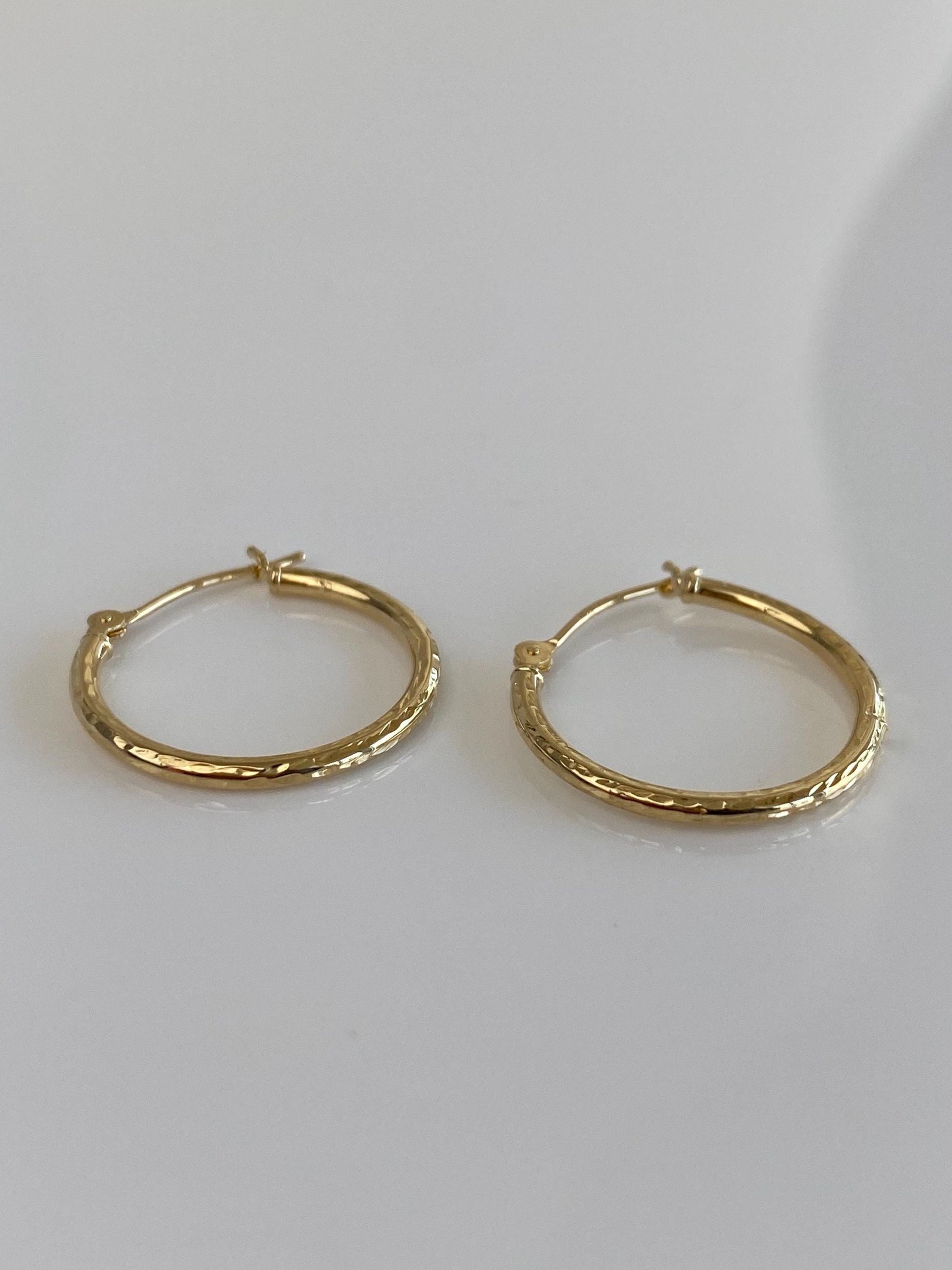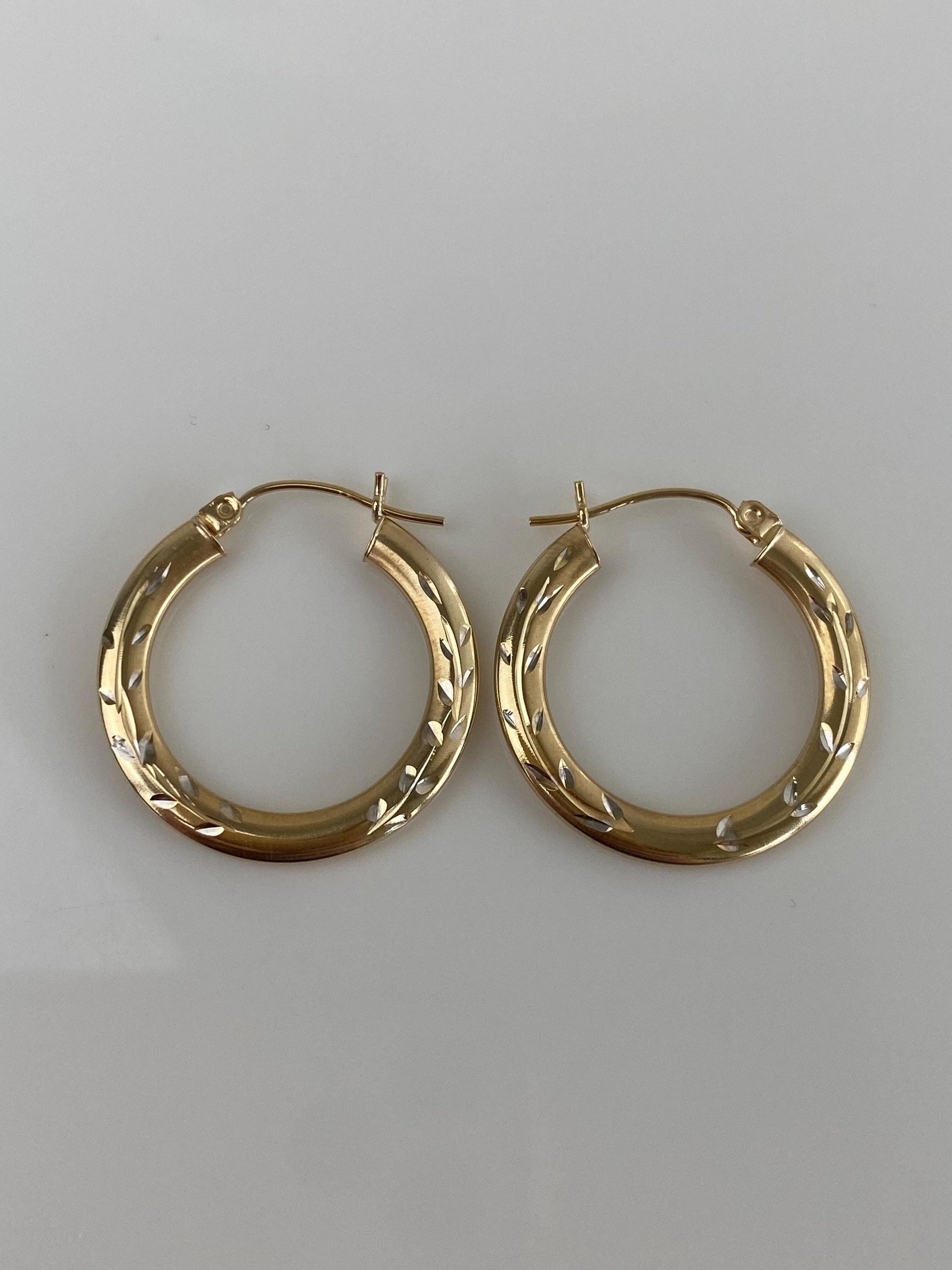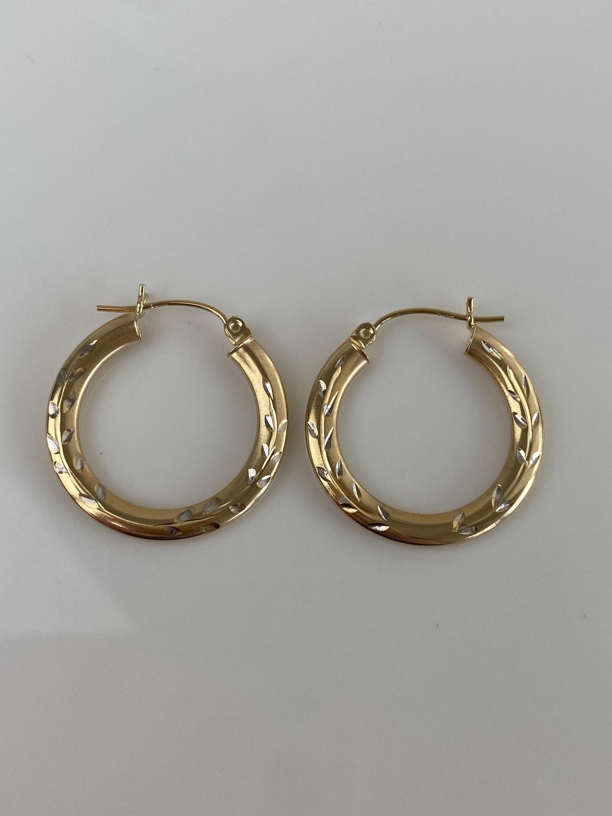Vintage 14k Yellow Gold Diamond Cut Hoop Earrings