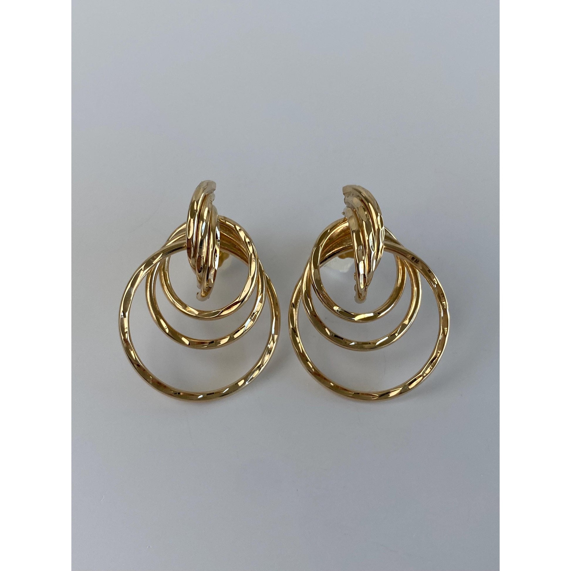 Vintage 14k Yellow Gold Diamond Cut Layered Stud Earrings