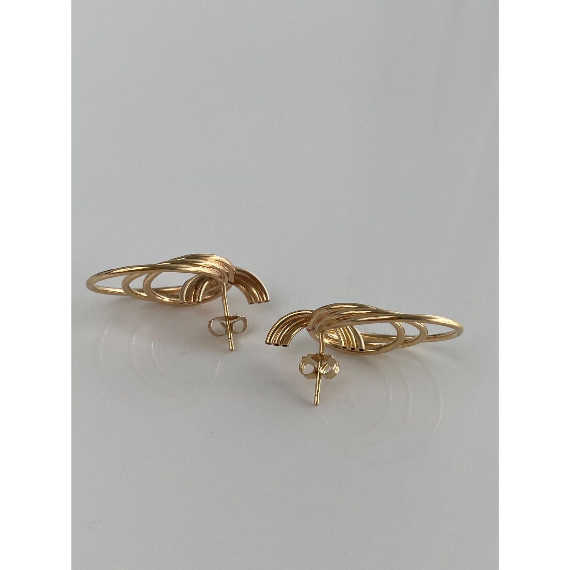 Vintage 14k Yellow Gold Diamond Cut Layered Stud Earrings