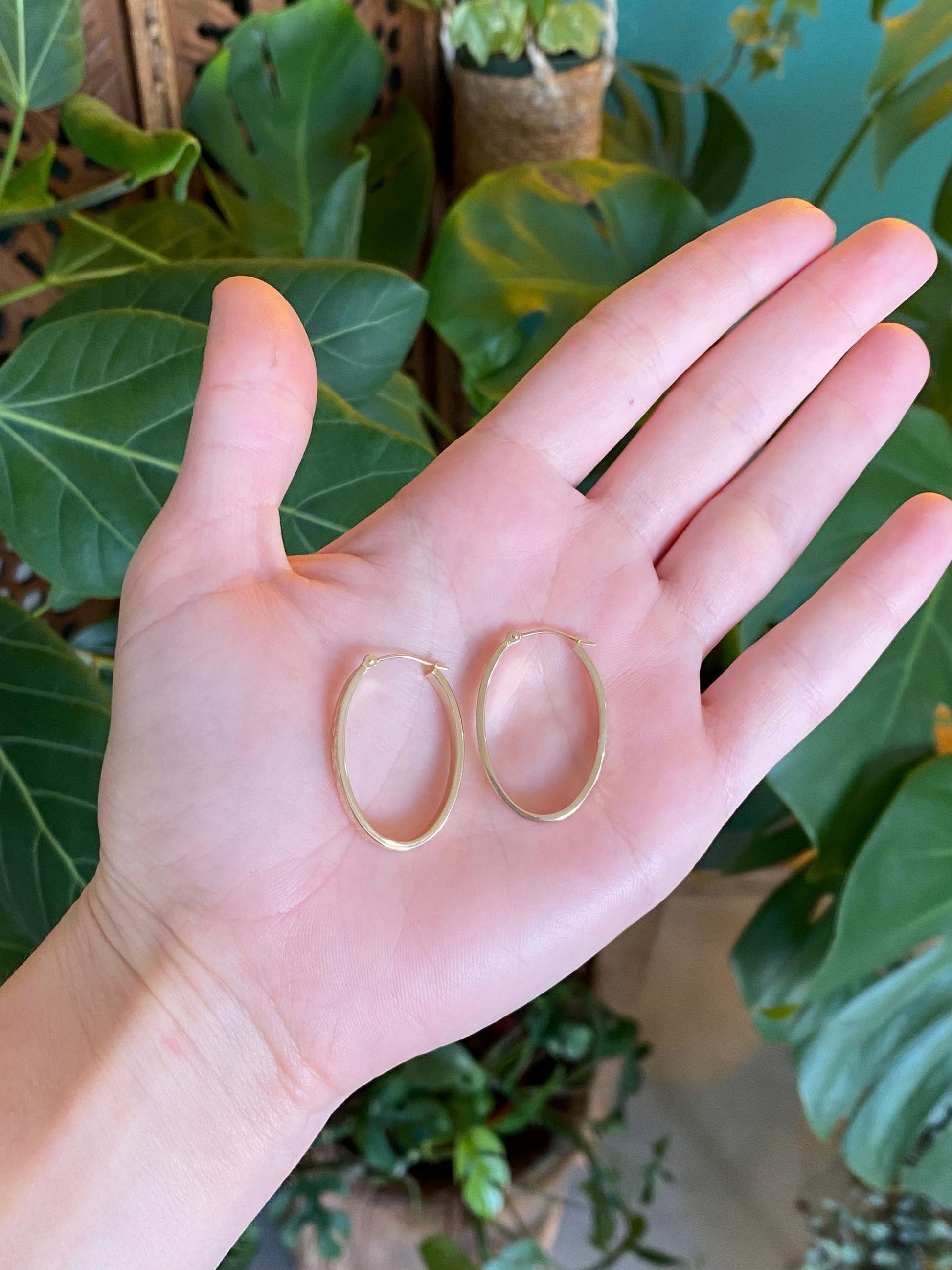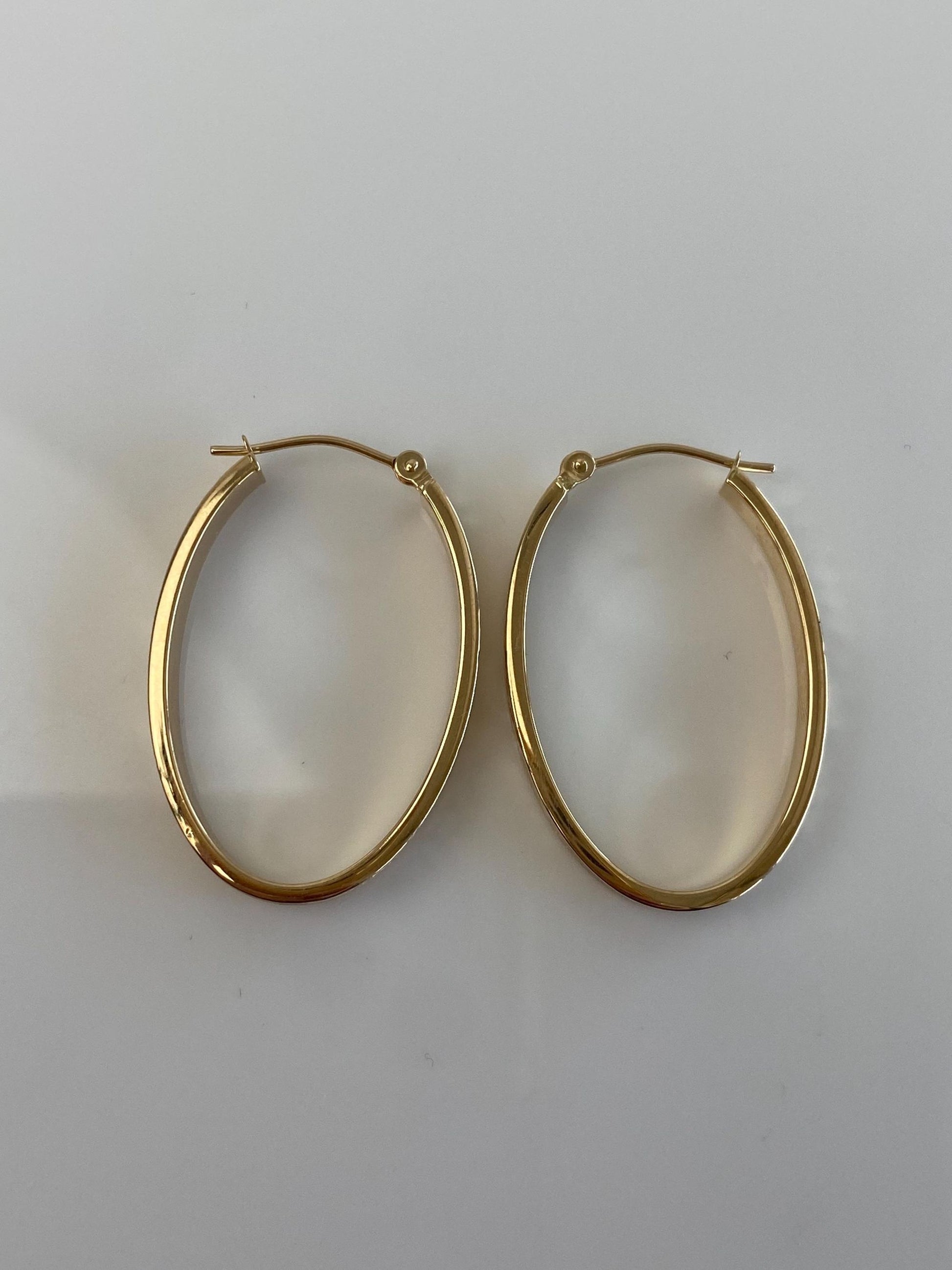 Vintage 14k Yellow Gold Diamond Cut Oval Hoop Earrings