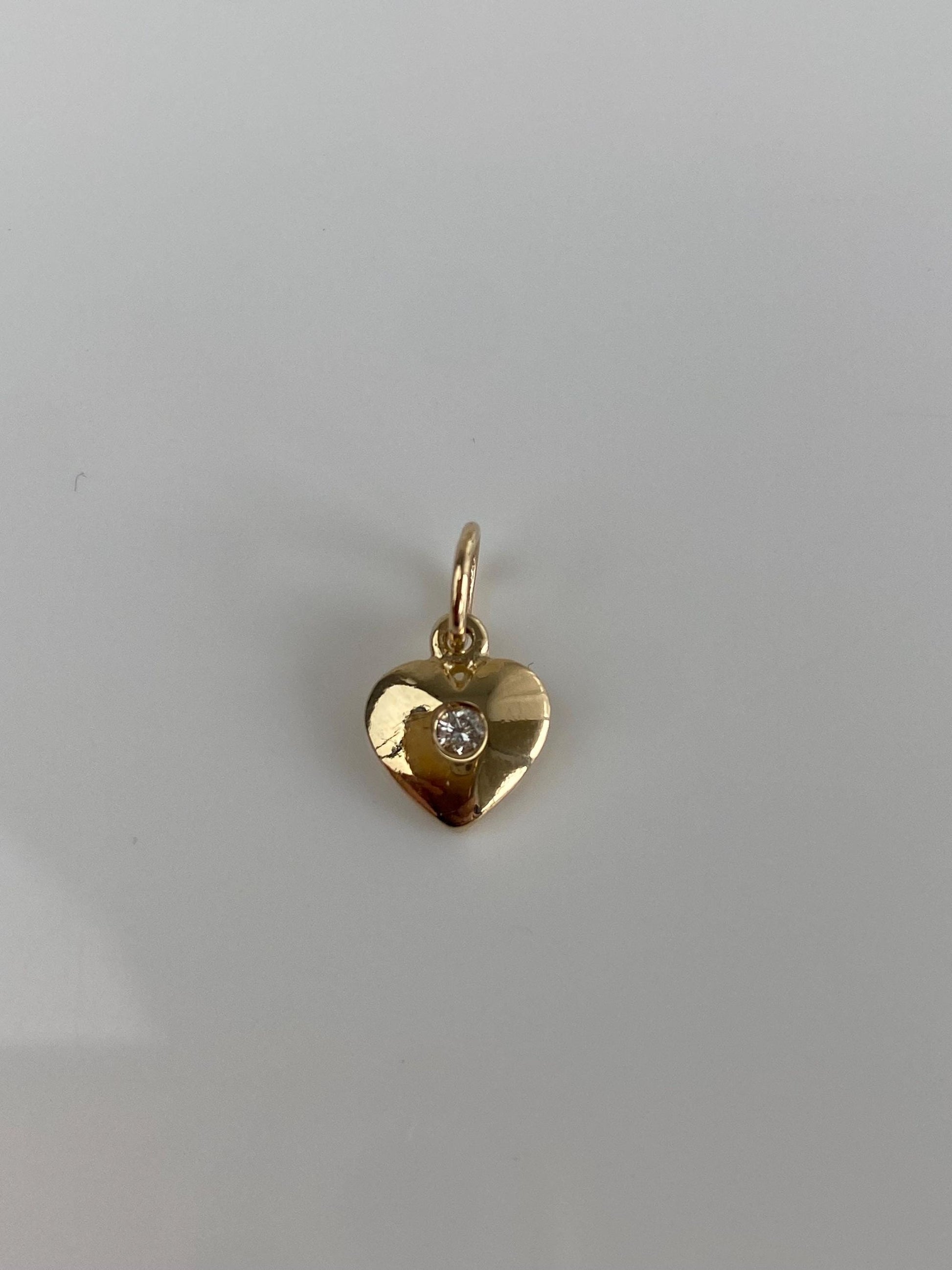 Vintage 14k Yellow Gold Diamond Heart Charm