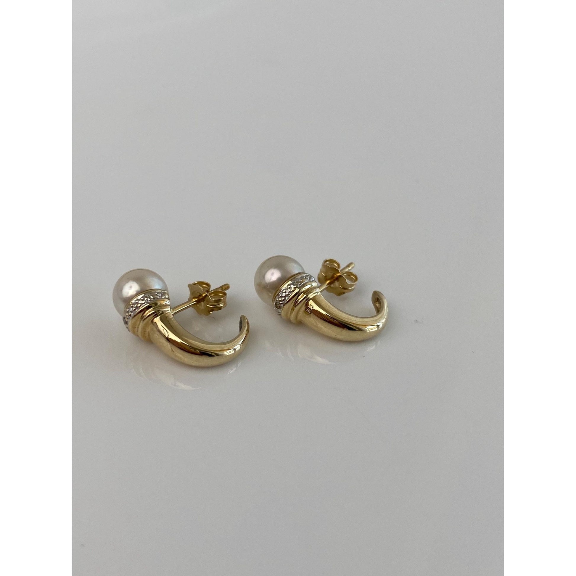 Vintage 14k Yellow Gold Diamond Pearl Talon Drop Earrings