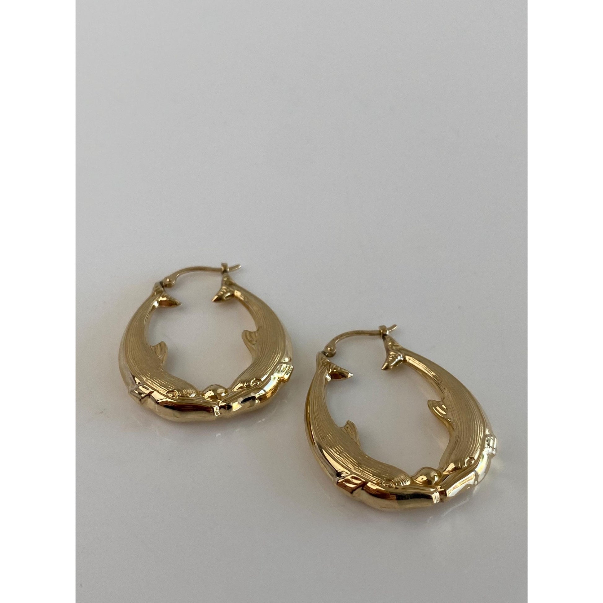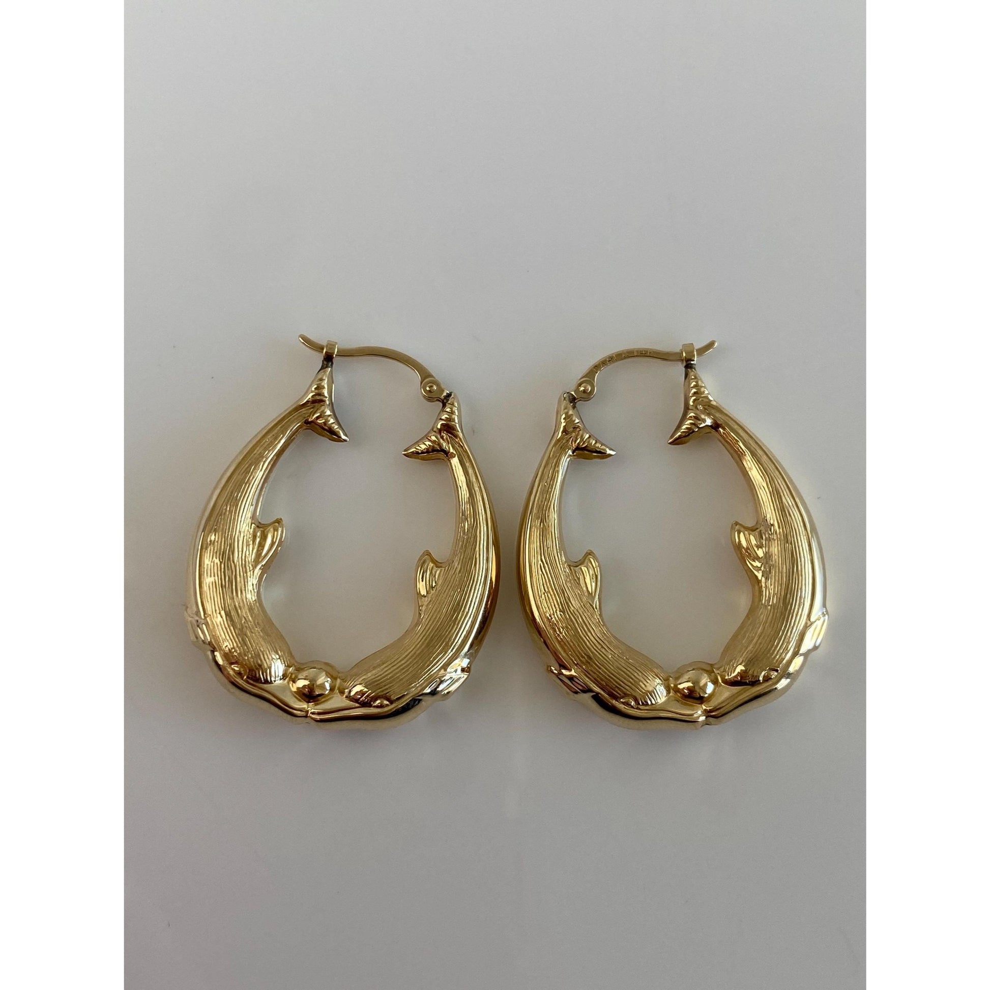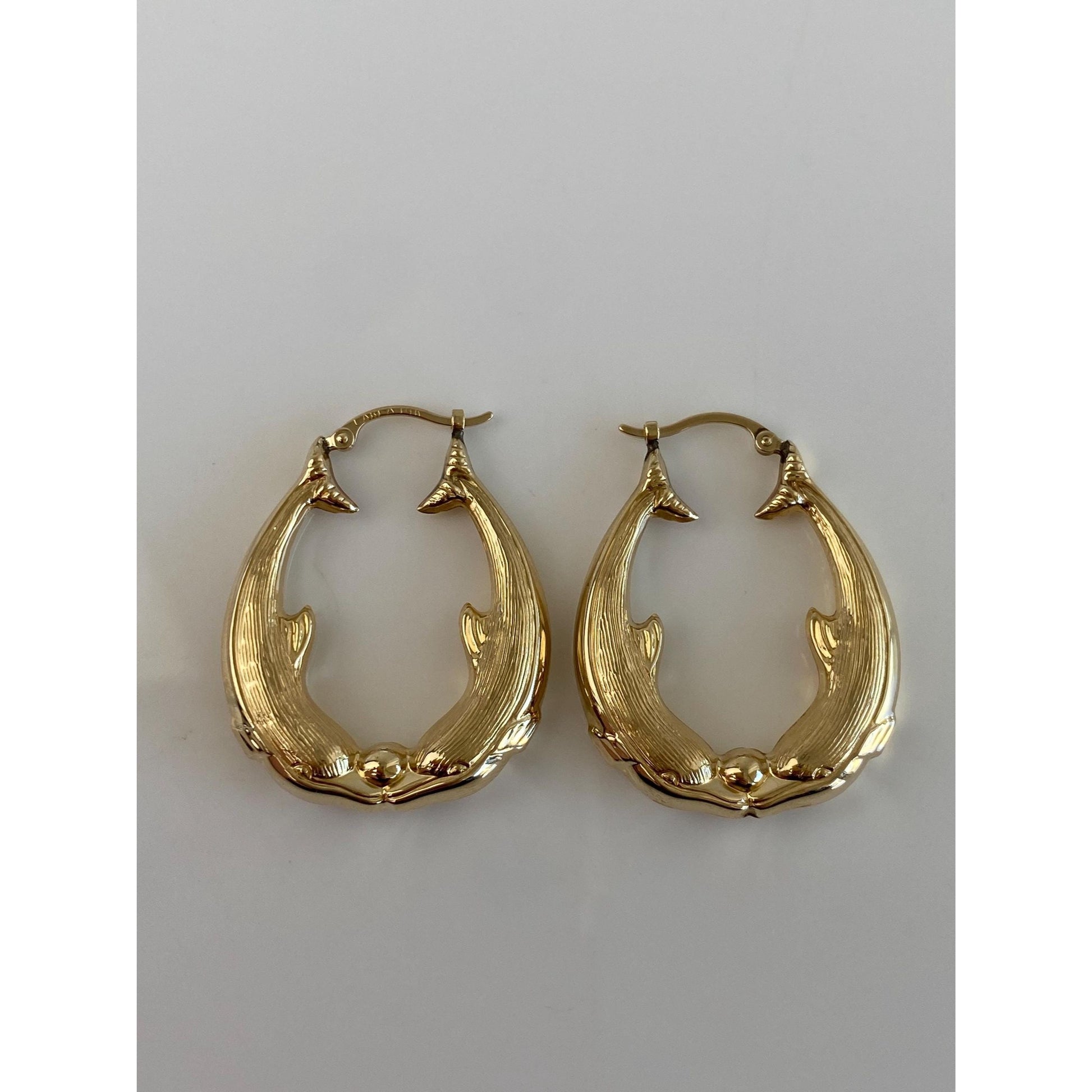 Vintage 14k Yellow Gold Dolphin Hoop Earrings