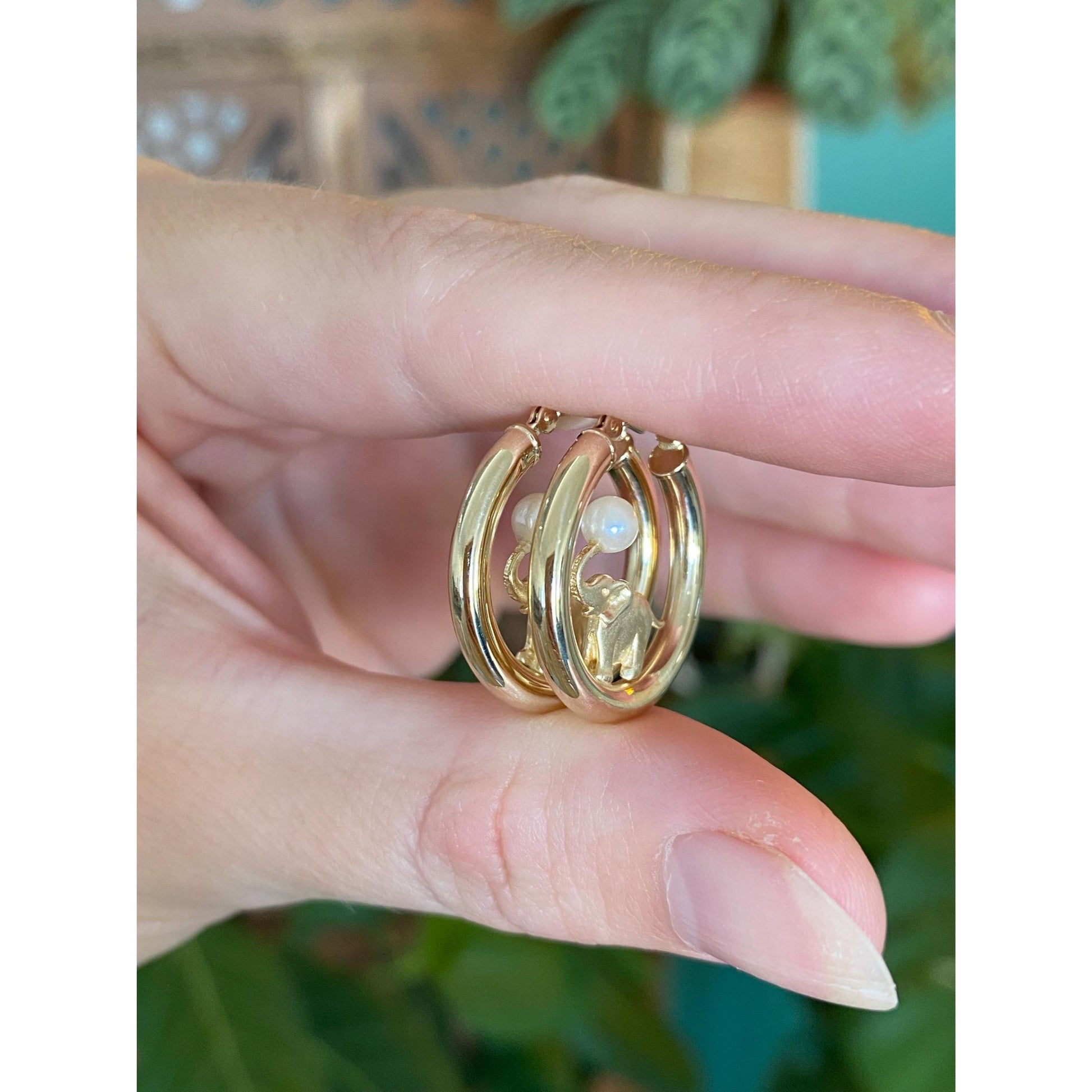 Vintage 14k Yellow Gold Elephant Pearl Hoop Earrings