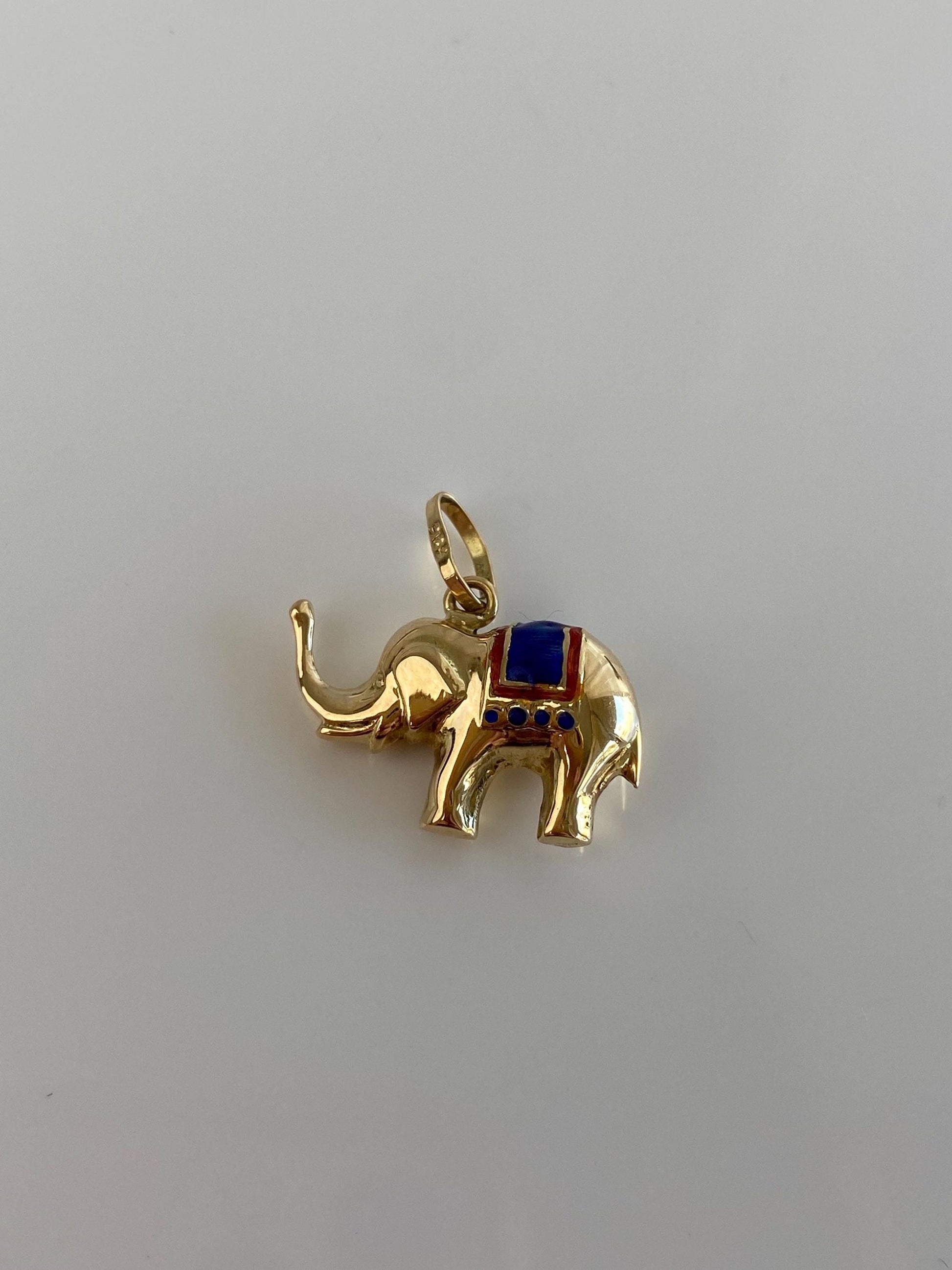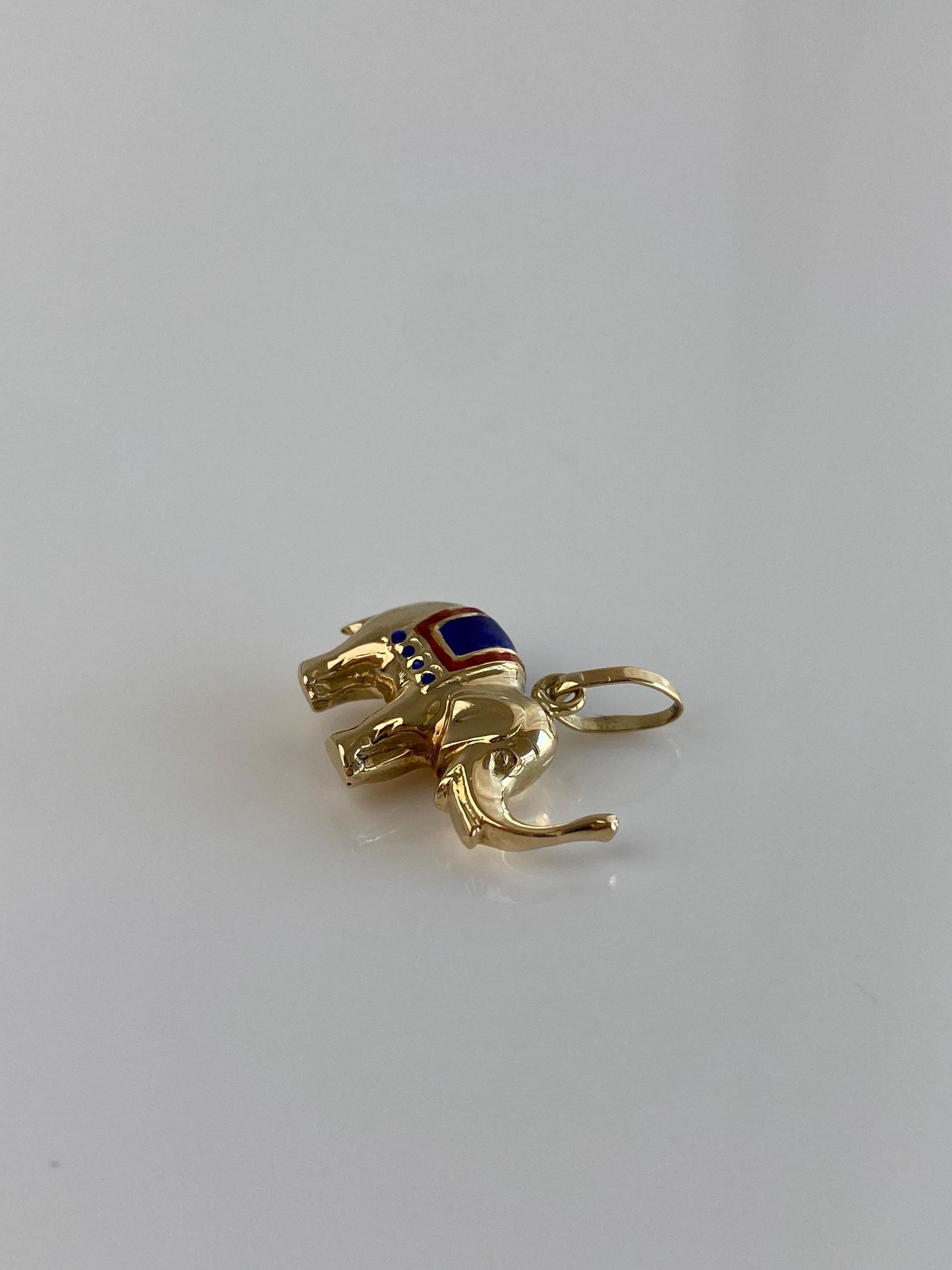 Vintage 14k Yellow Gold Enamel Elephant Charm