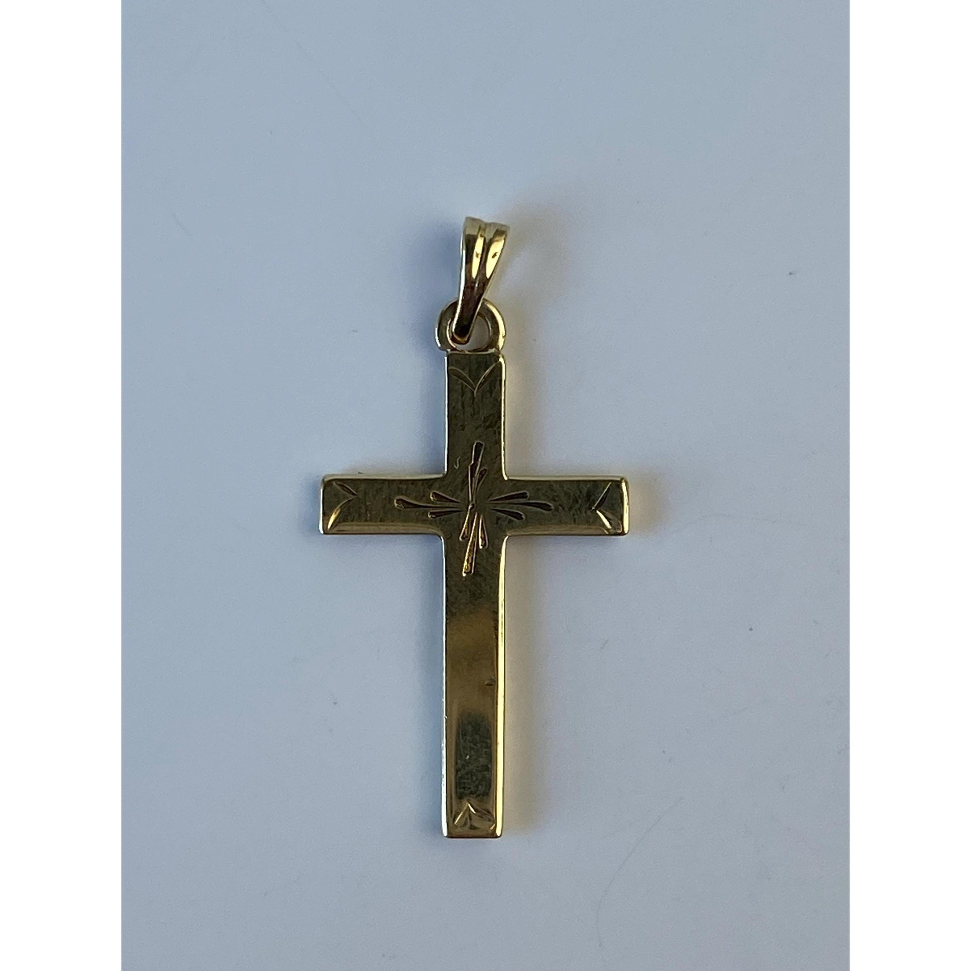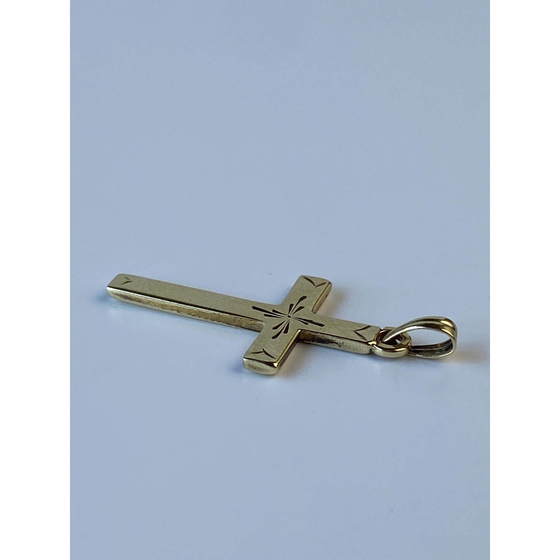 Vintage 14k Yellow Gold Engraved Cross Charm