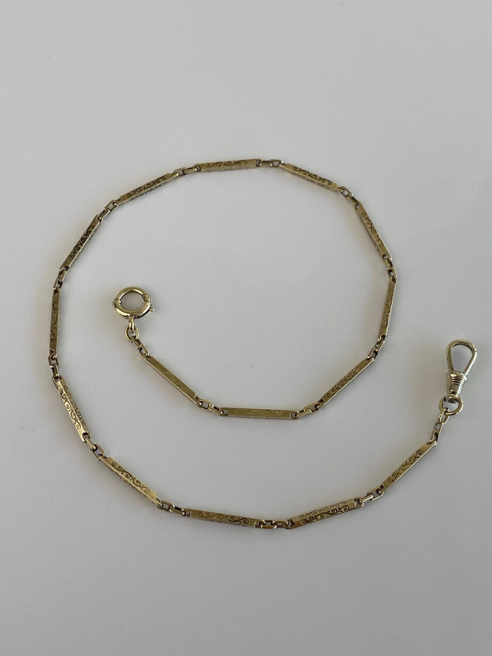 Vintage 14k Yellow Gold Fancy Link Pocket Watch Chain - 13.5 inches