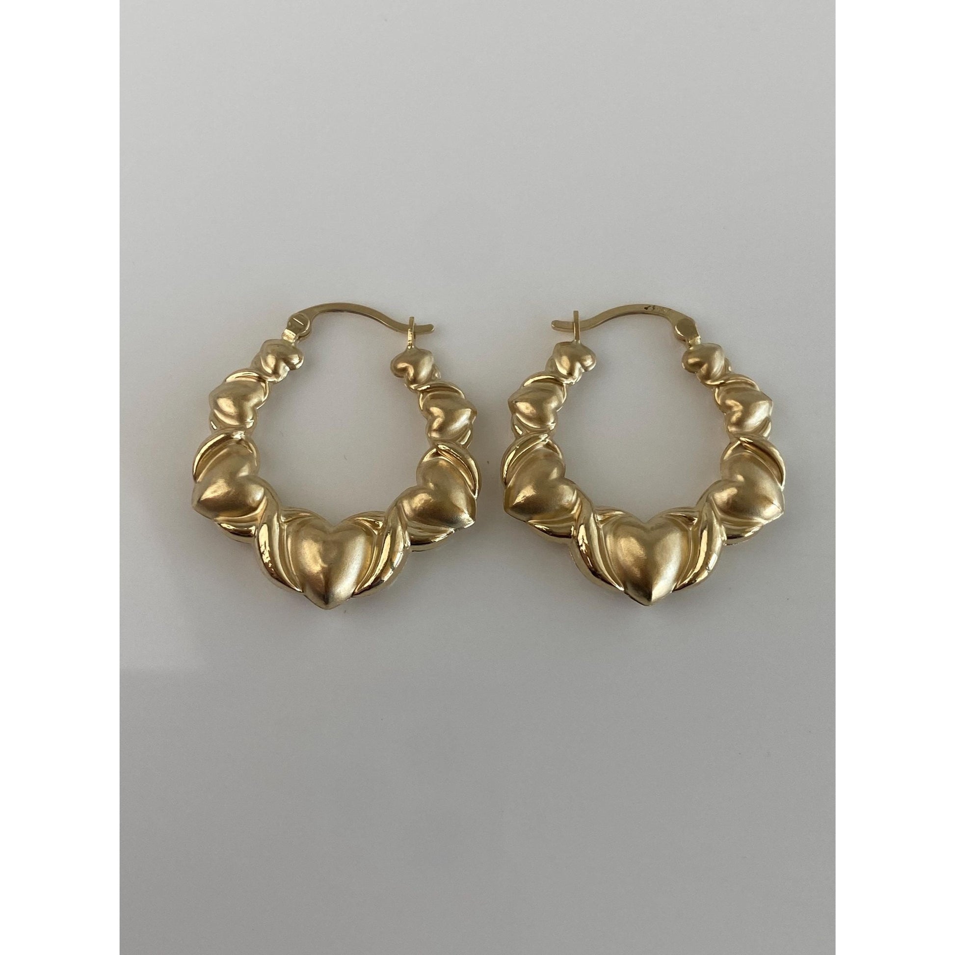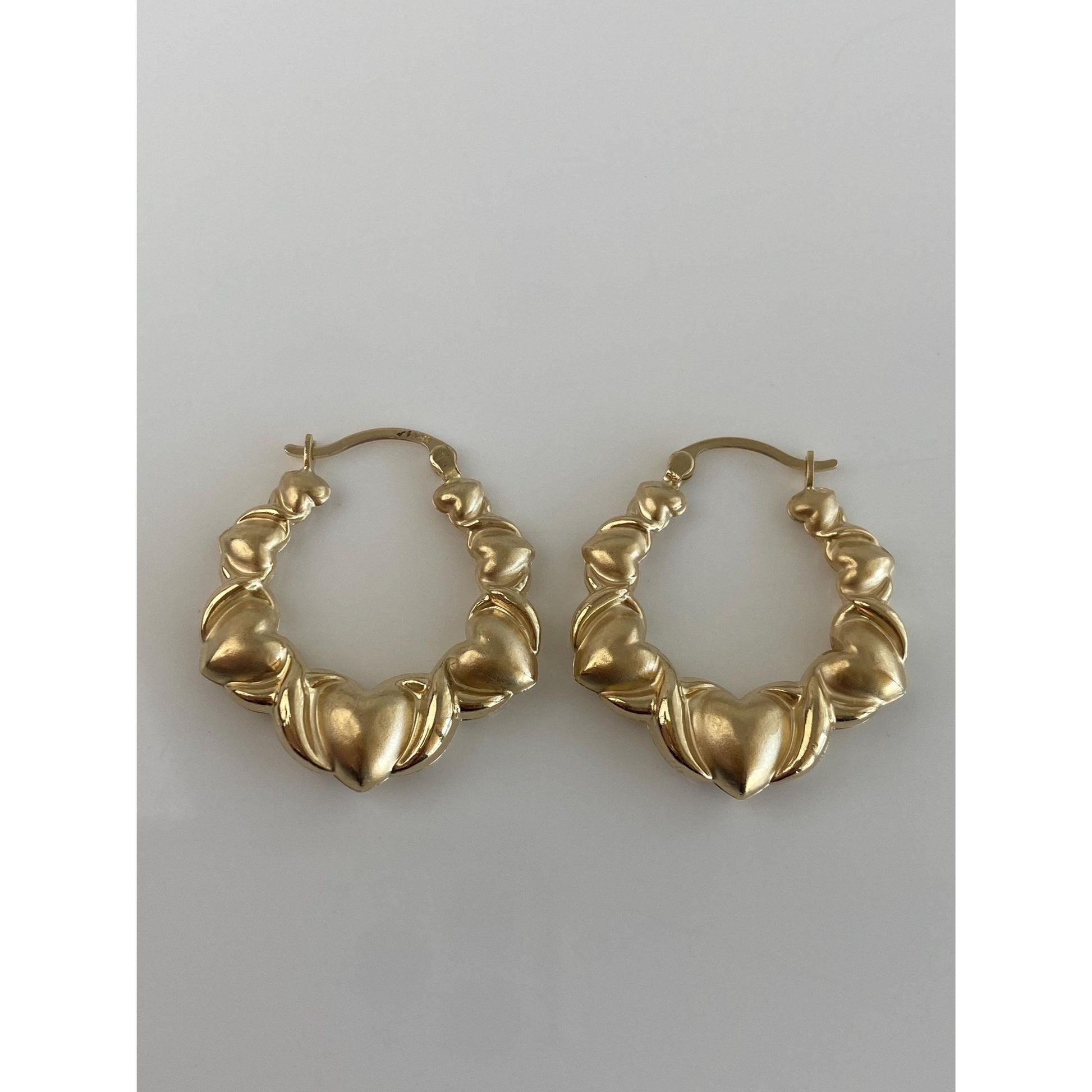 Vintage 14k Yellow Gold Hearts Hoop Earrings