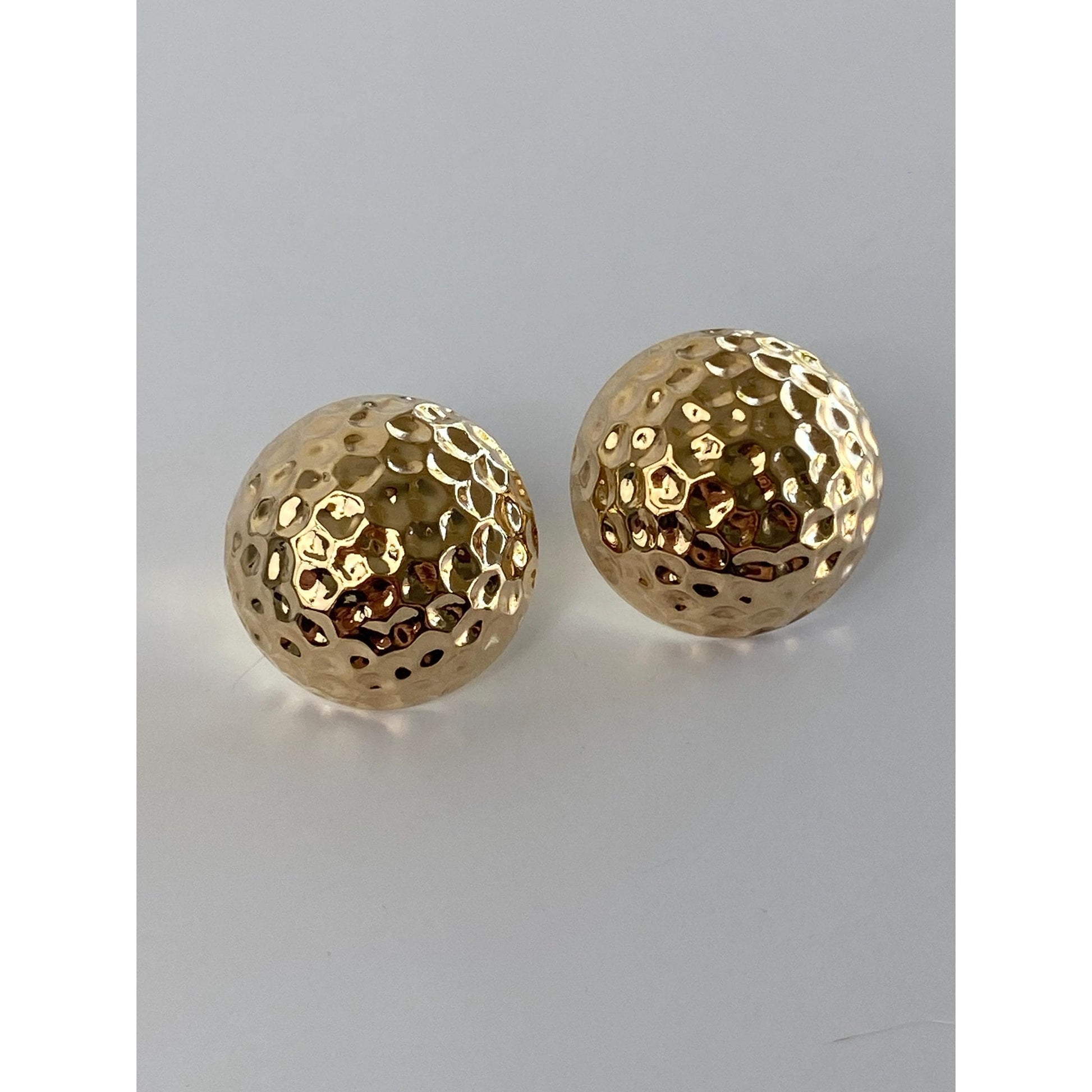 Vintage 14k Yellow Gold Large Hammered Texture Domed Stud Earrings