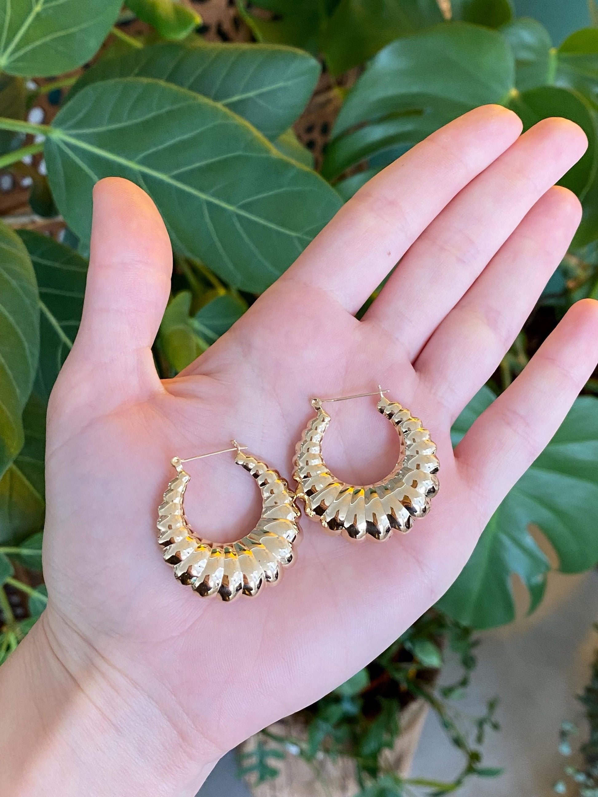 Vintage 14k Yellow Gold Large Scalloped Hoop Earrings