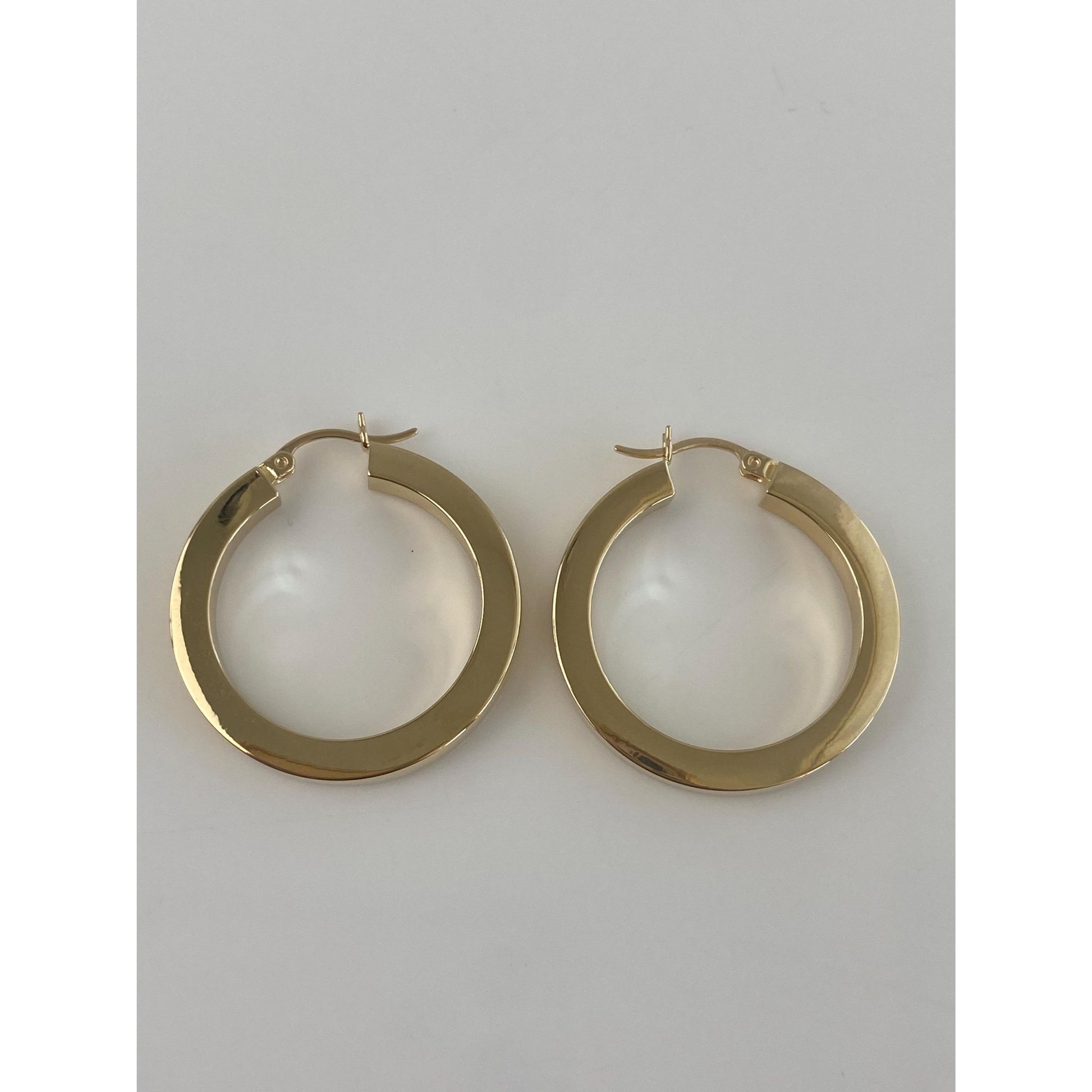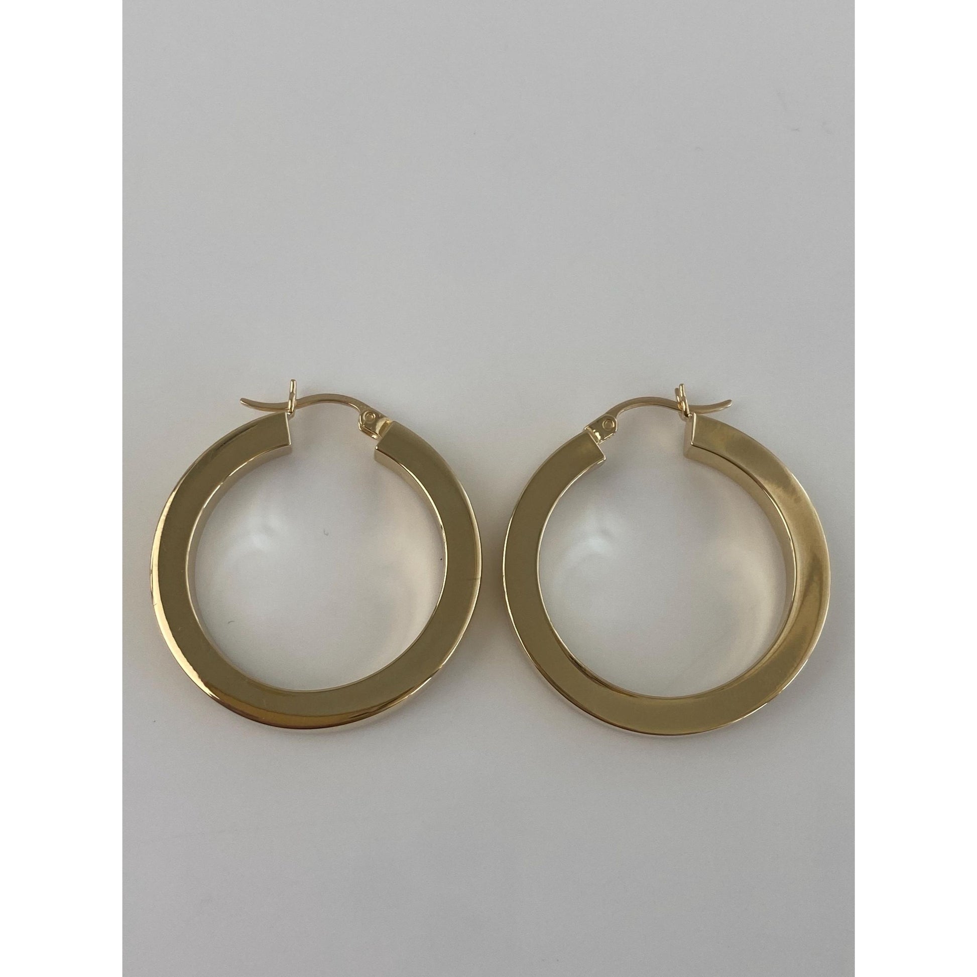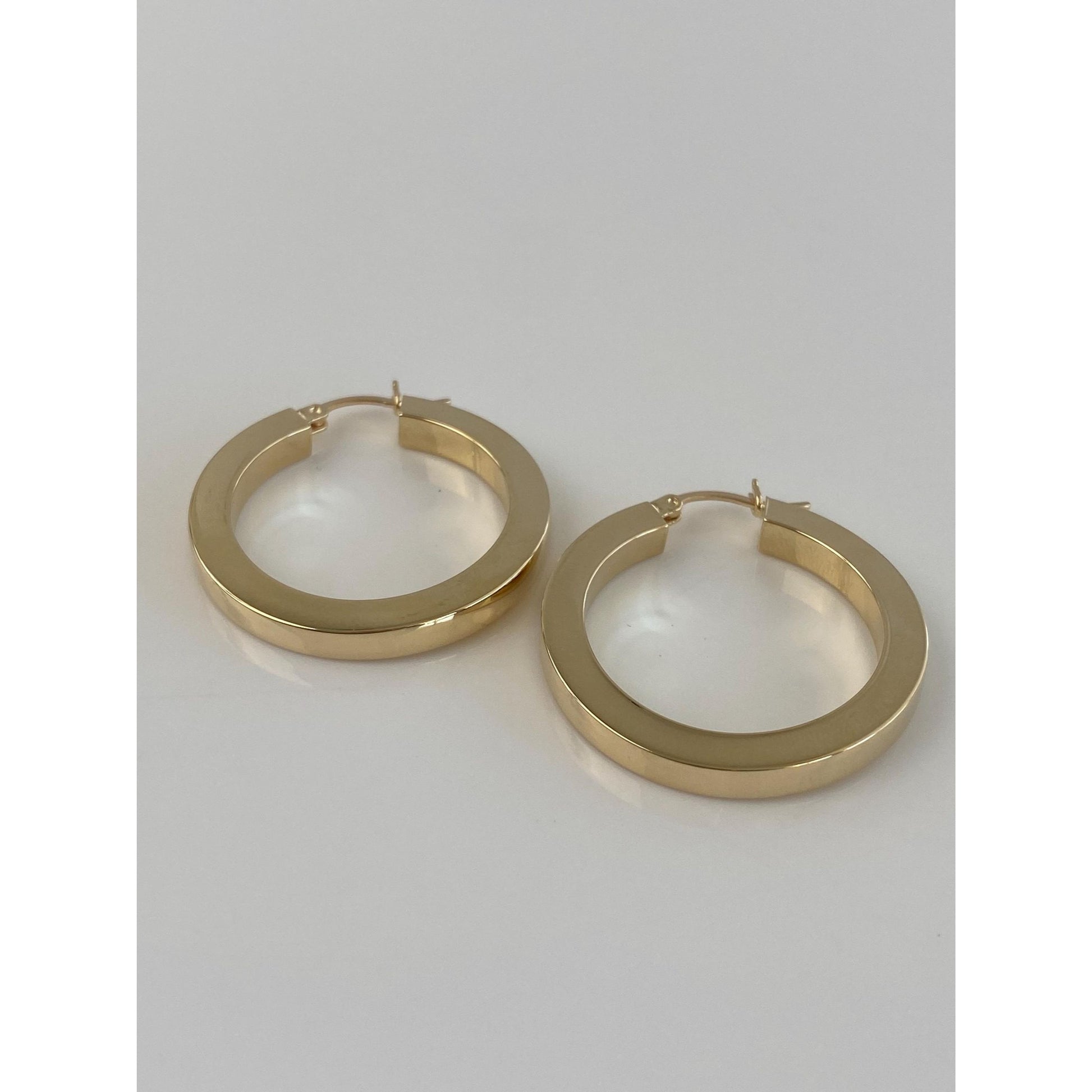 Vintage 14k Yellow Gold Large Straight Edge Hoop Earrings