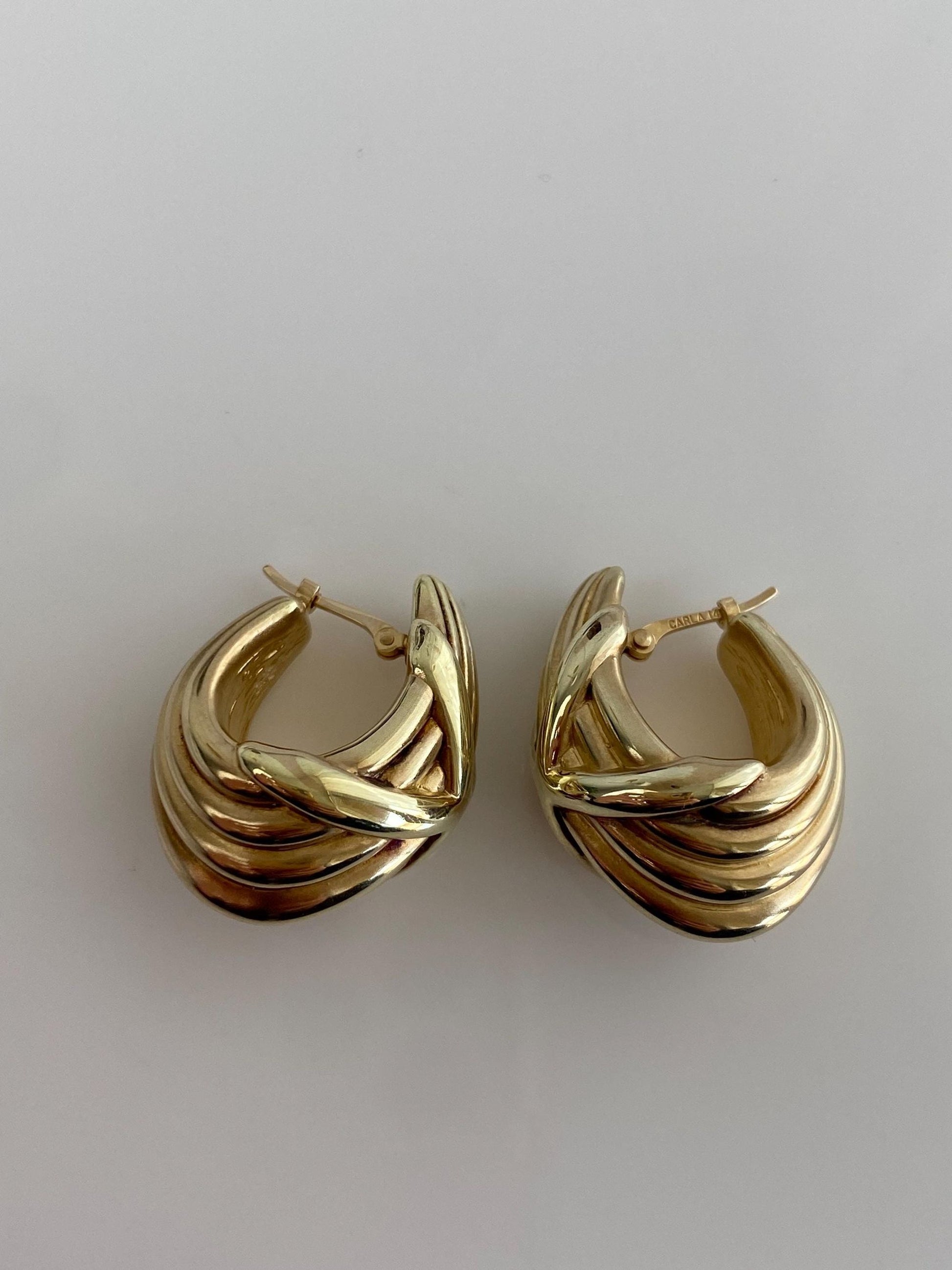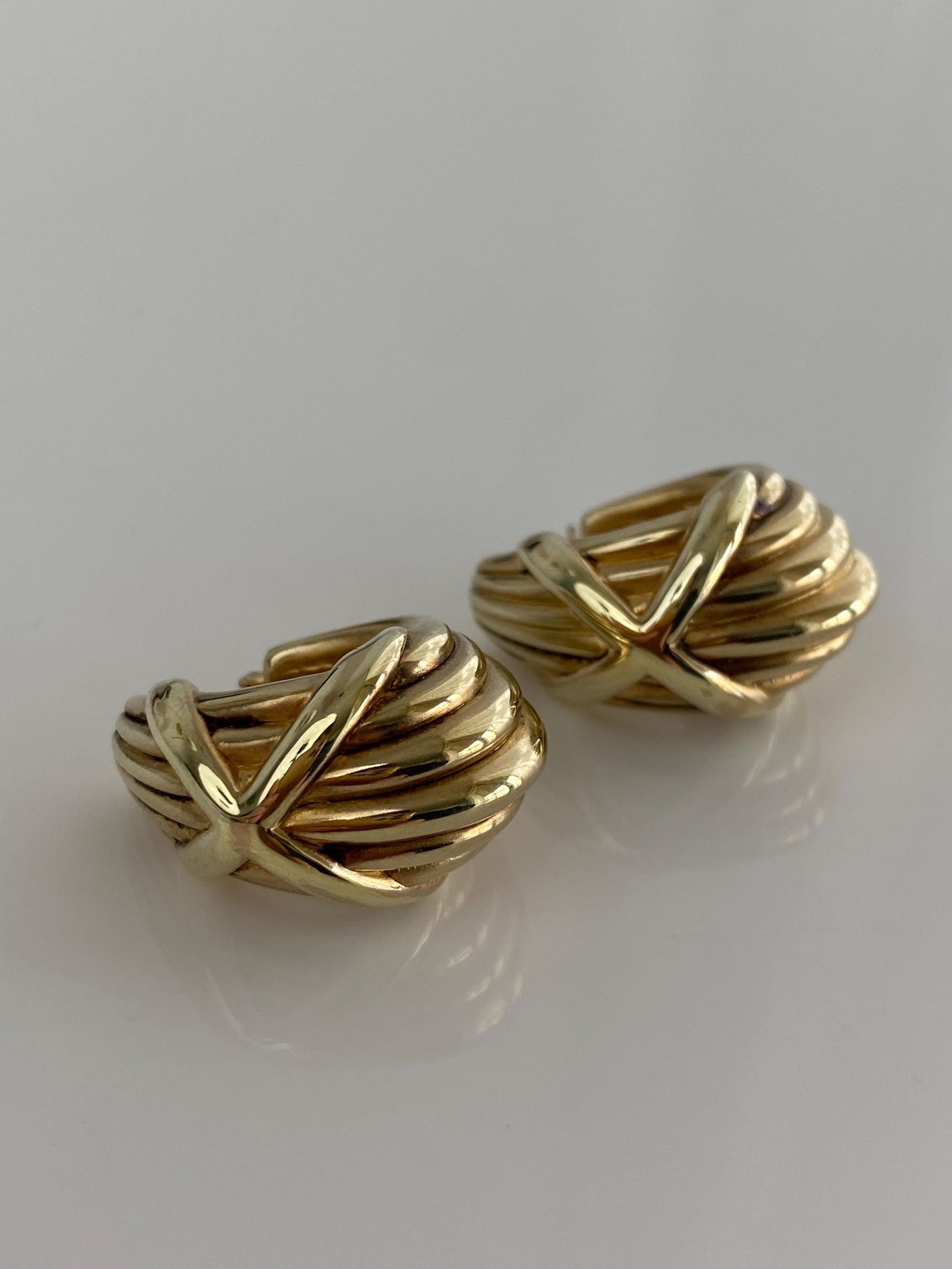 Vintage 14k Yellow Gold Lined X Drop Hoop Earrings
