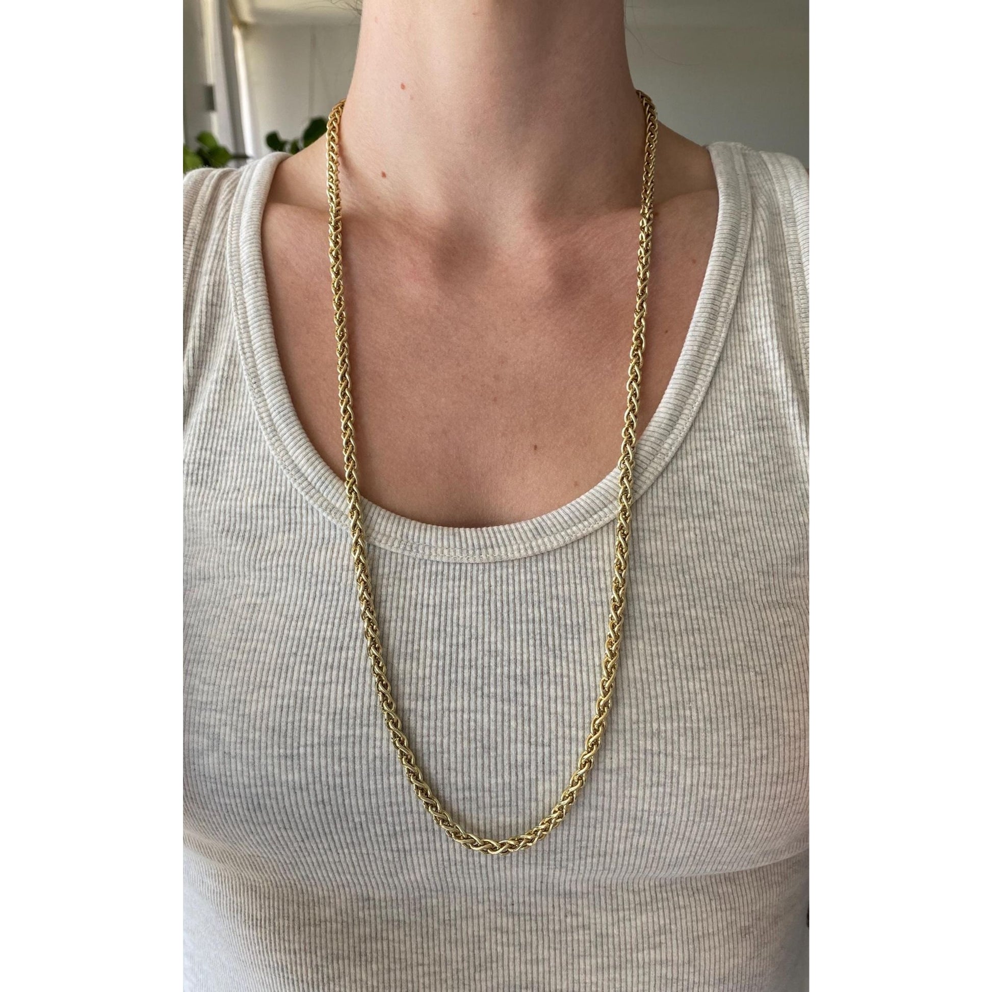 Vintage 14k Yellow Gold Long Chunky Wheat Chain Necklace - 30.25 inches