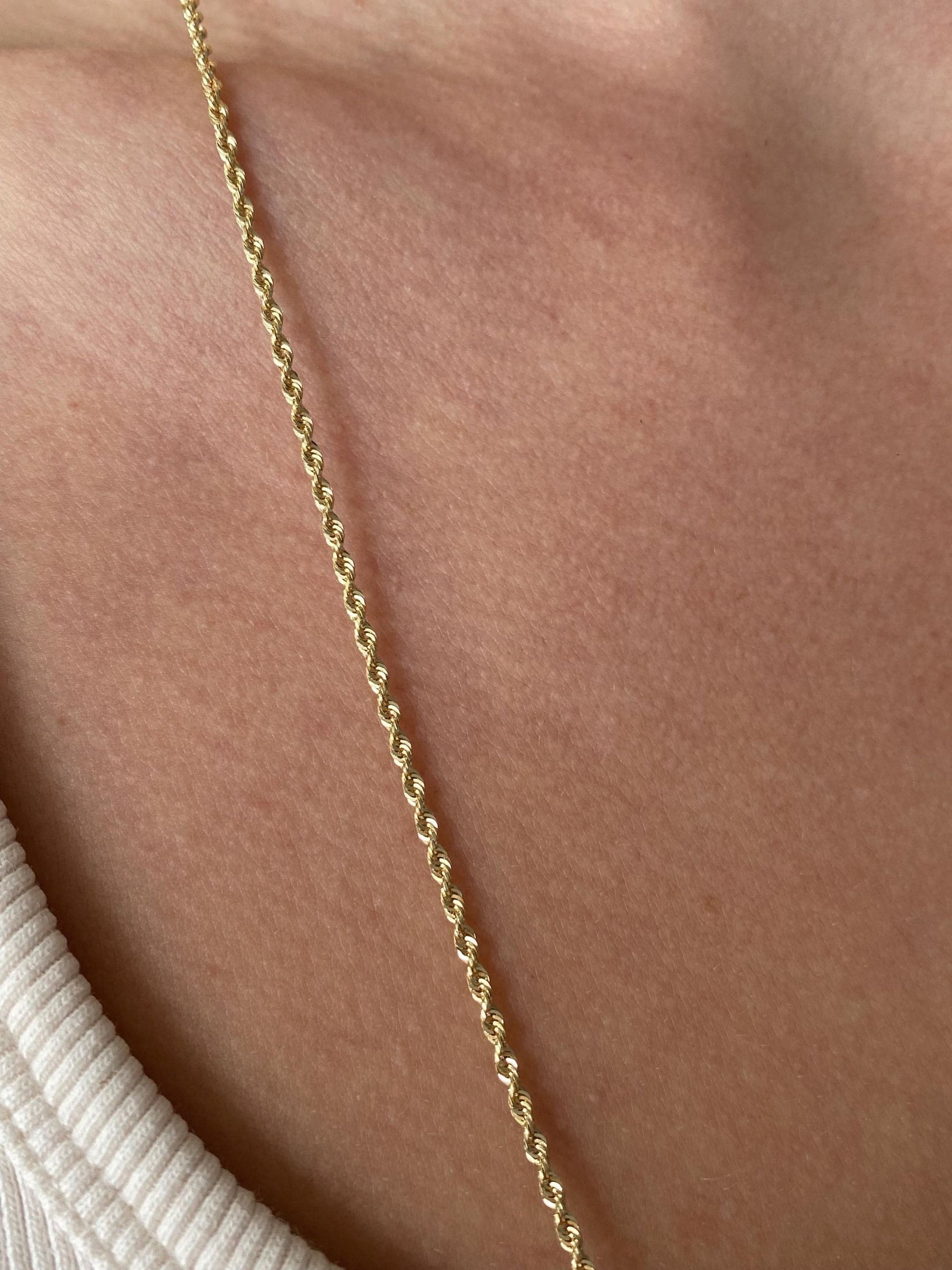 Vintage 14k Yellow Gold Long Slim Rope Chain Necklace - 27 inches