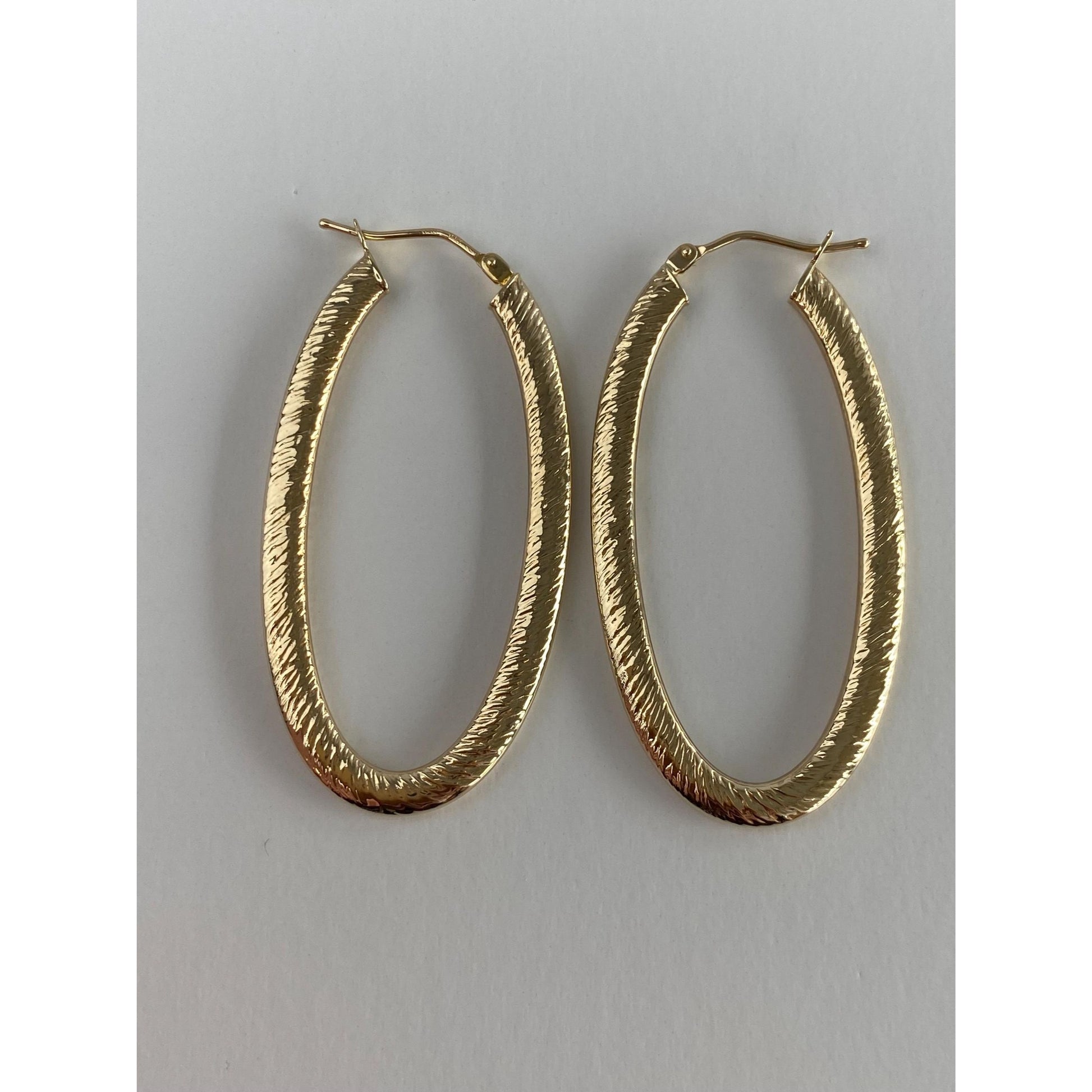 Vintage 14k Yellow Gold Long Textured Oval Hoop Earrings