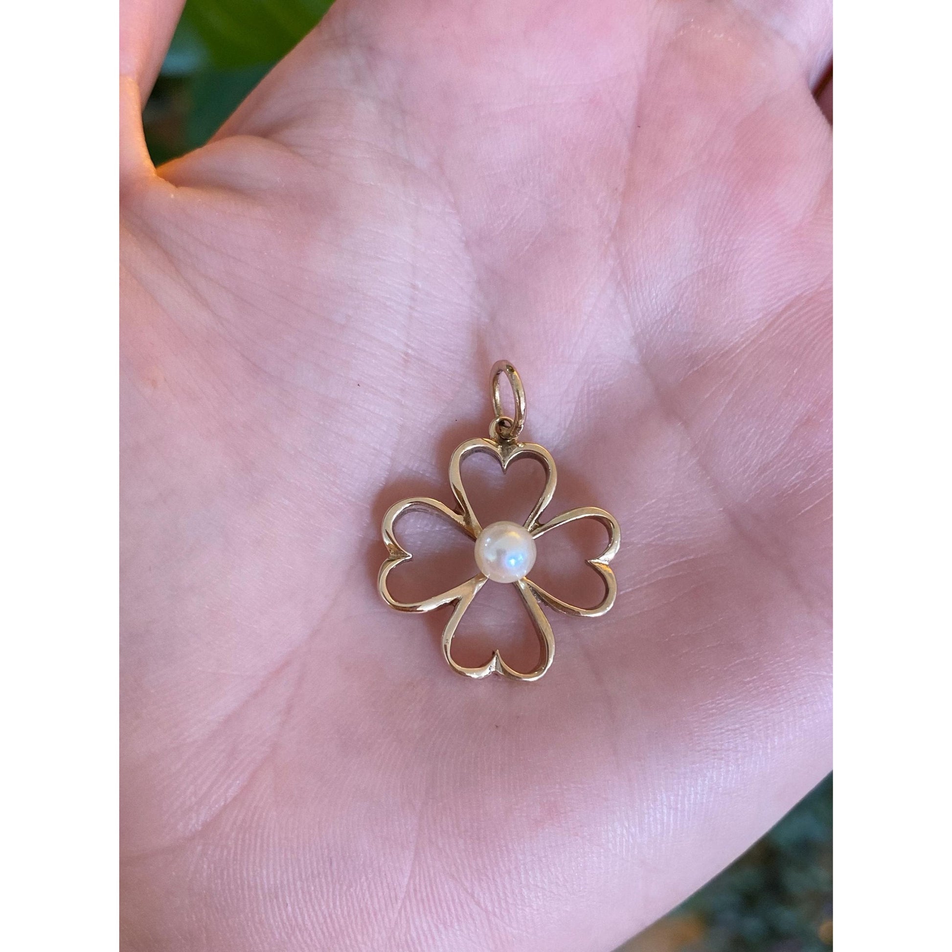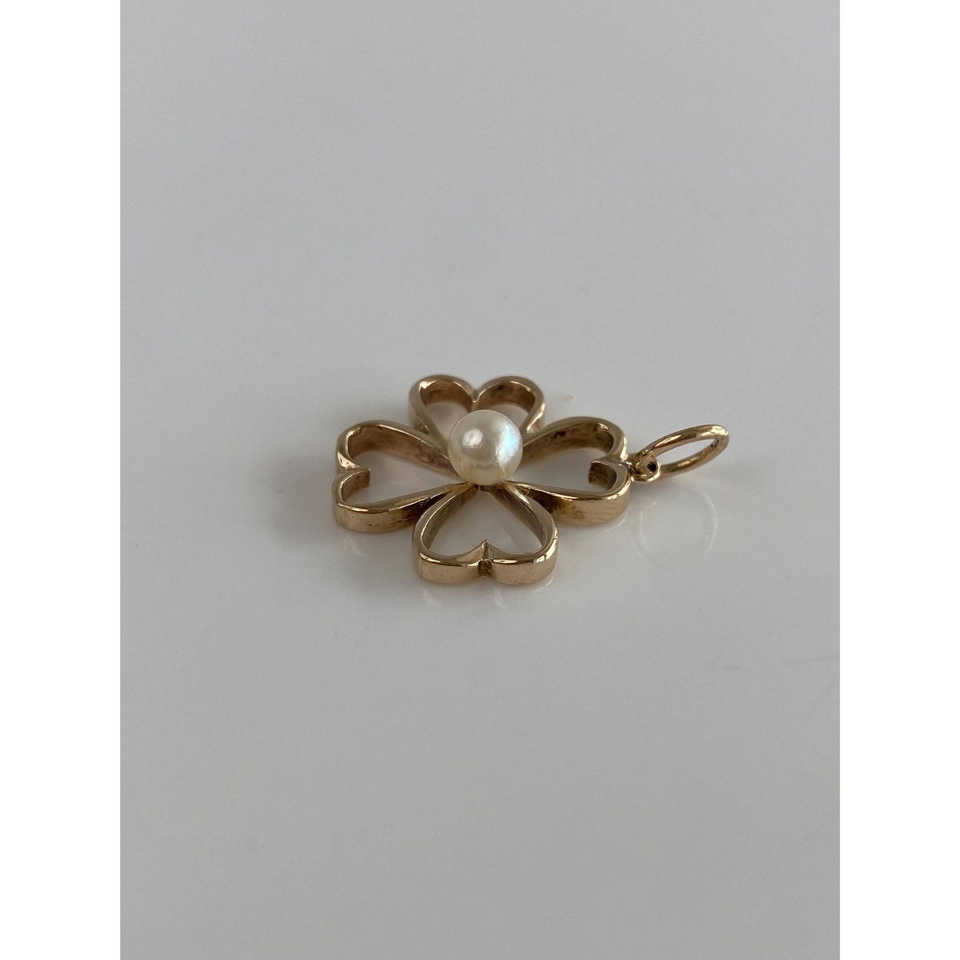 Vintage 14k Yellow Gold Pearl Clover Charm