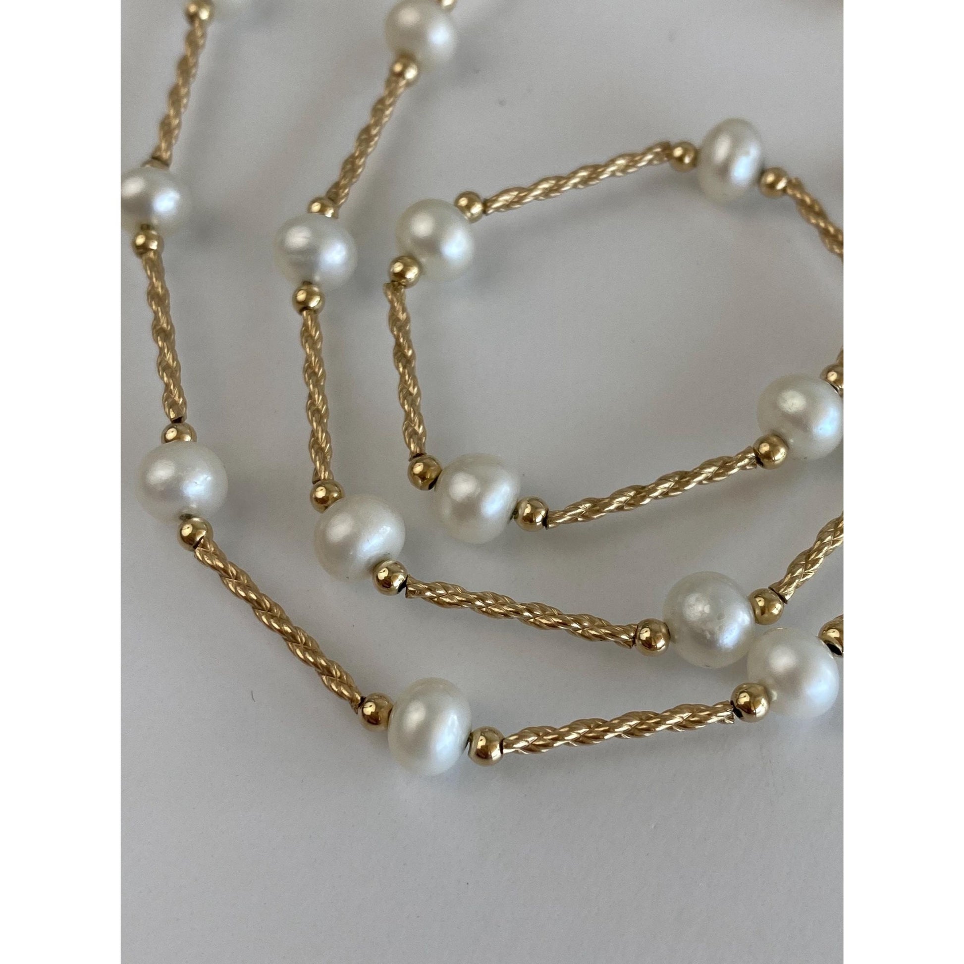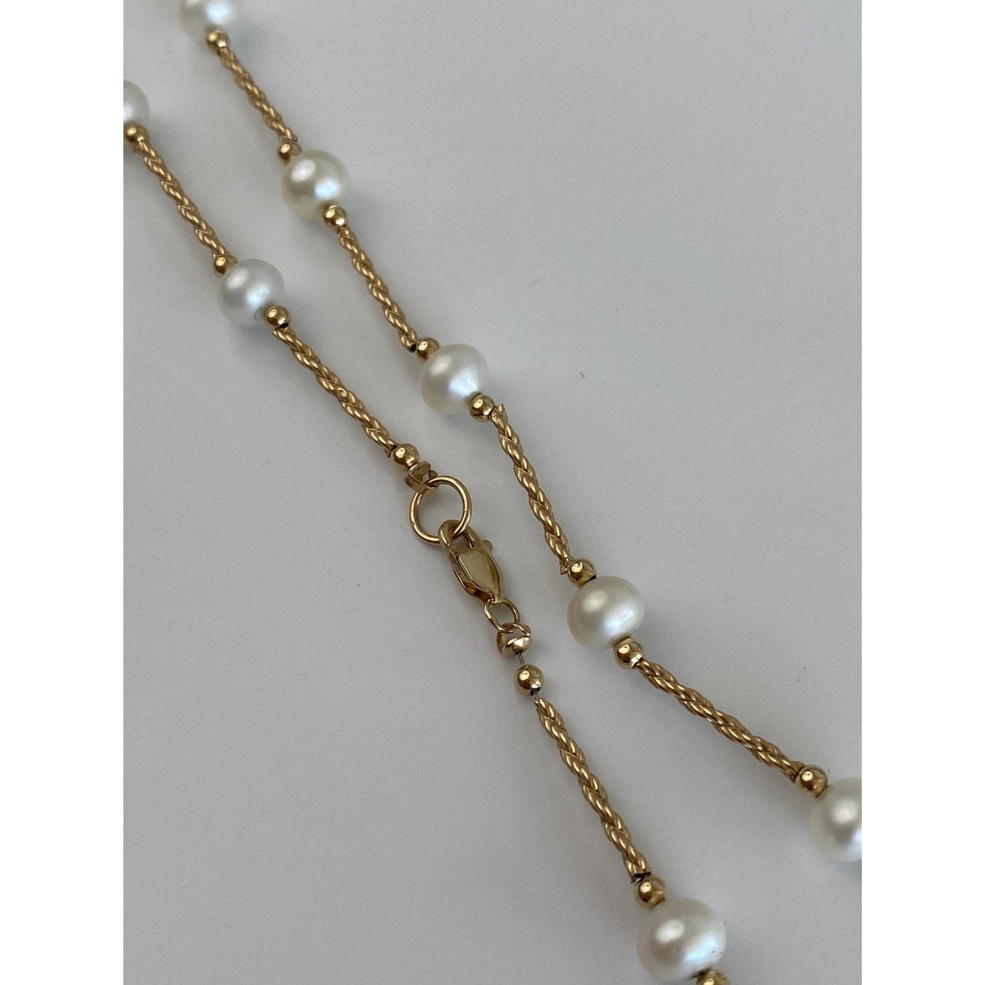 Vintage 14k Yellow Gold Pearl Twist Bead Chain Necklace - 19.5 inches