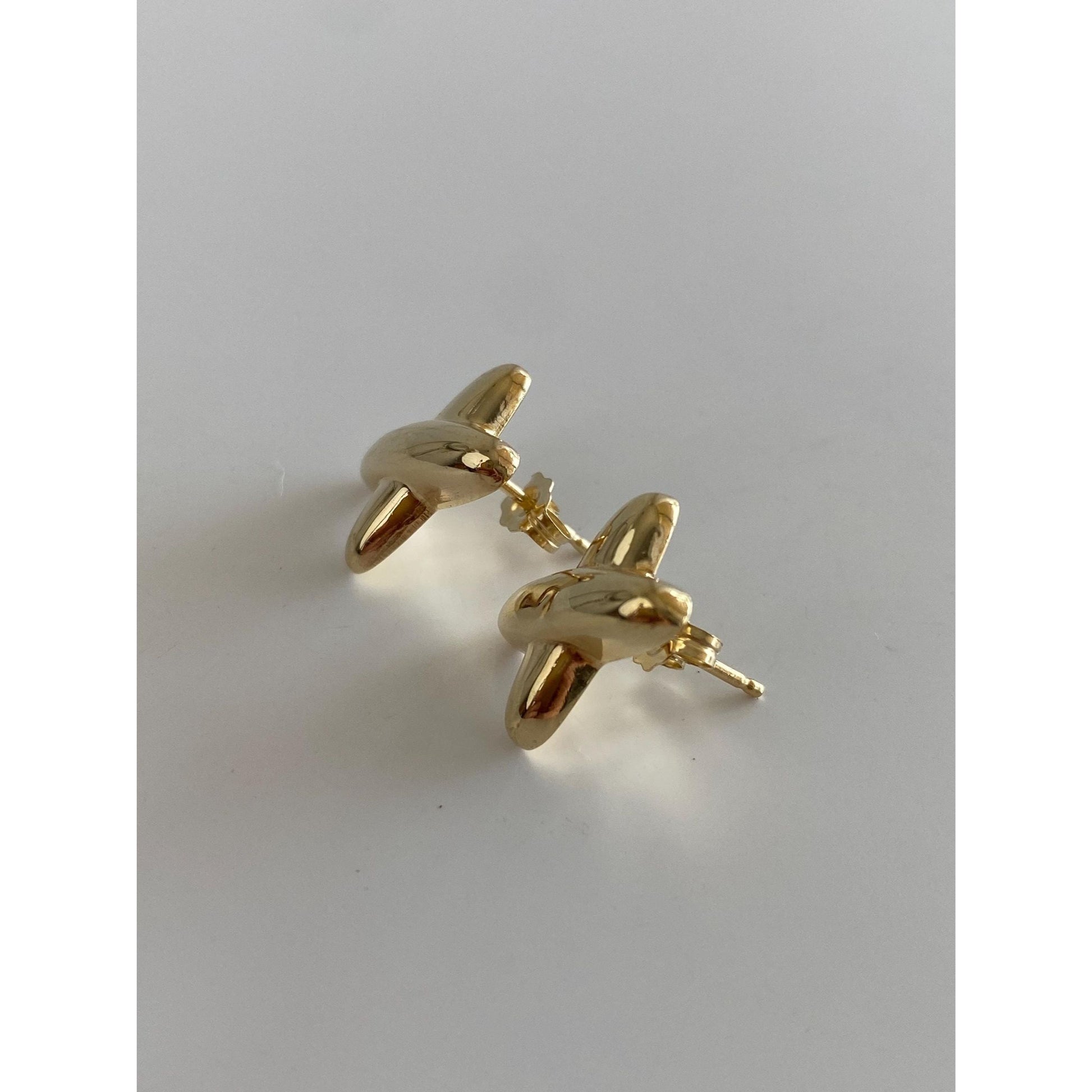 Vintage 14k Yellow Gold Puffy X Stud Earrings