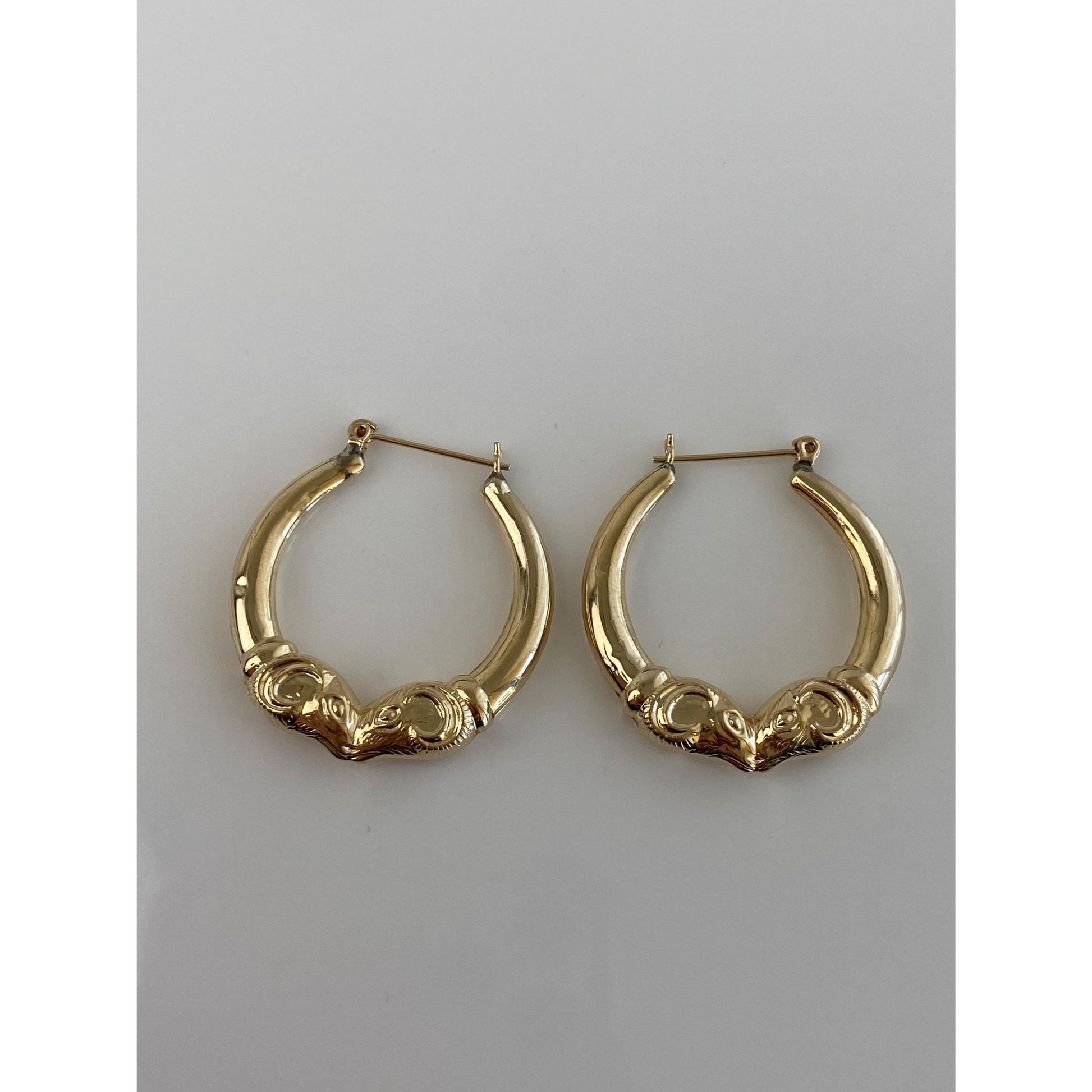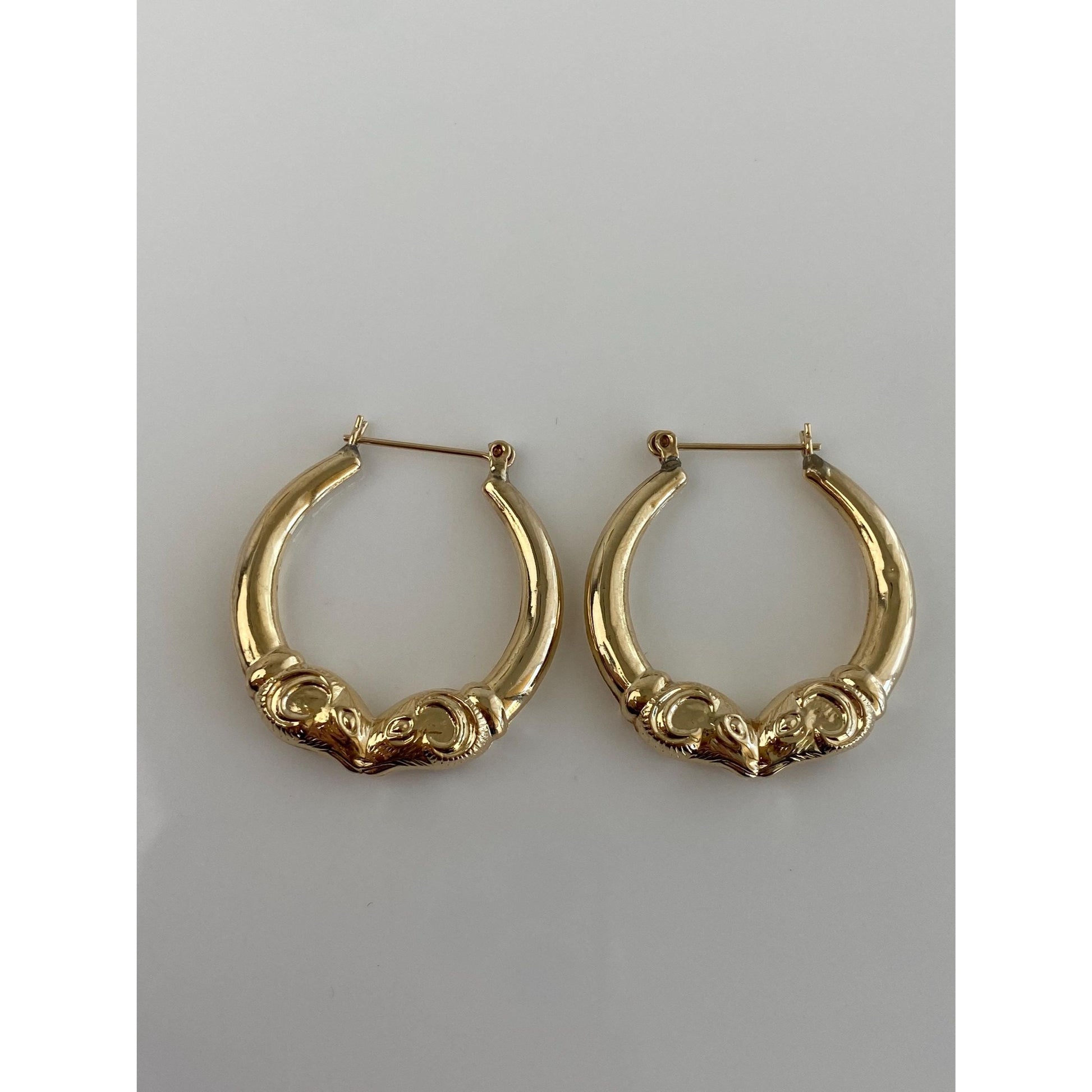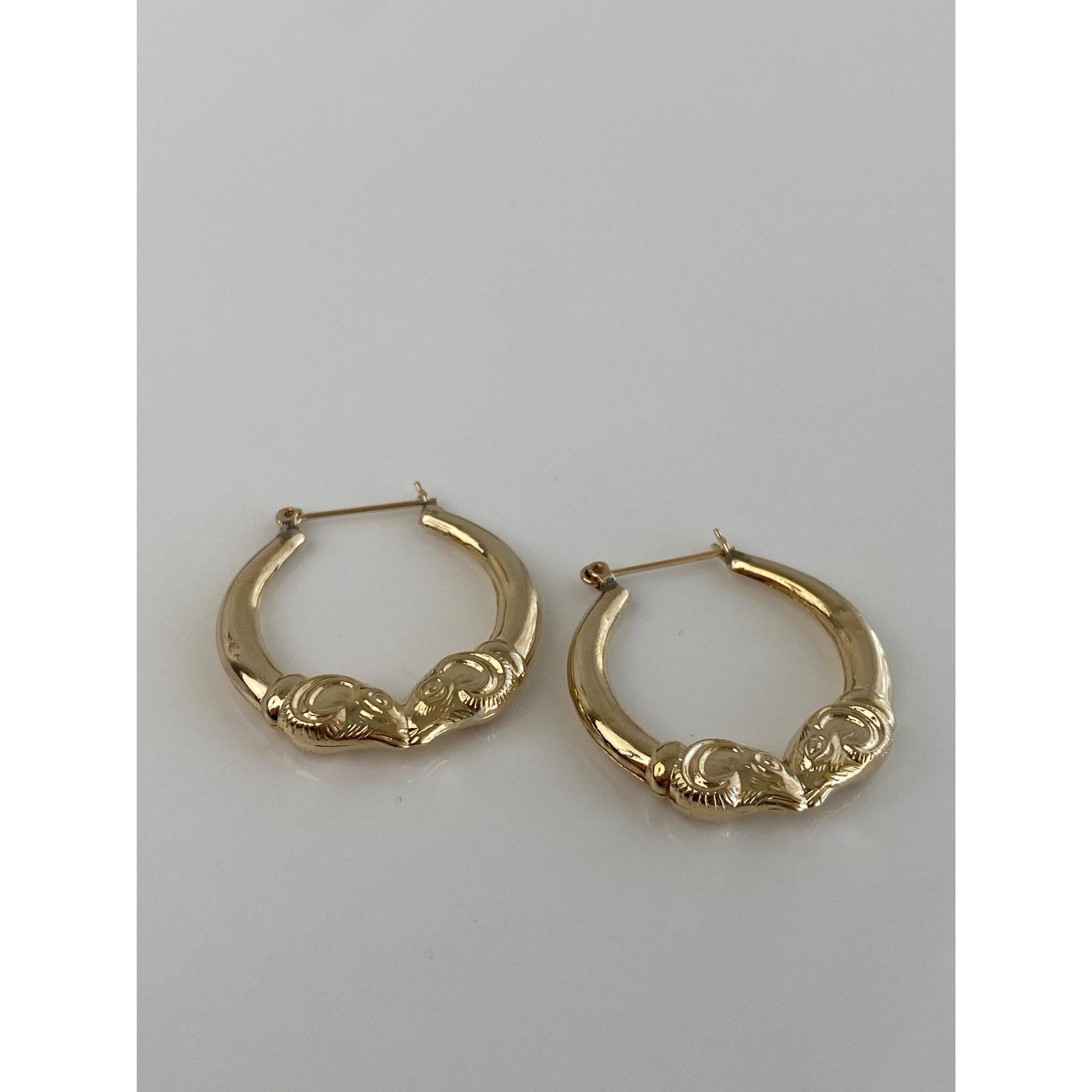 Vintage 14k Yellow Gold Ram Head Hoop Earrings