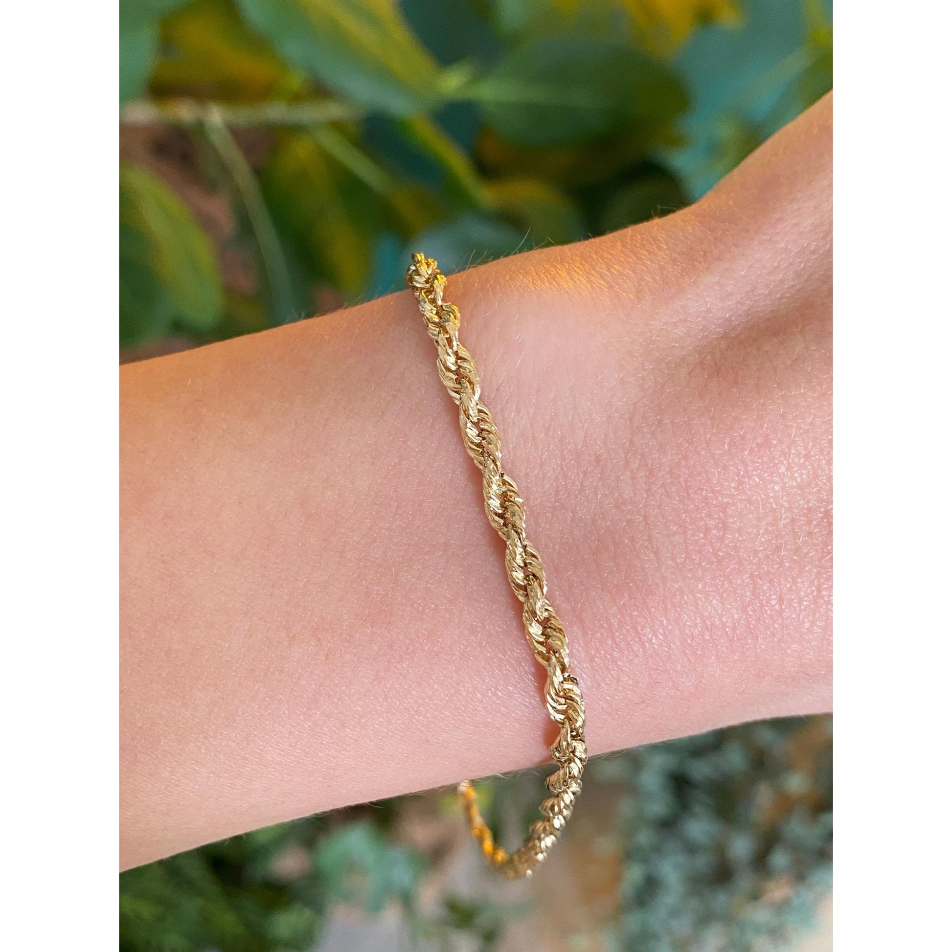 Vintage 14k Yellow Gold Rope Chain Bracelet Anklet - 8.75 inches
