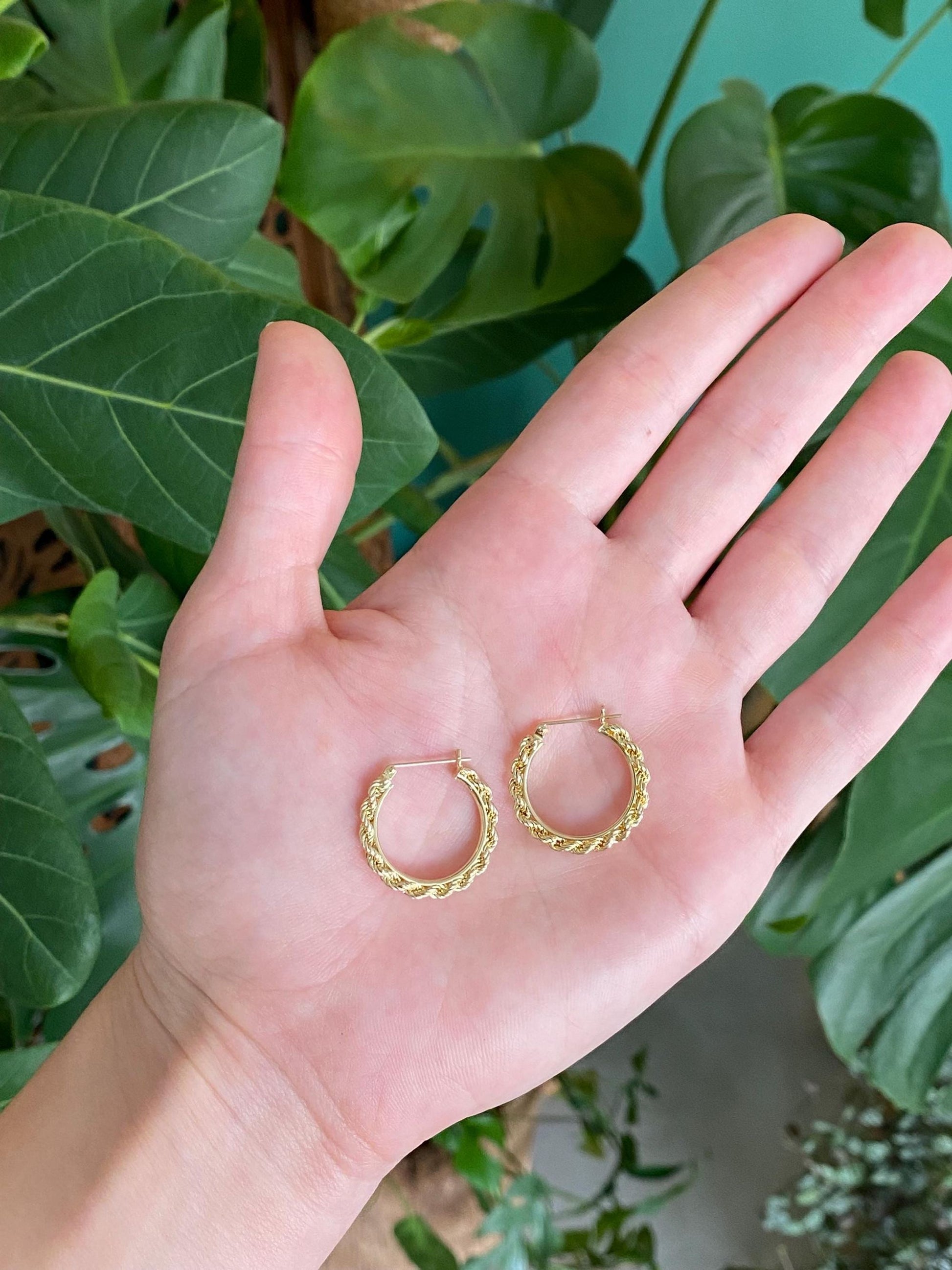 Vintage 14k Yellow Gold Rope Twist Hoop Earrings
