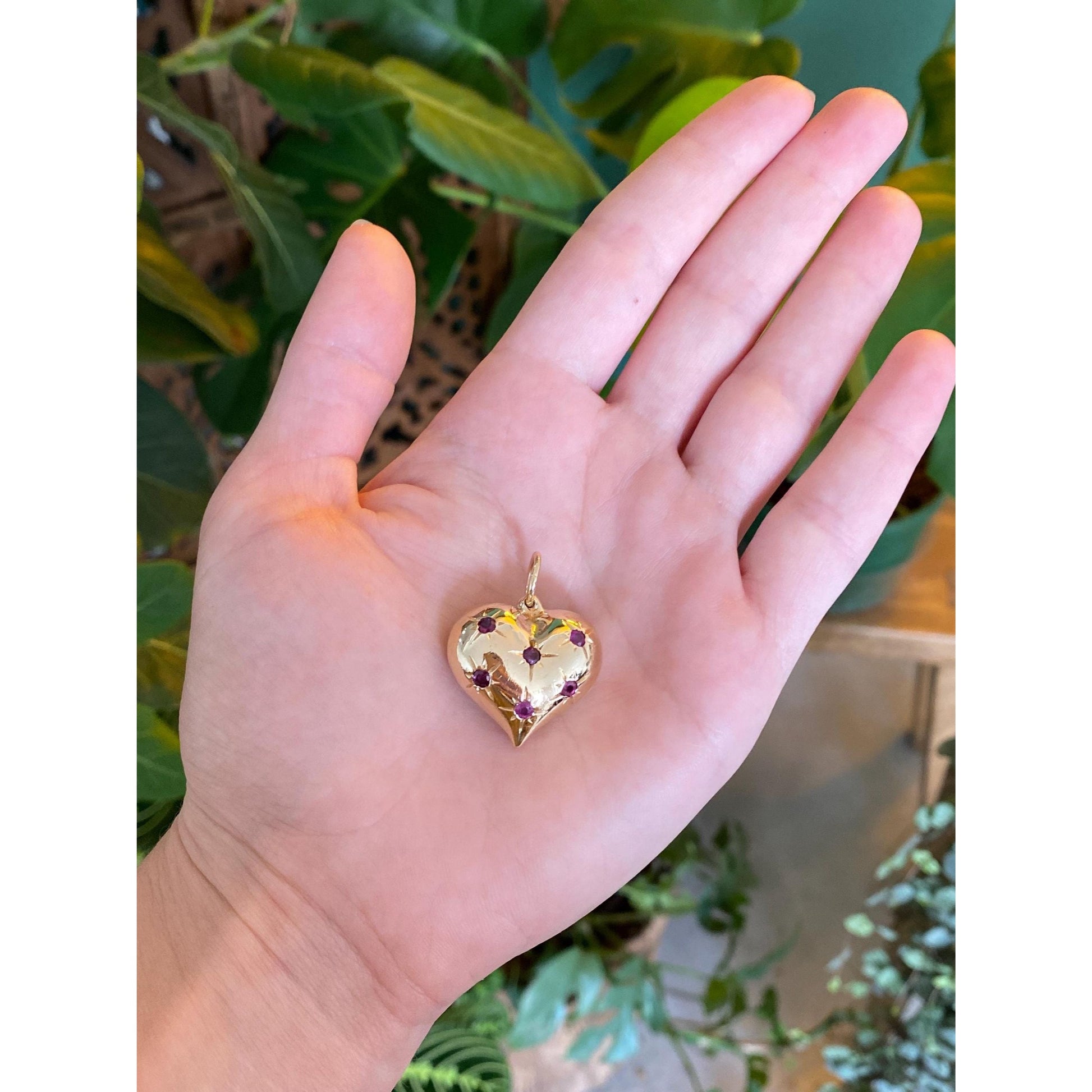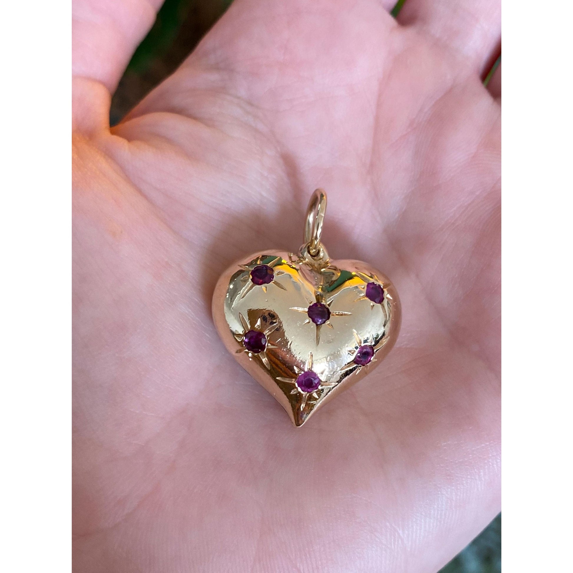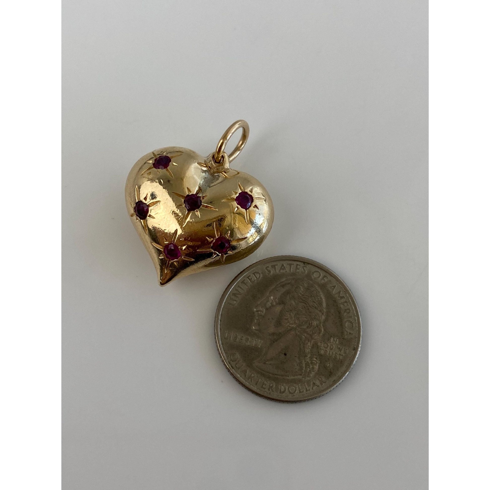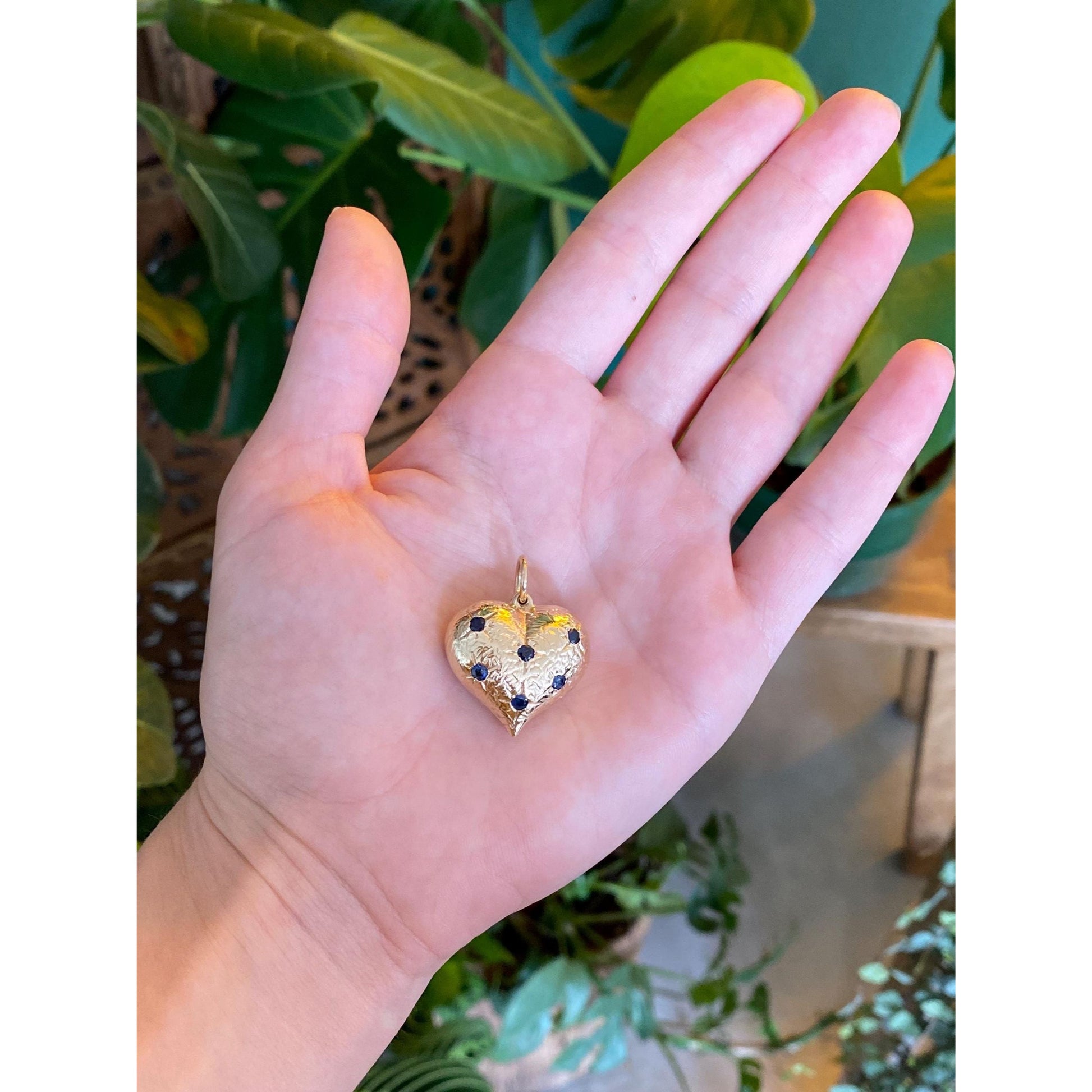 Vintage 14k Yellow Gold Ruby Blue Sapphire Large Puffy Heart Charm