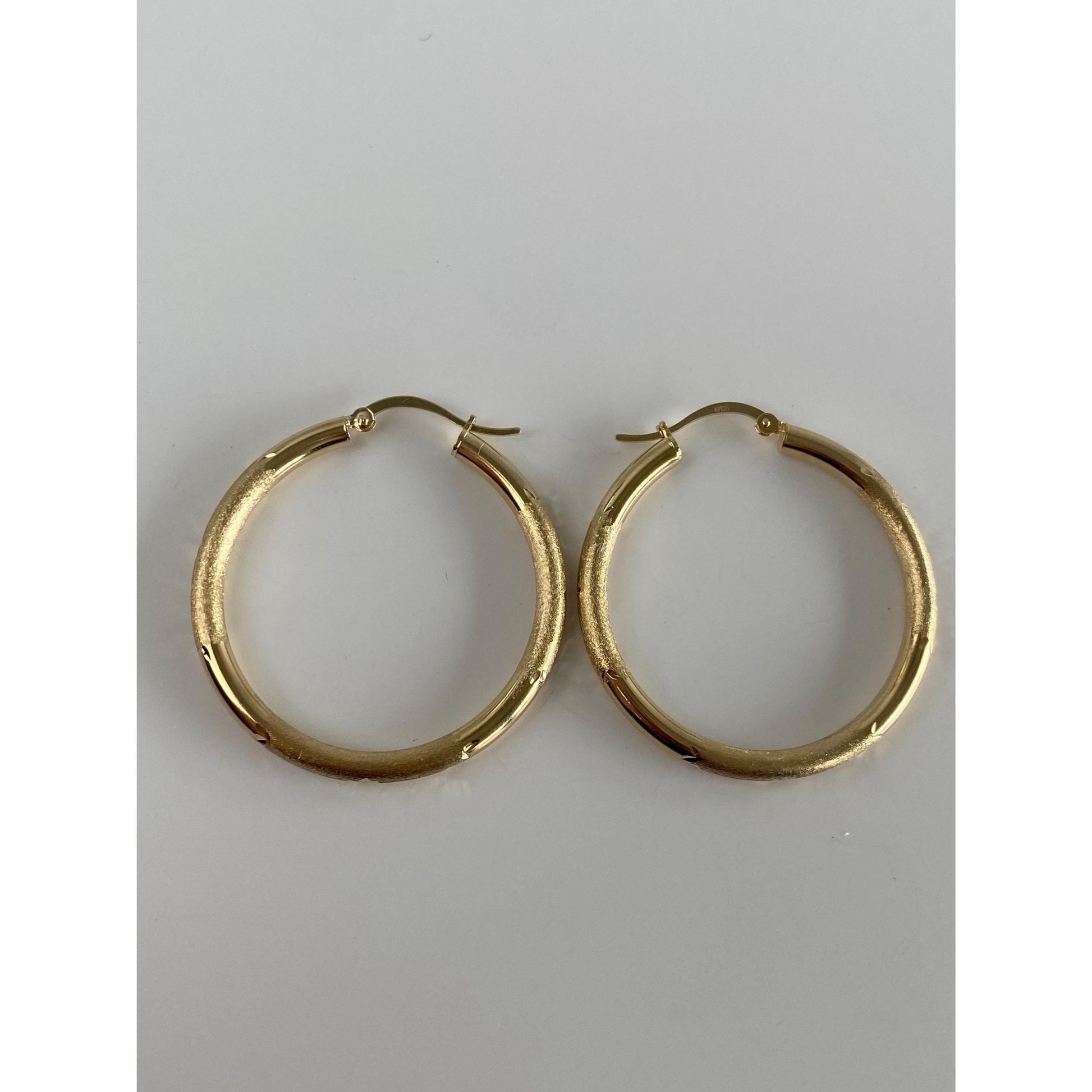 Vintage 14k Yellow Gold Satin Diamond Cut Star Pattern Hoop Earrings