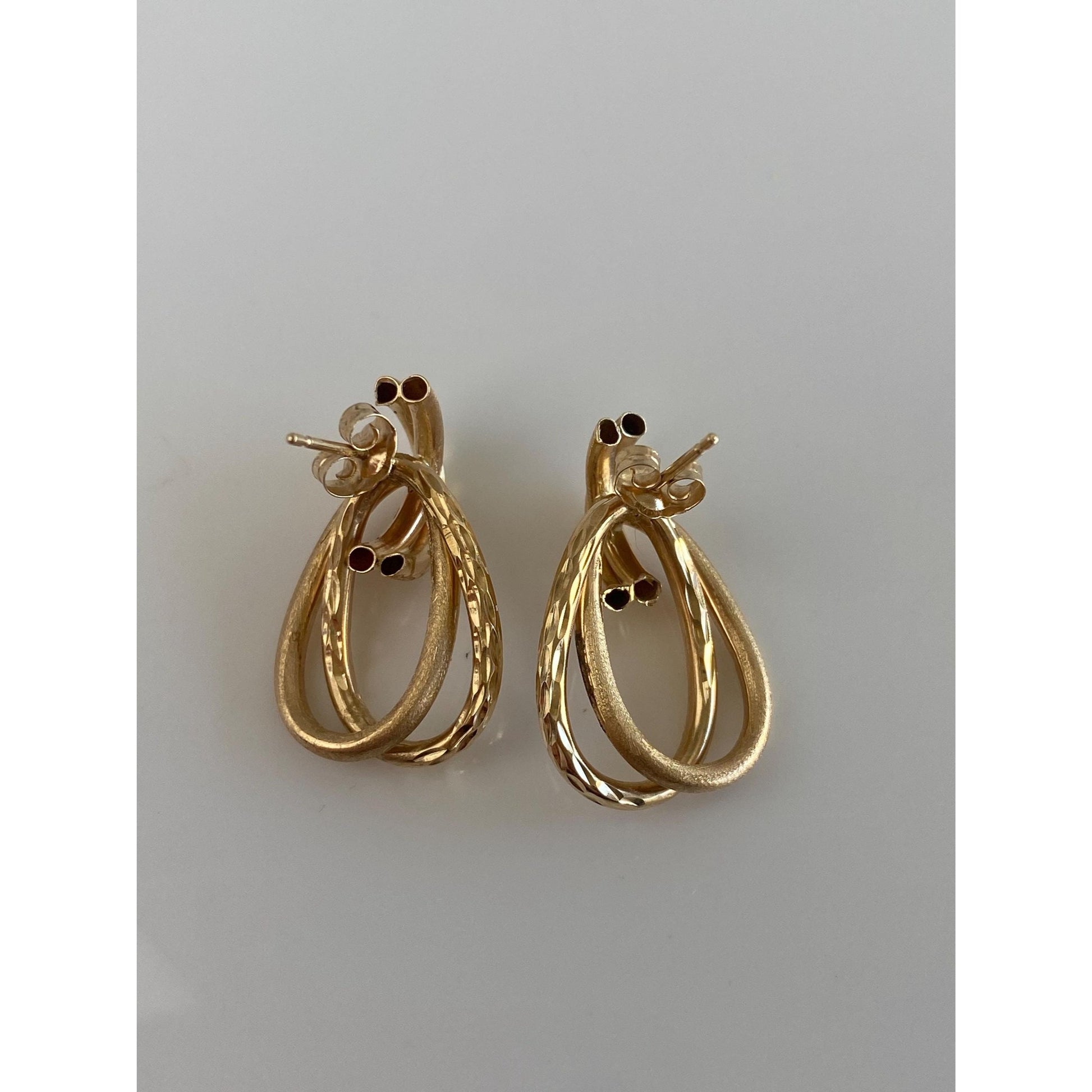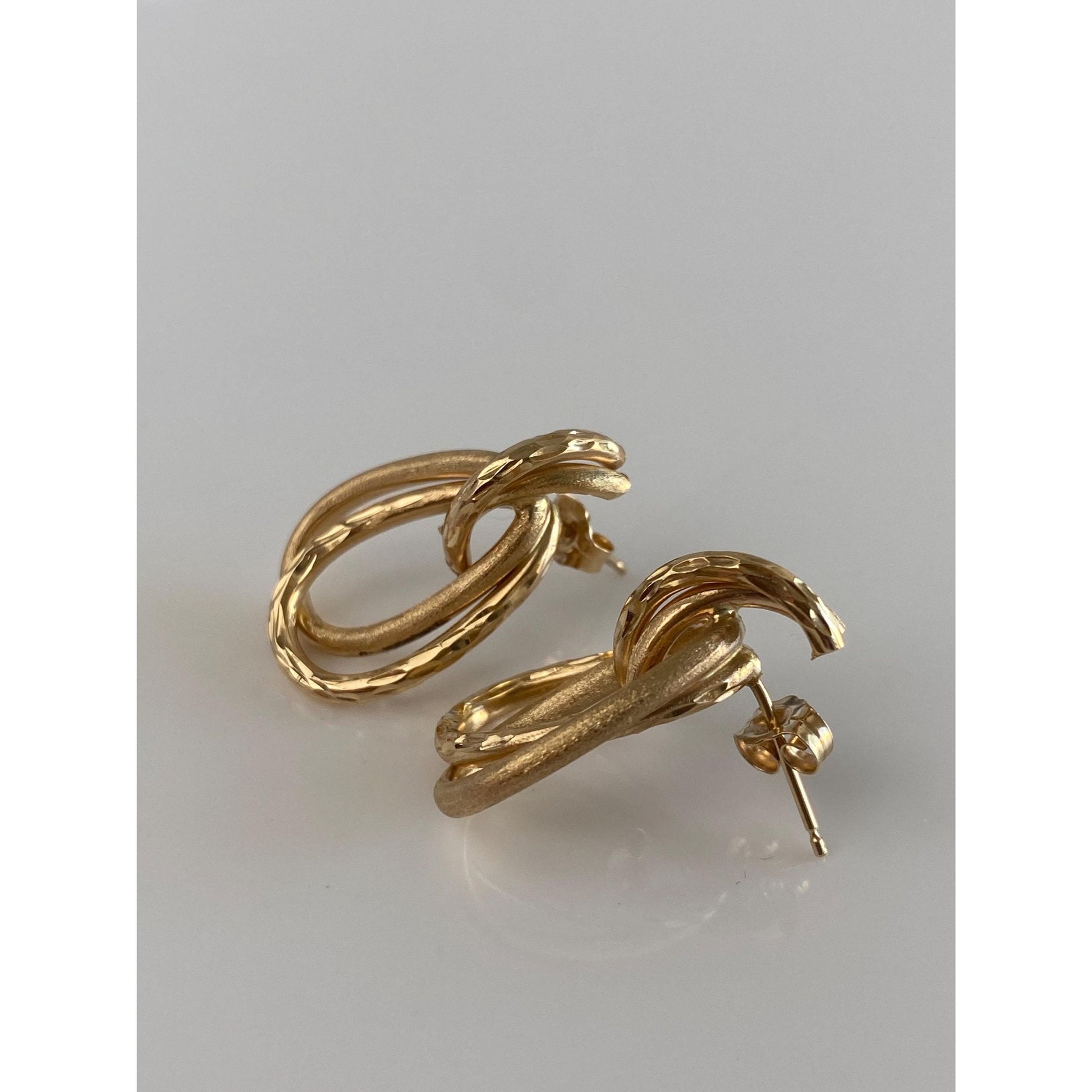 Vintage 14k Yellow Gold Satin & Textured Layered Stud Earrings