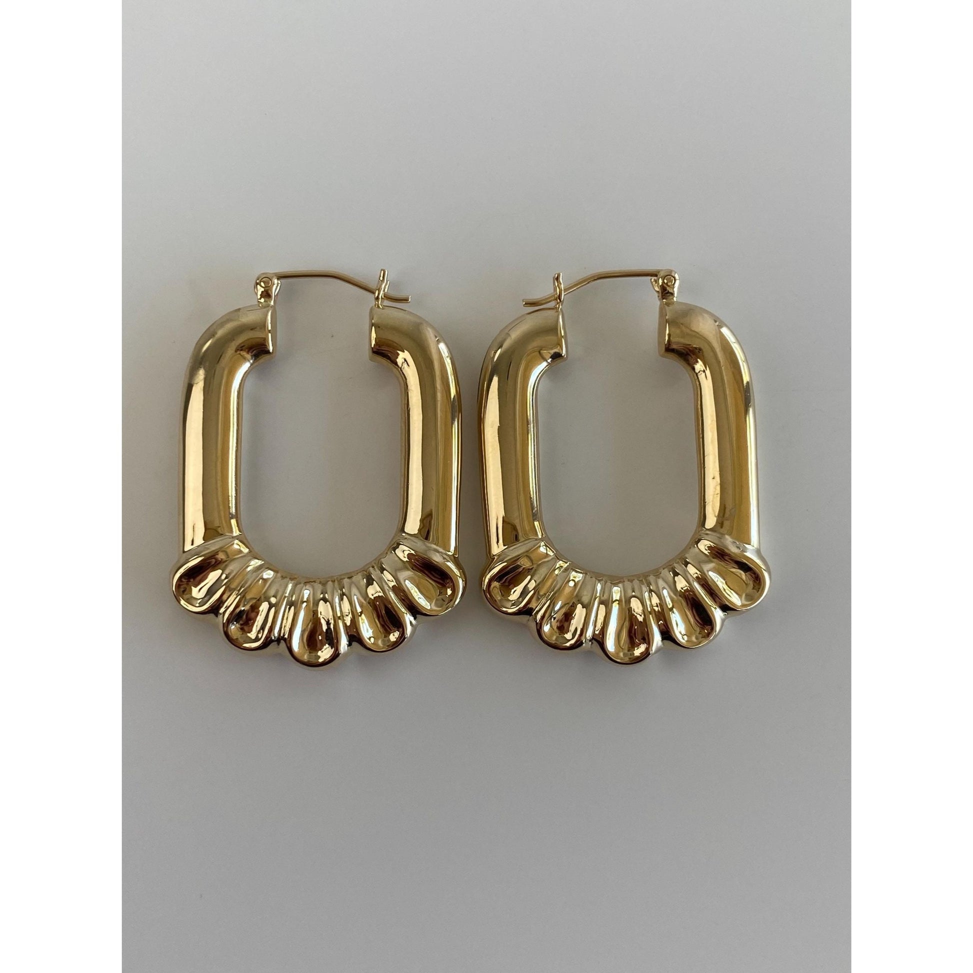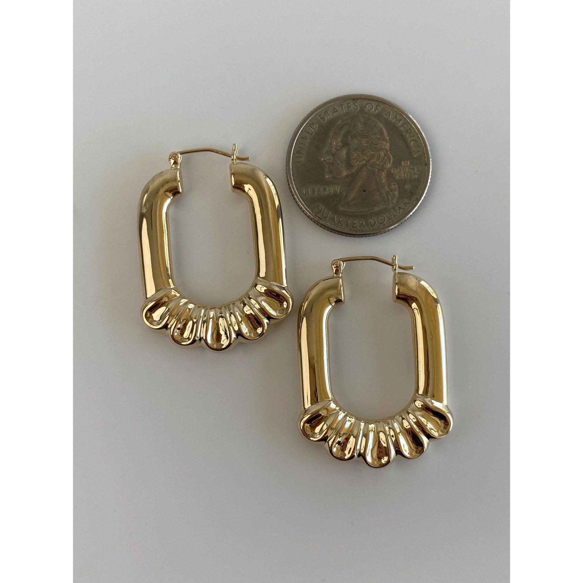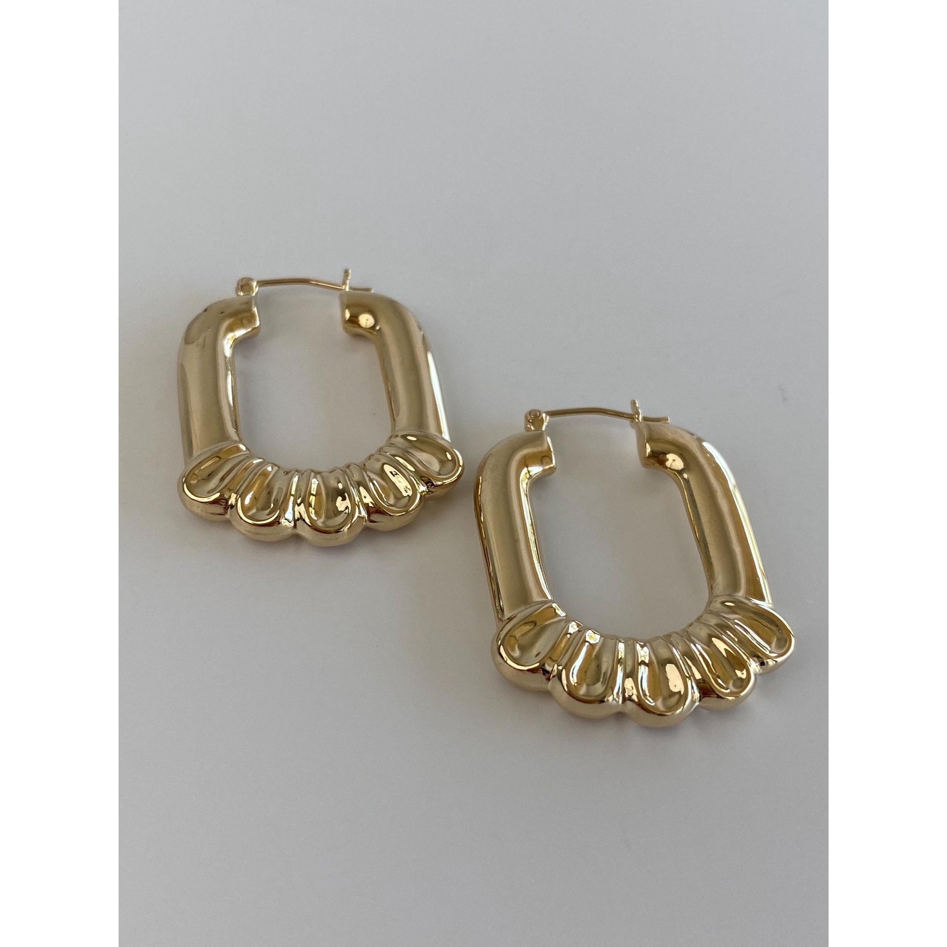 Vintage 14k Yellow Gold Scalloped Border Hoop Earrings