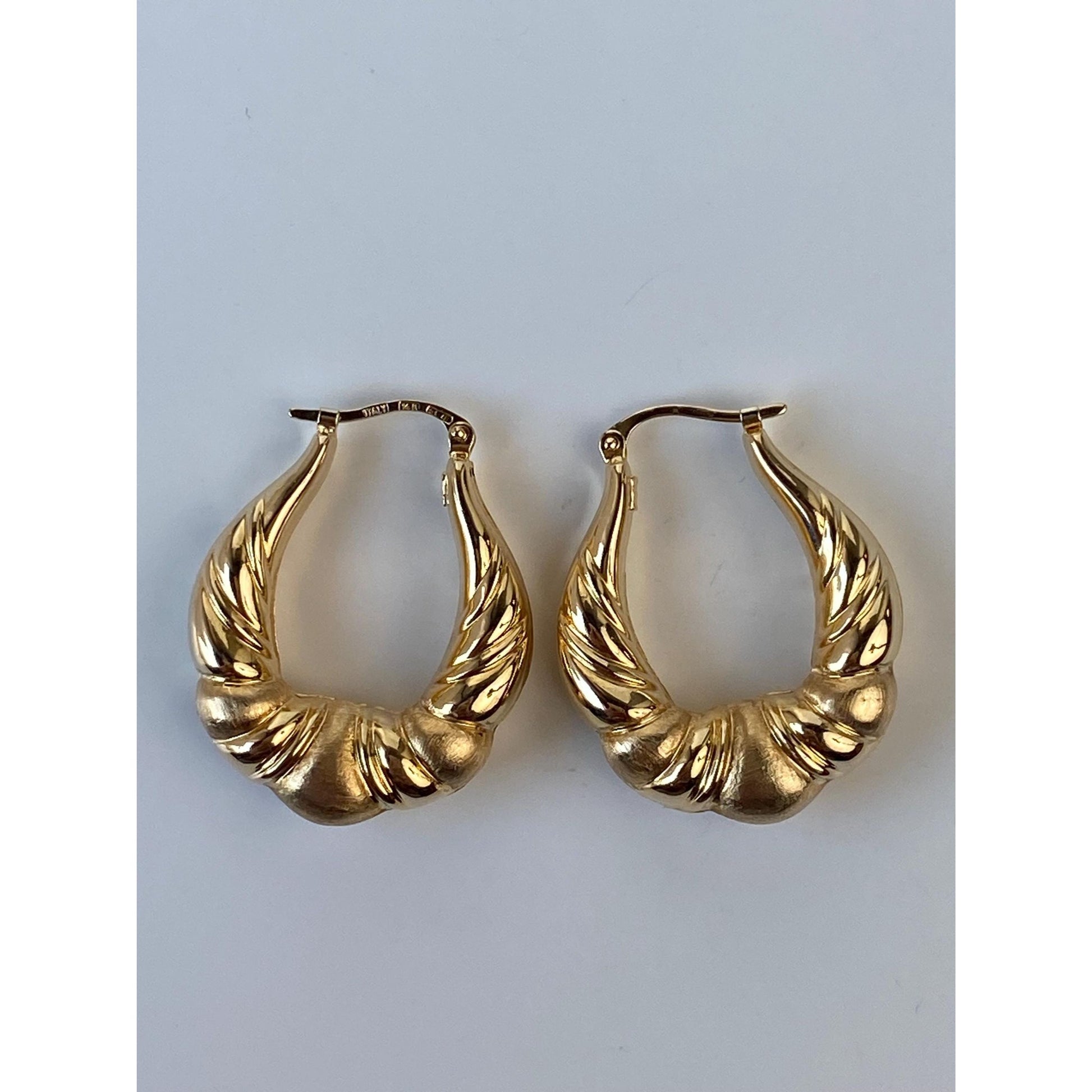 Vintage 14k Yellow Gold Scalloped Hoop Earrings