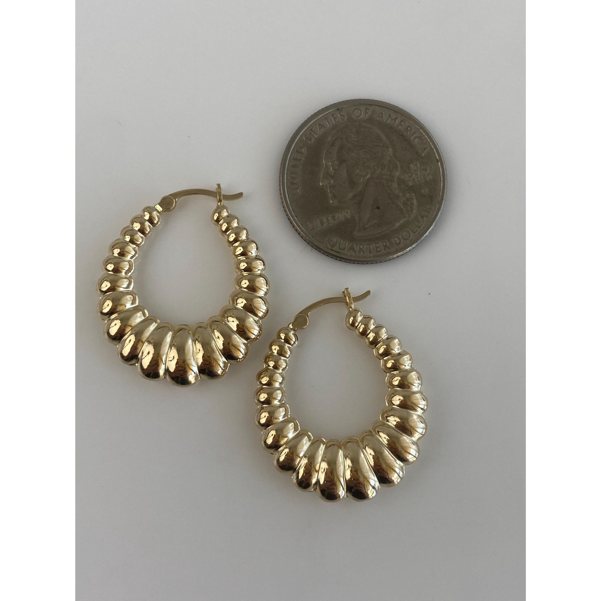 Vintage 14k Yellow Gold Scalloped Hoop Earrings