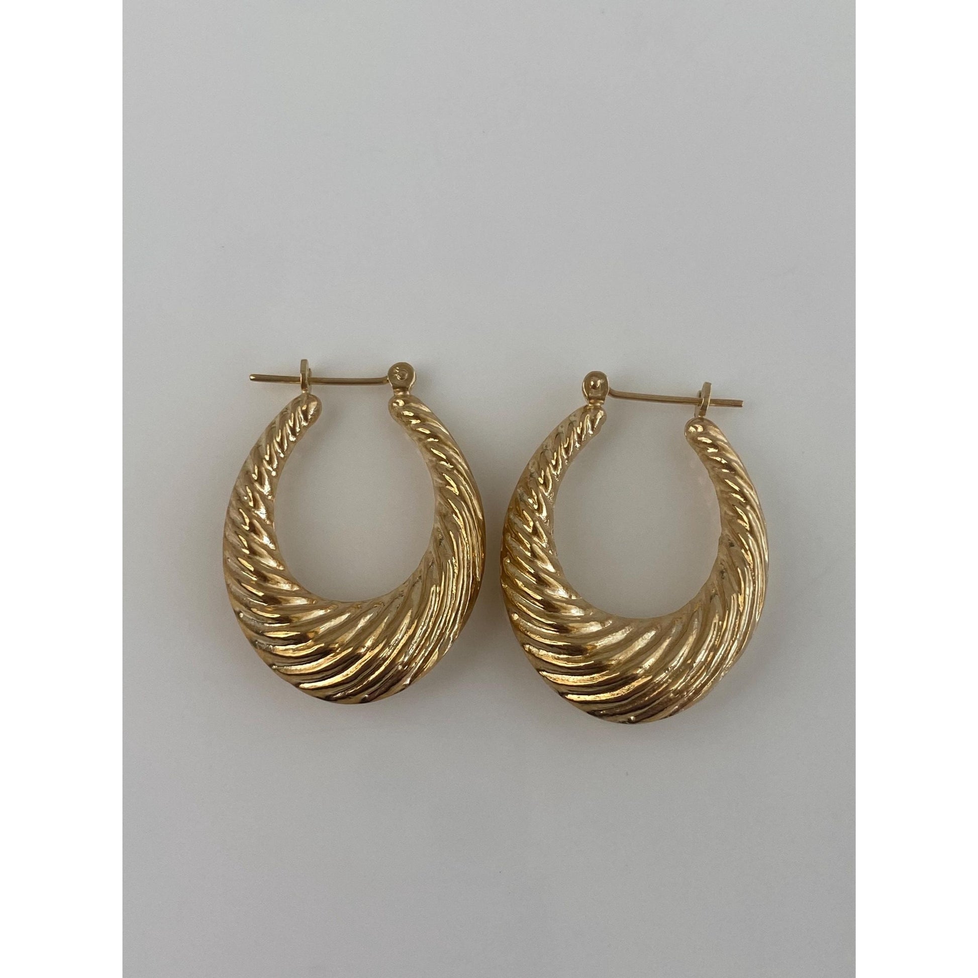 Vintage 14k Yellow Gold Scalloped Hoop Earrings