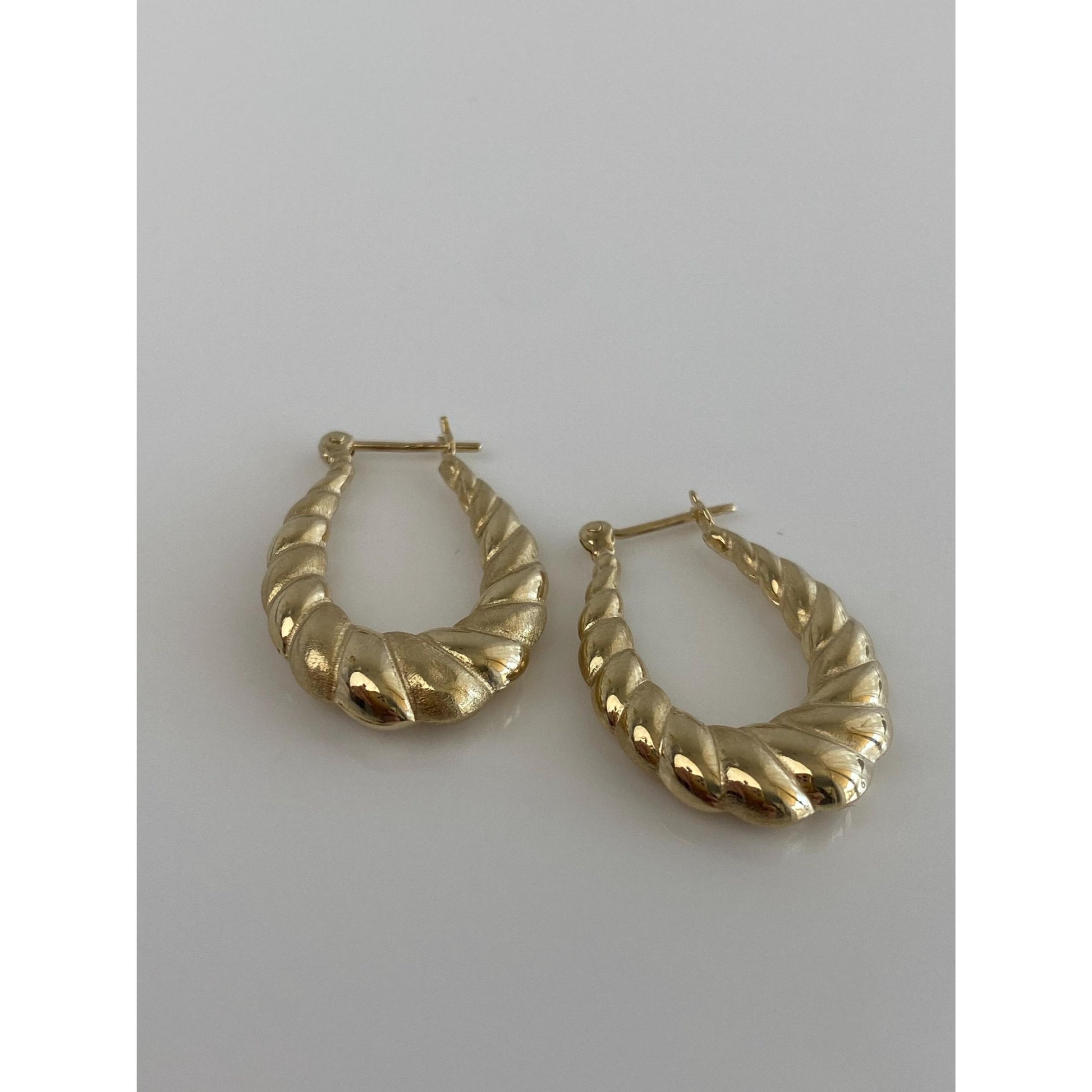 Vintage 14k Yellow Gold Scalloped Oval Hoop Earrings