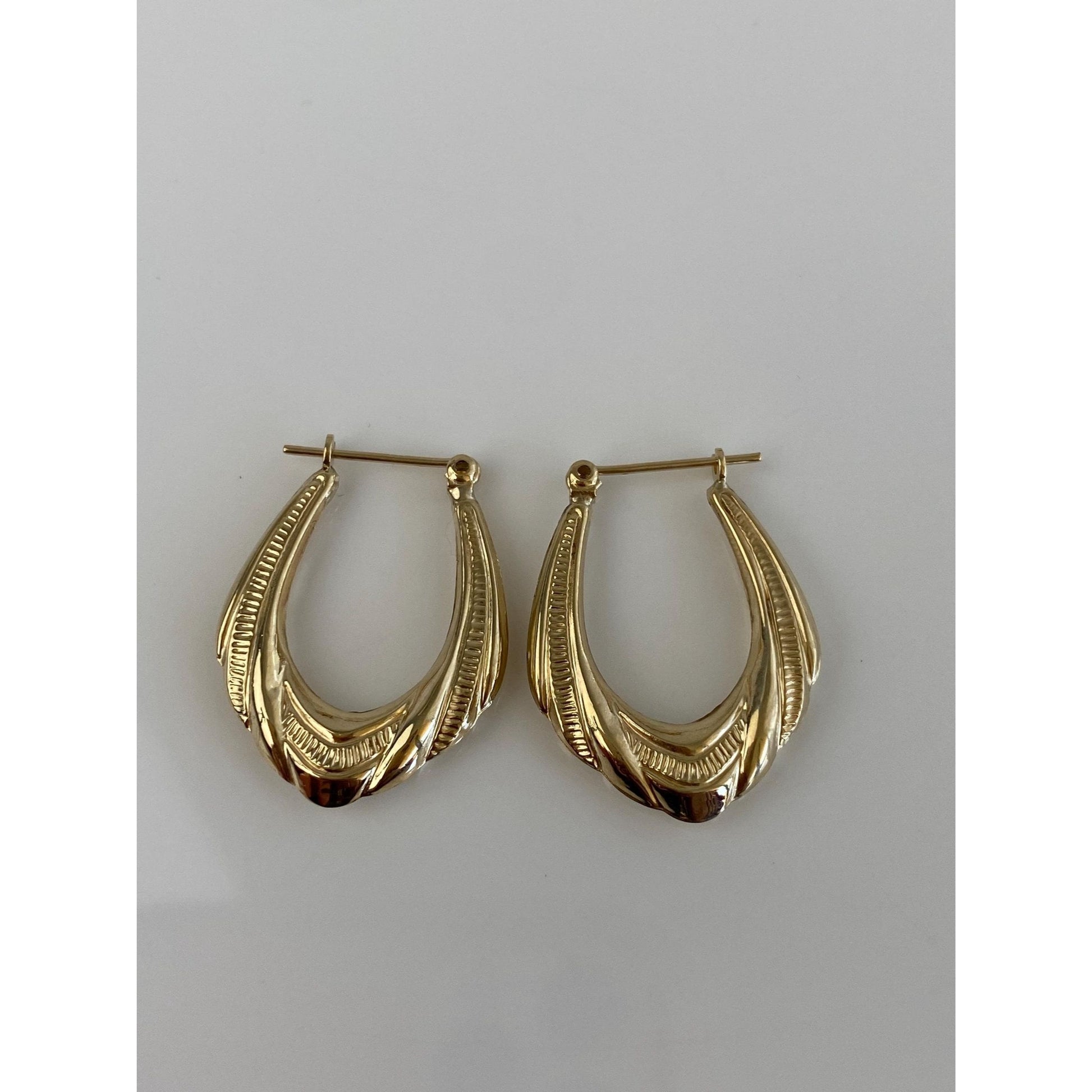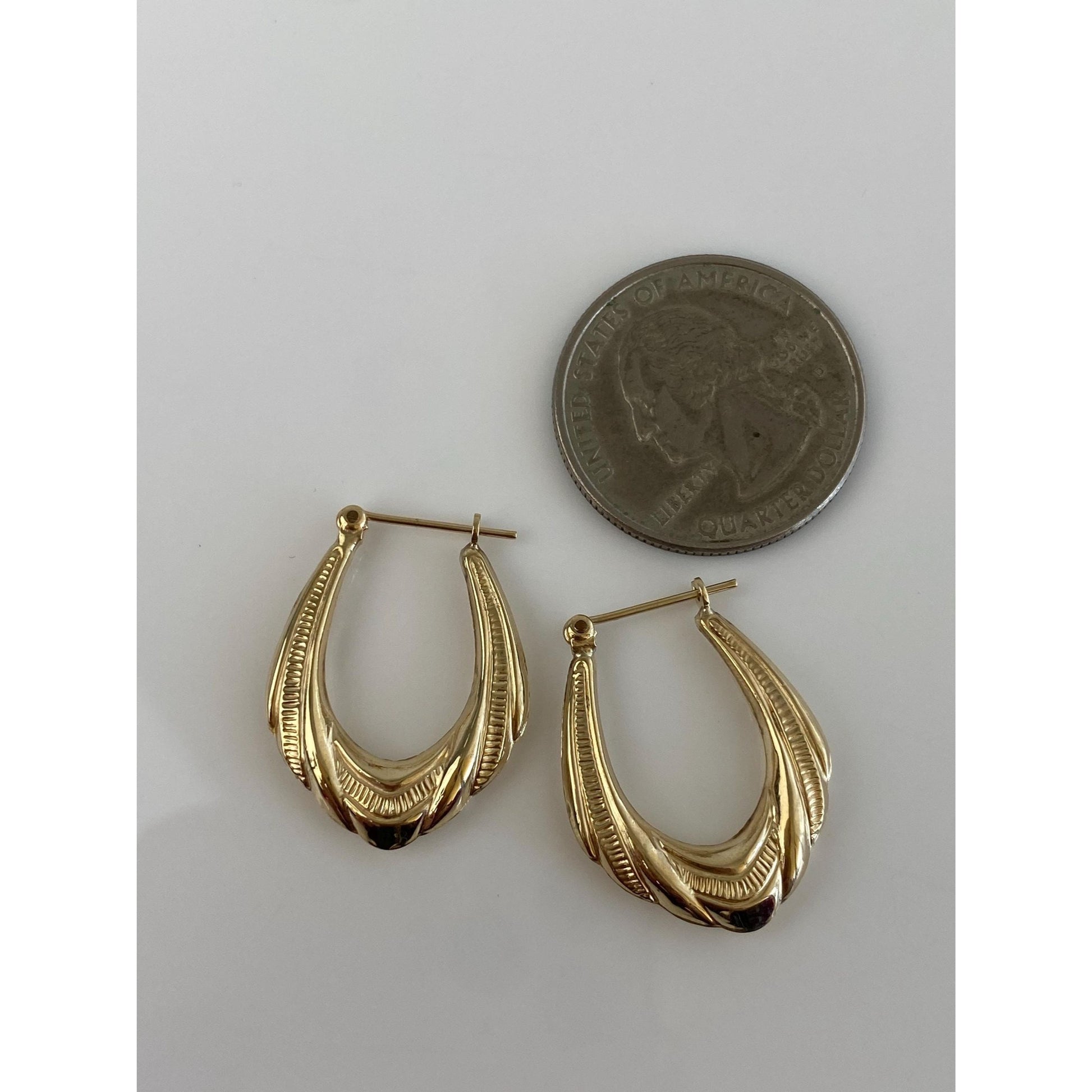 Vintage 14k Yellow Gold Scalloped Pattern Hoop Earrings