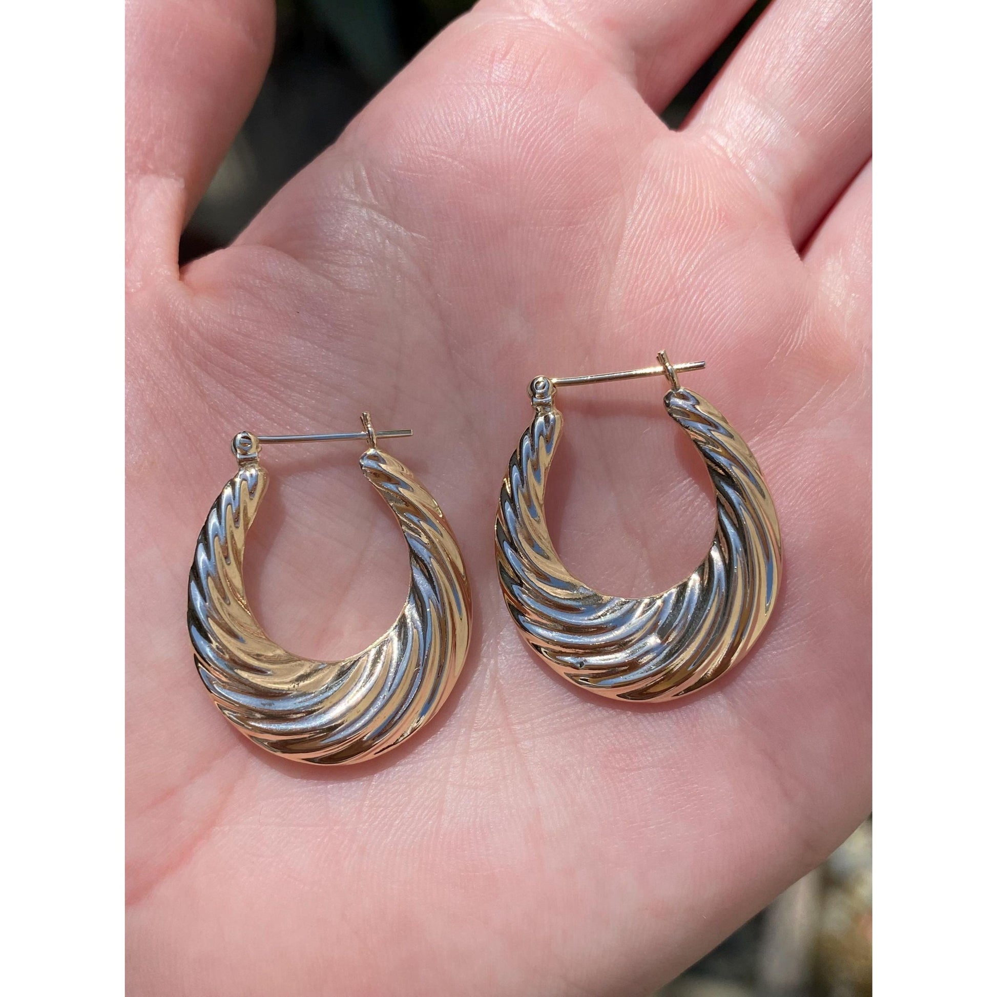 Vintage 14k Yellow Gold Scalloped Twist Hoop Earrings