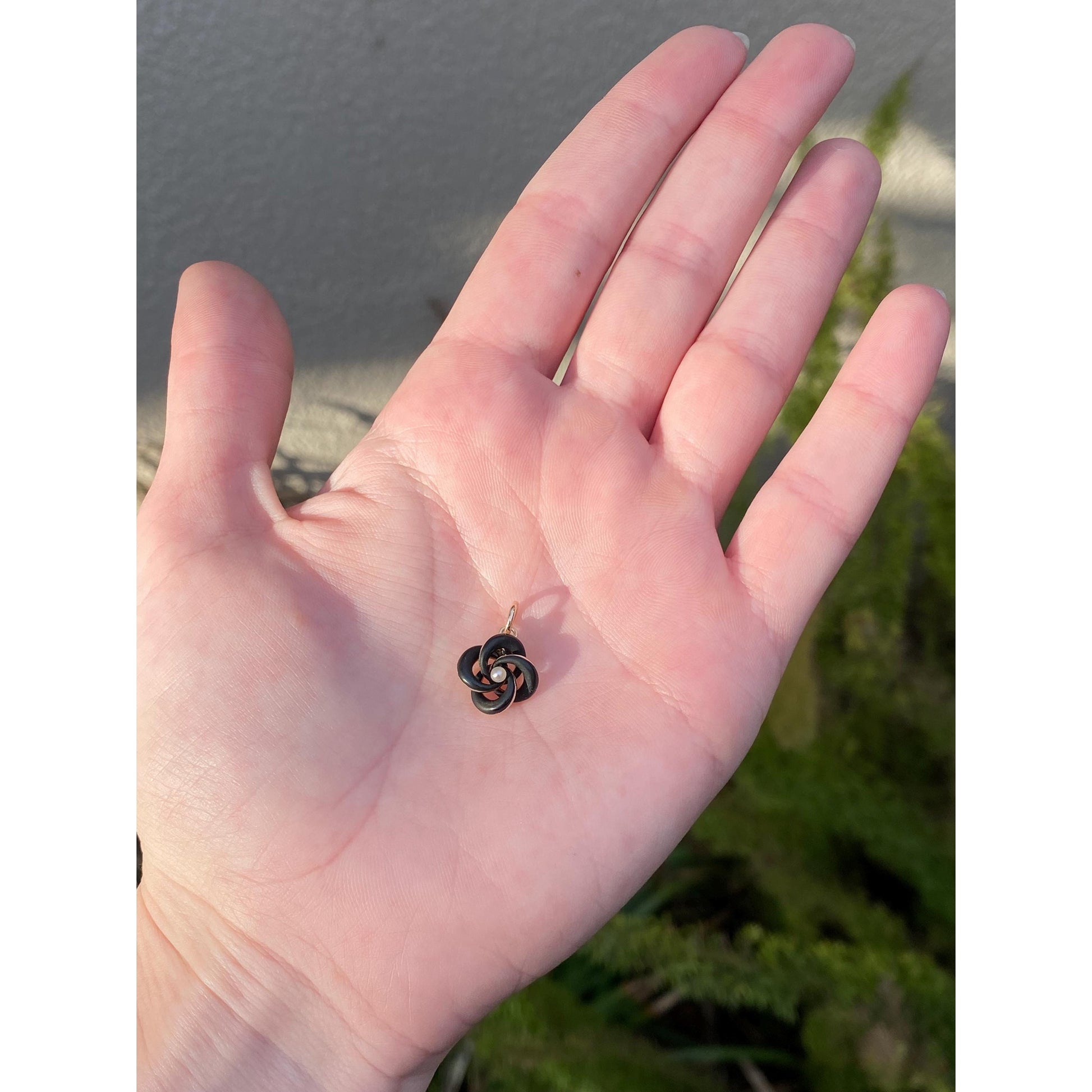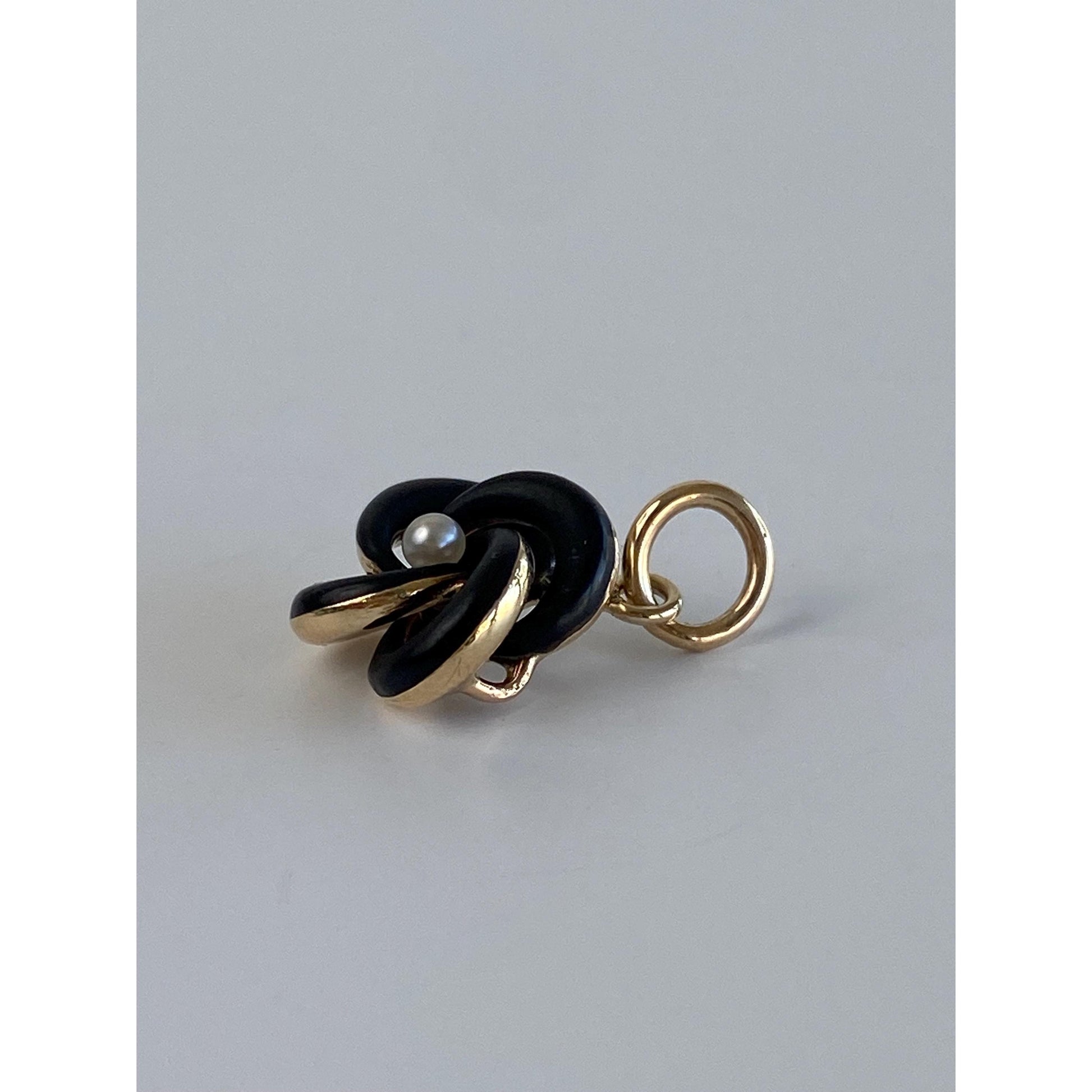 Vintage 14k Yellow Gold Seed Pearl Black Enamel Knot Stick Pin Conversion Charm