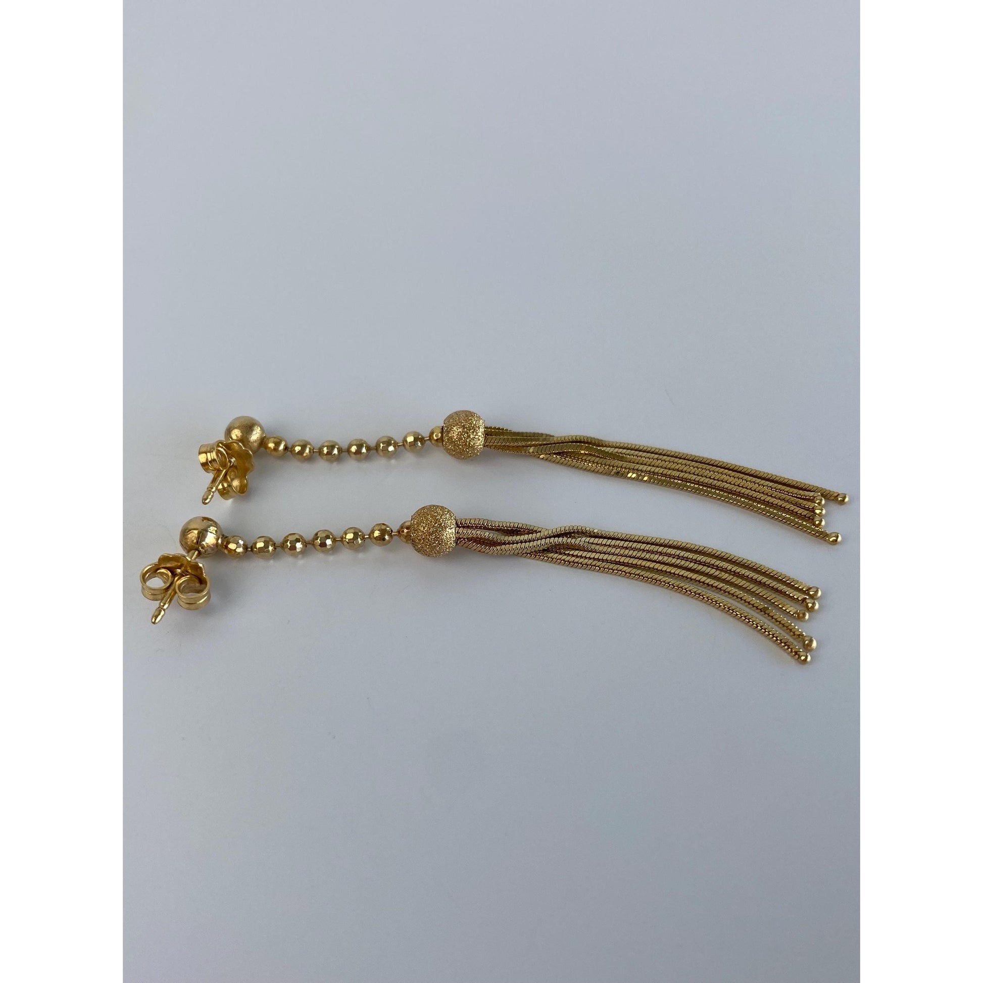 Vintage 14k Yellow Gold Textured Faceted Ball Chain Fringe Stud Earrings