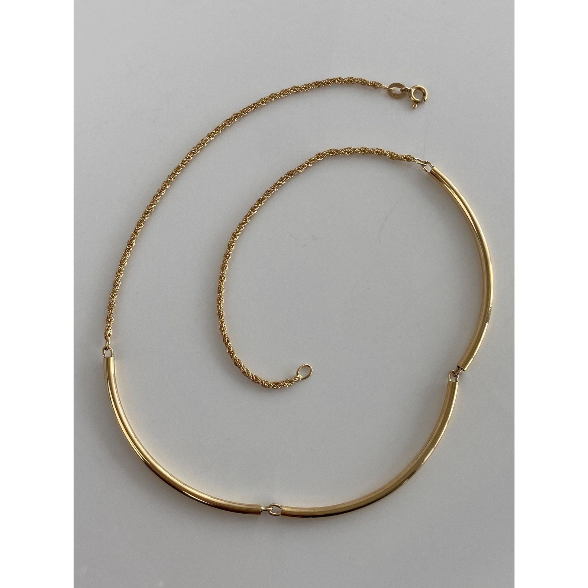 Vintage 14k Yellow Gold Tube Twist Style Chain Collar Necklace - 15.5 inches